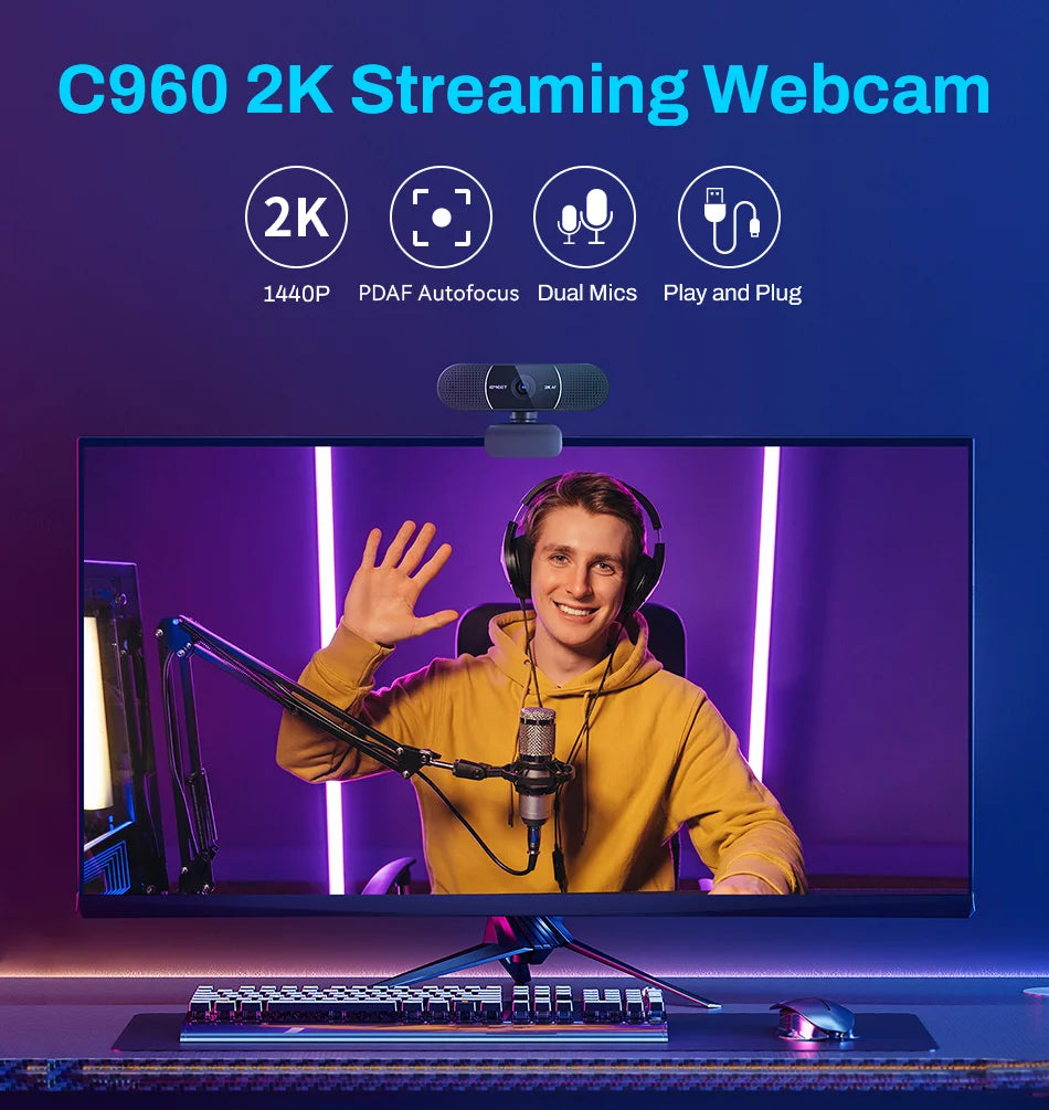 Elevate your video conferencing with the EMEET C960 2K Webcam.