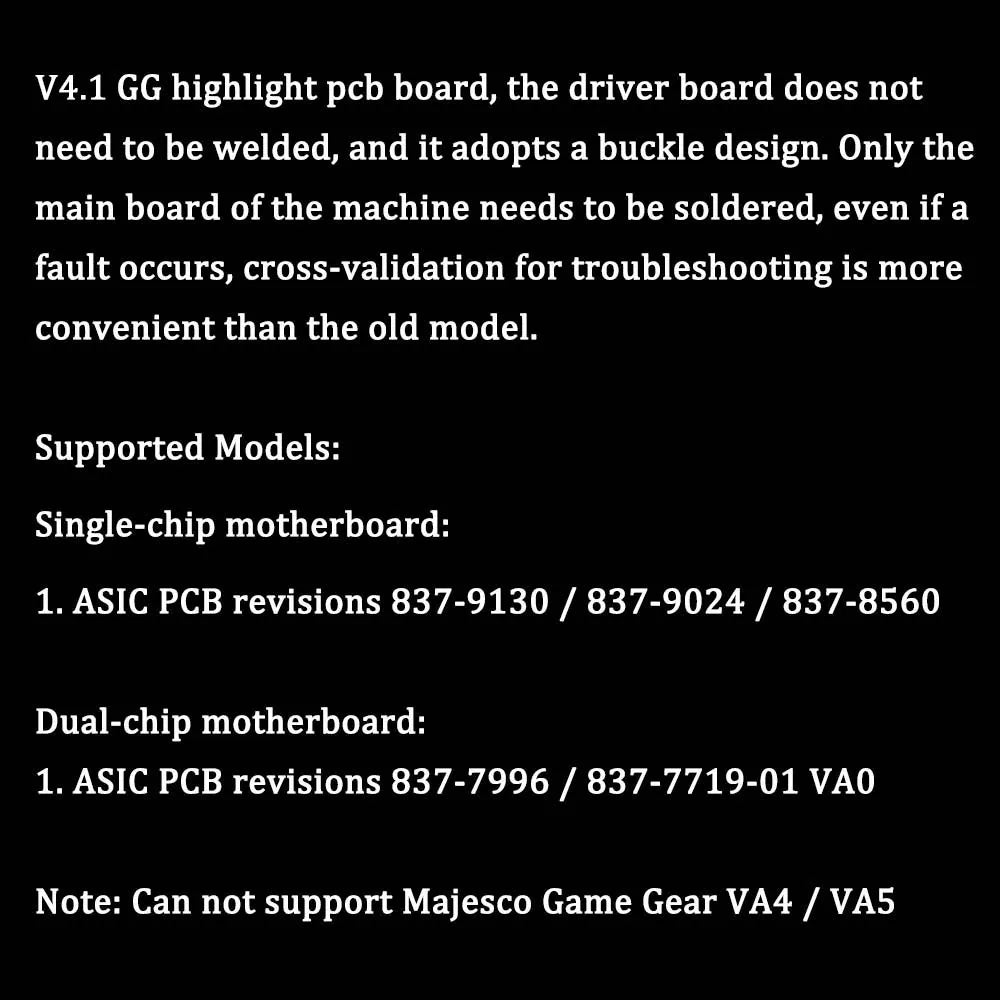 - Compatibility: Supports SEGA Game Gear single and dual chip motherboards.