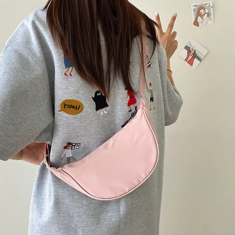 Elevate your style with this chic Nylon Crescent Crossbody Bag, designed for trendsetters seeking a unique accessory. Its distinctive dumpling shape and sleek, solid pattern make it a fashionable choice for any wardrobe. Crafted from durable nylon, this lightweight bag offers both practicality and style, perfect for those on the go.