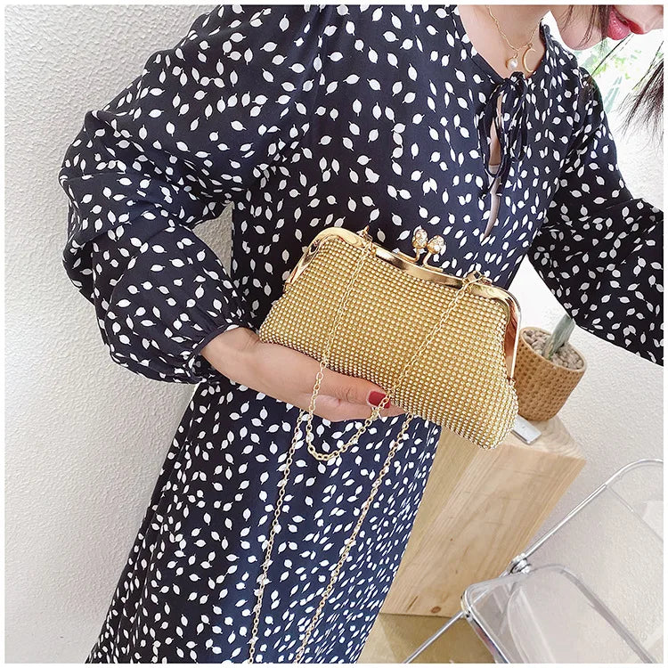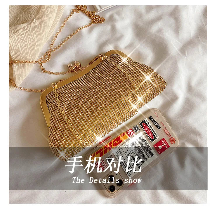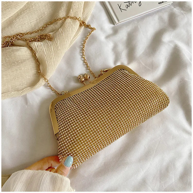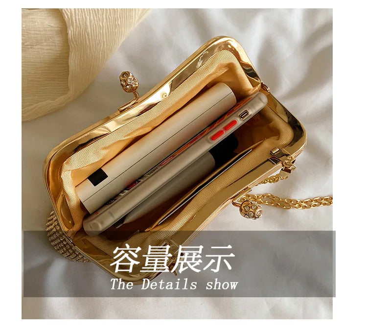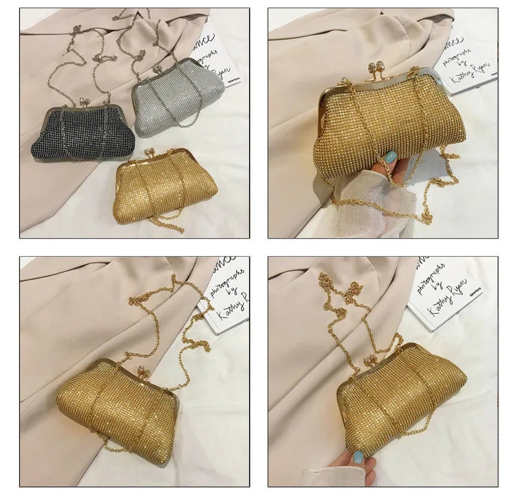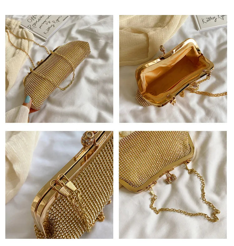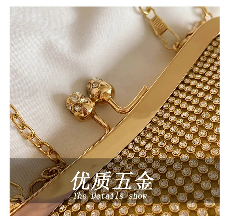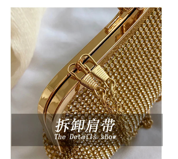 Gold Clutch Evening Bag Bridal Purse Wedding Handbag with Chain Shoulder Strap