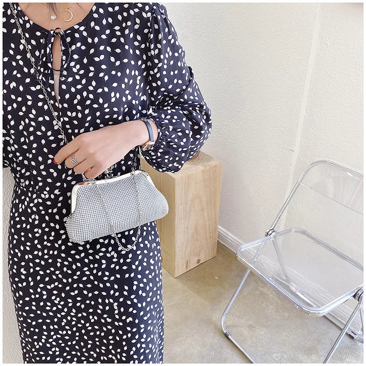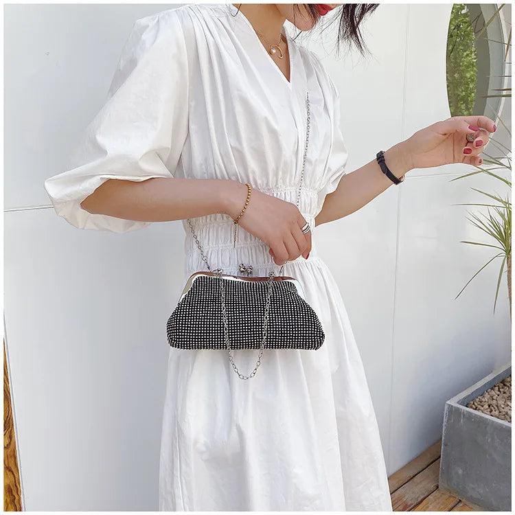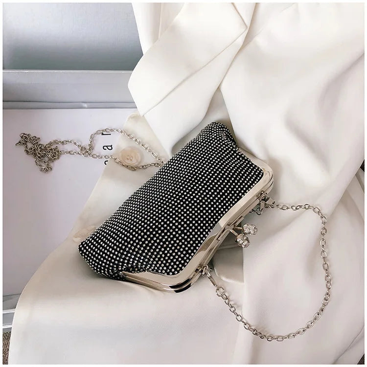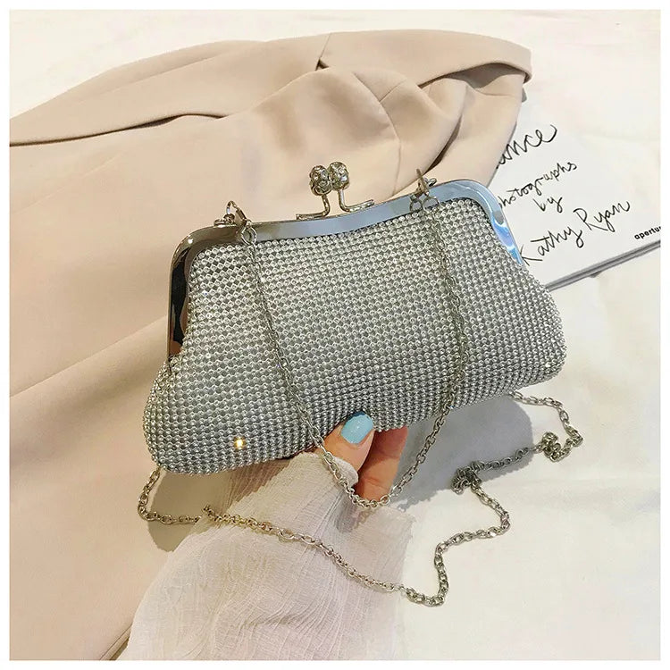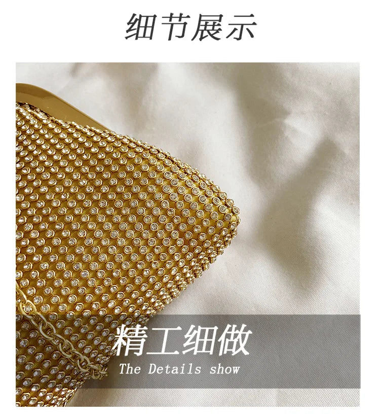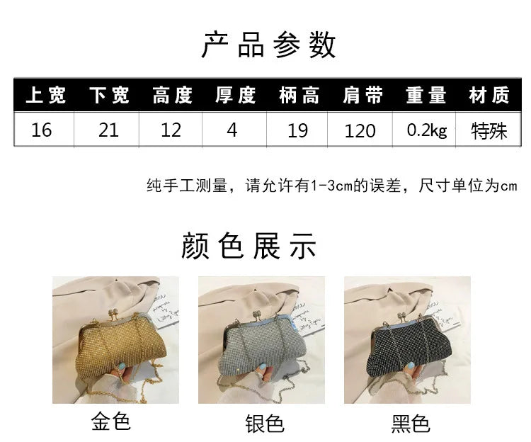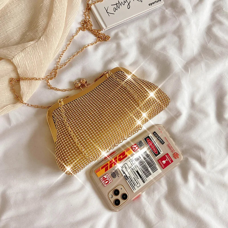 Gold Clutch Evening Bag Bridal Purse Wedding Handbag with Chain Shoulder Strap