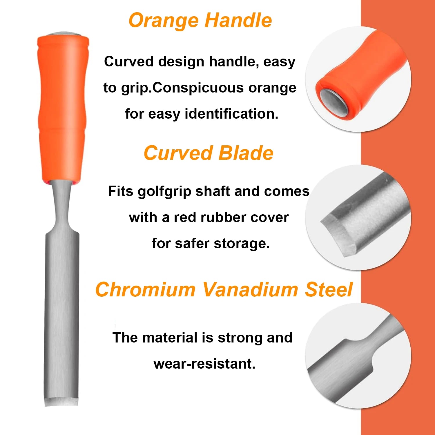Effortlessly remove golf grip tape with the highly efficient Golf Grip Tape Remover. Crafted with precision, this tool features a durable 45 steel curved blade and an ergonomic orange plastic handle for a comfortable grip. Perfect for golf enthusiasts, it ensures quick and clean tape removal with minimal effort.