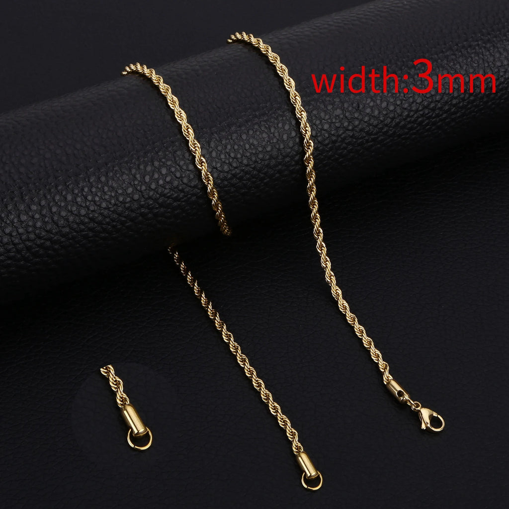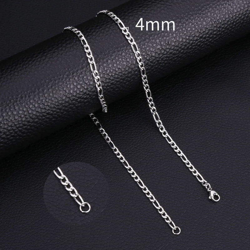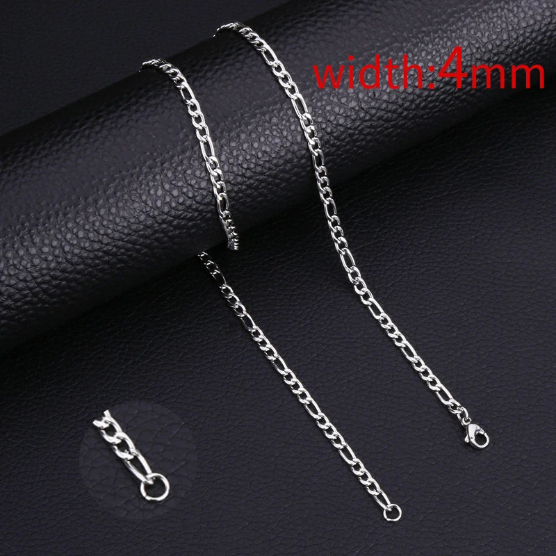 Classic Rope Chain Necklace for Men & Women, 2/3/4/5mm Stainless Steel Figaro Cuban Link Jewelry