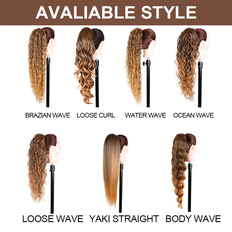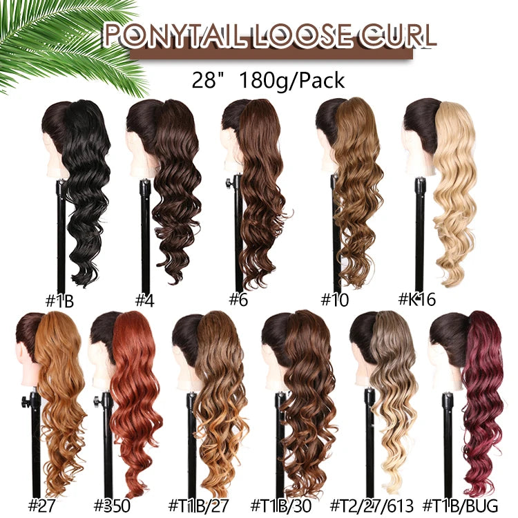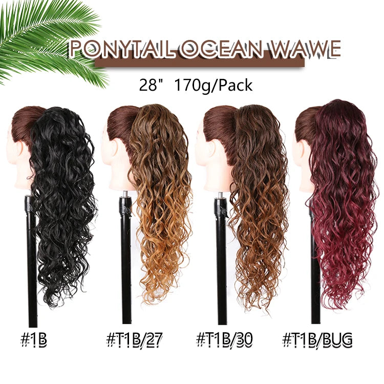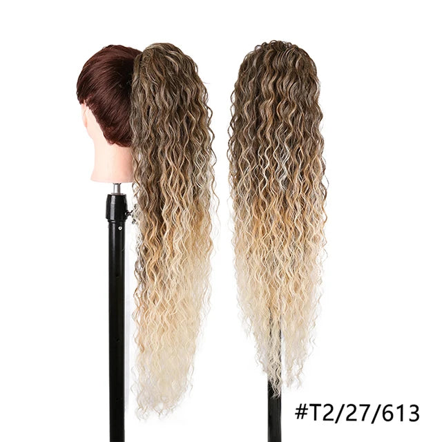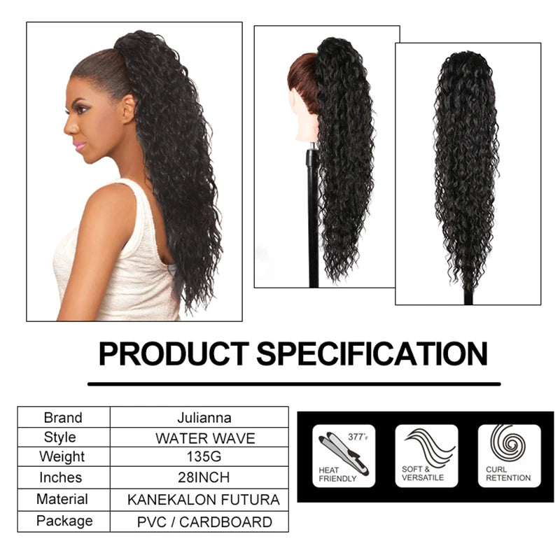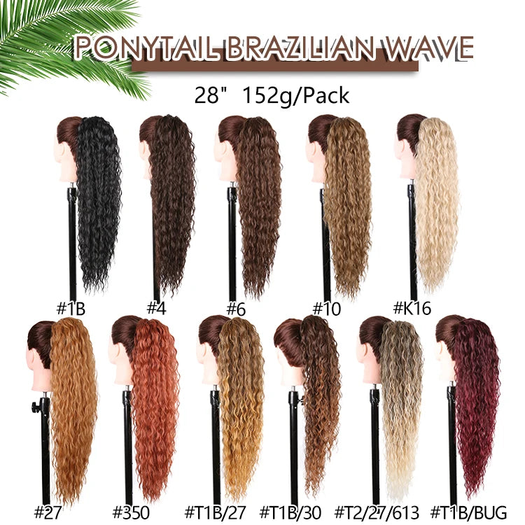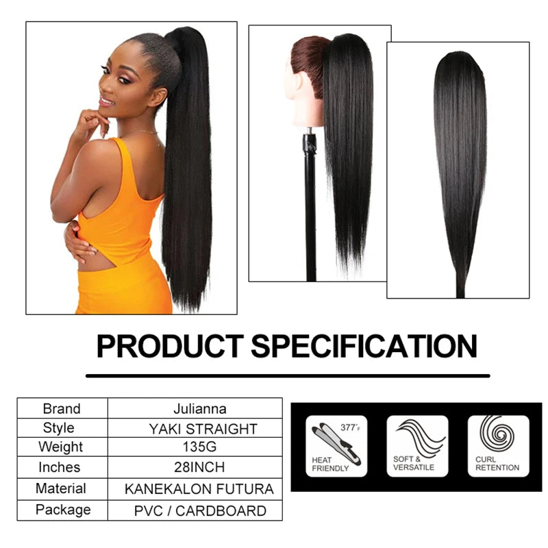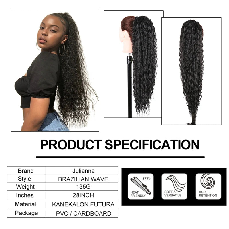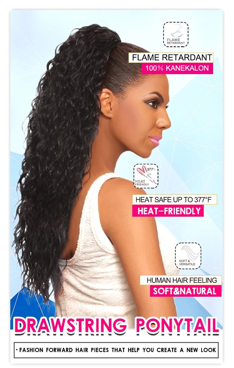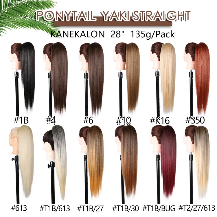28" Long Synthetic Hair Ponytail Extension Afro Kinky Curly Straight Natural Drawstring Kanekalon