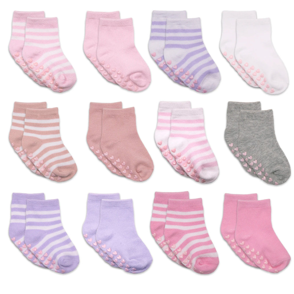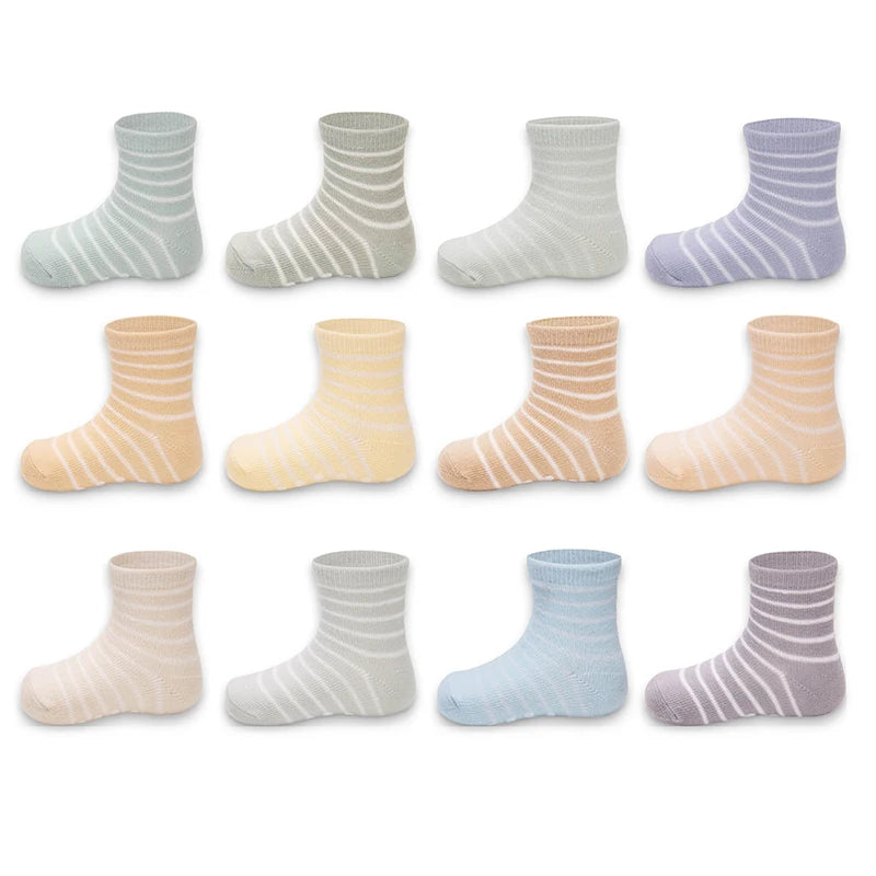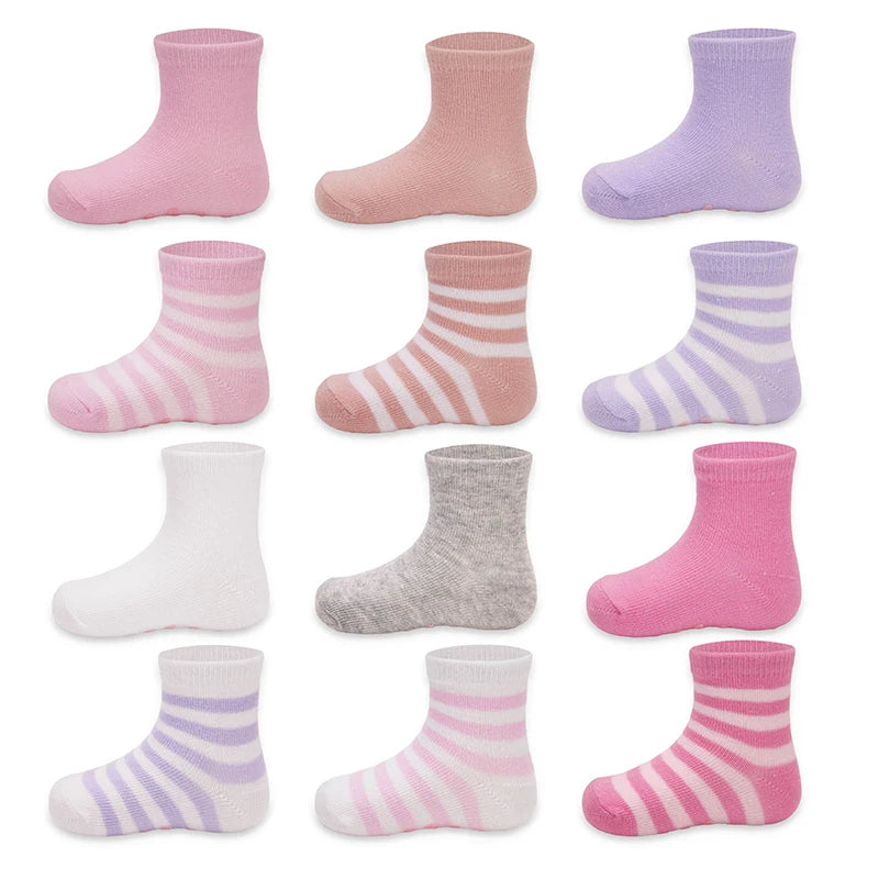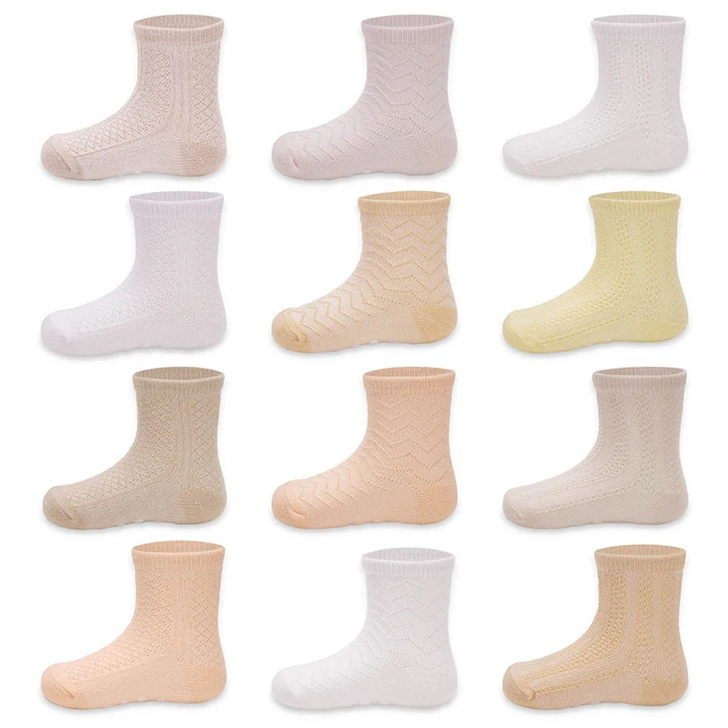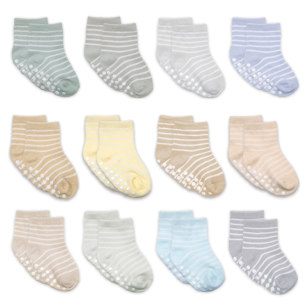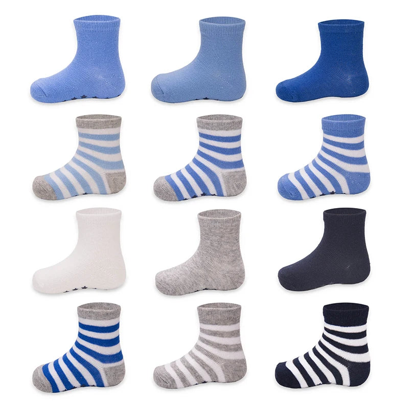 • 12 Pairs Baby Anti-Slip Socks for 0-4 Years | Cotton Non-Skid Newborn & Toddler Socks