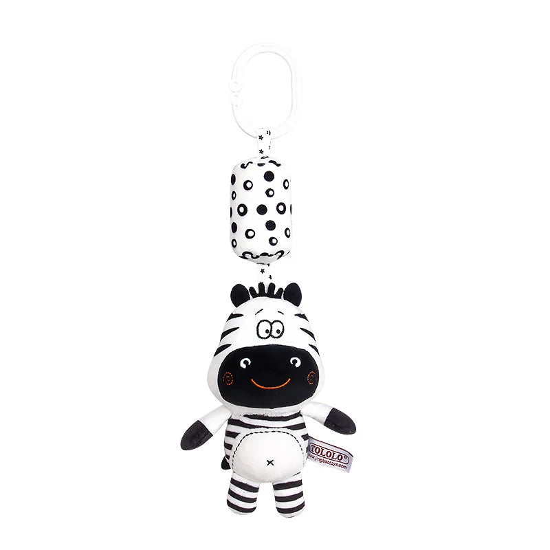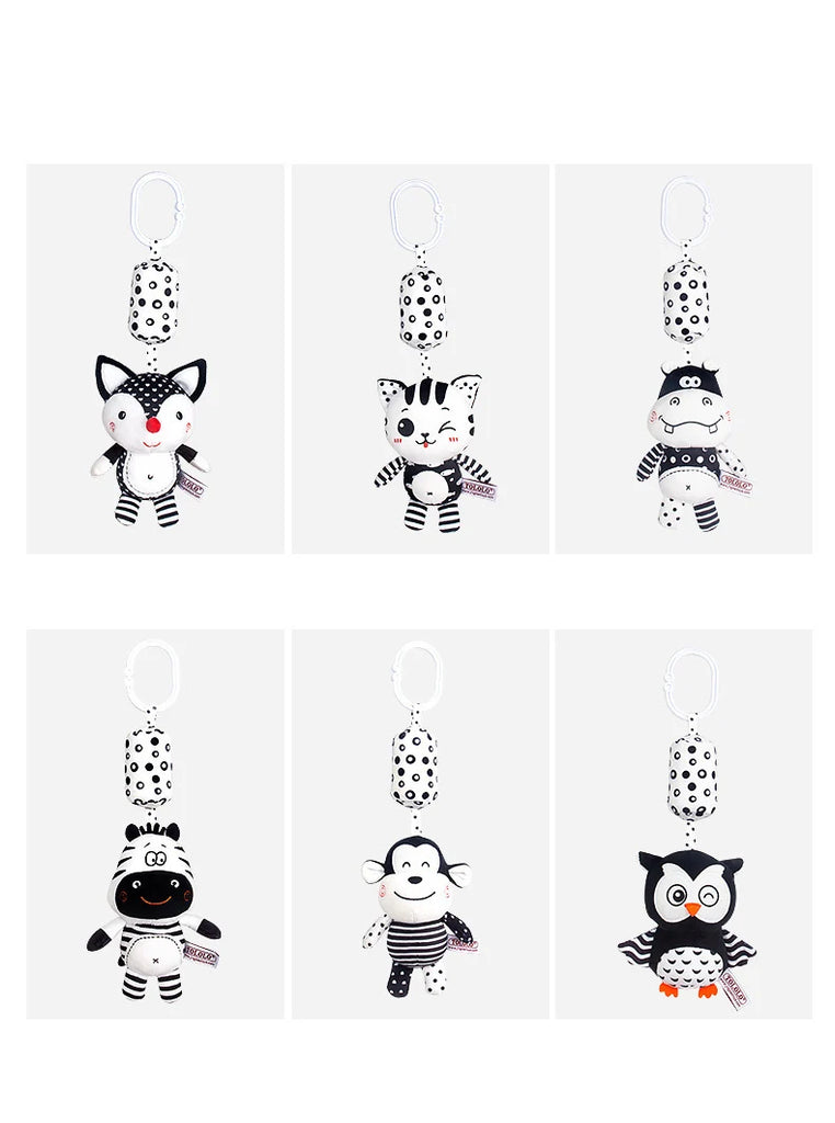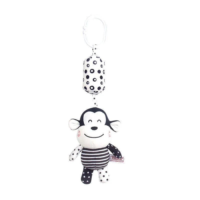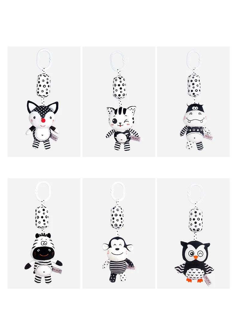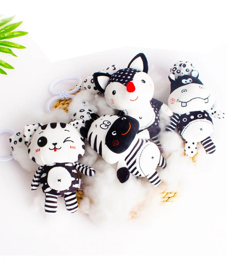 Black & White Baby Rattle & Teether Toy for Crib, Car Seat, Stroller