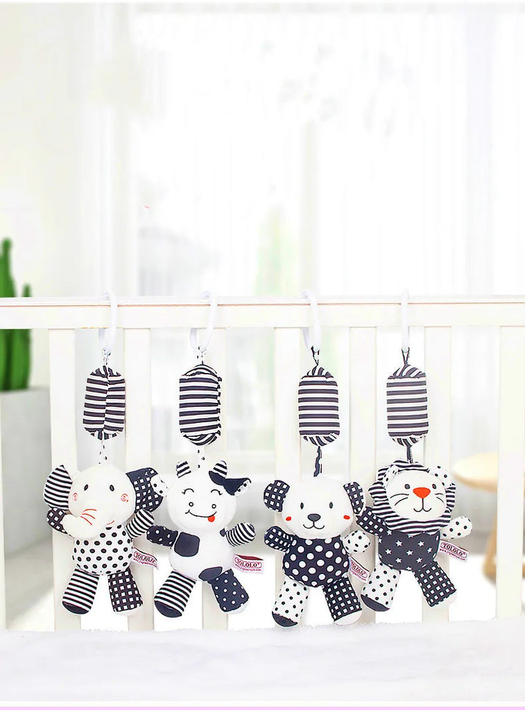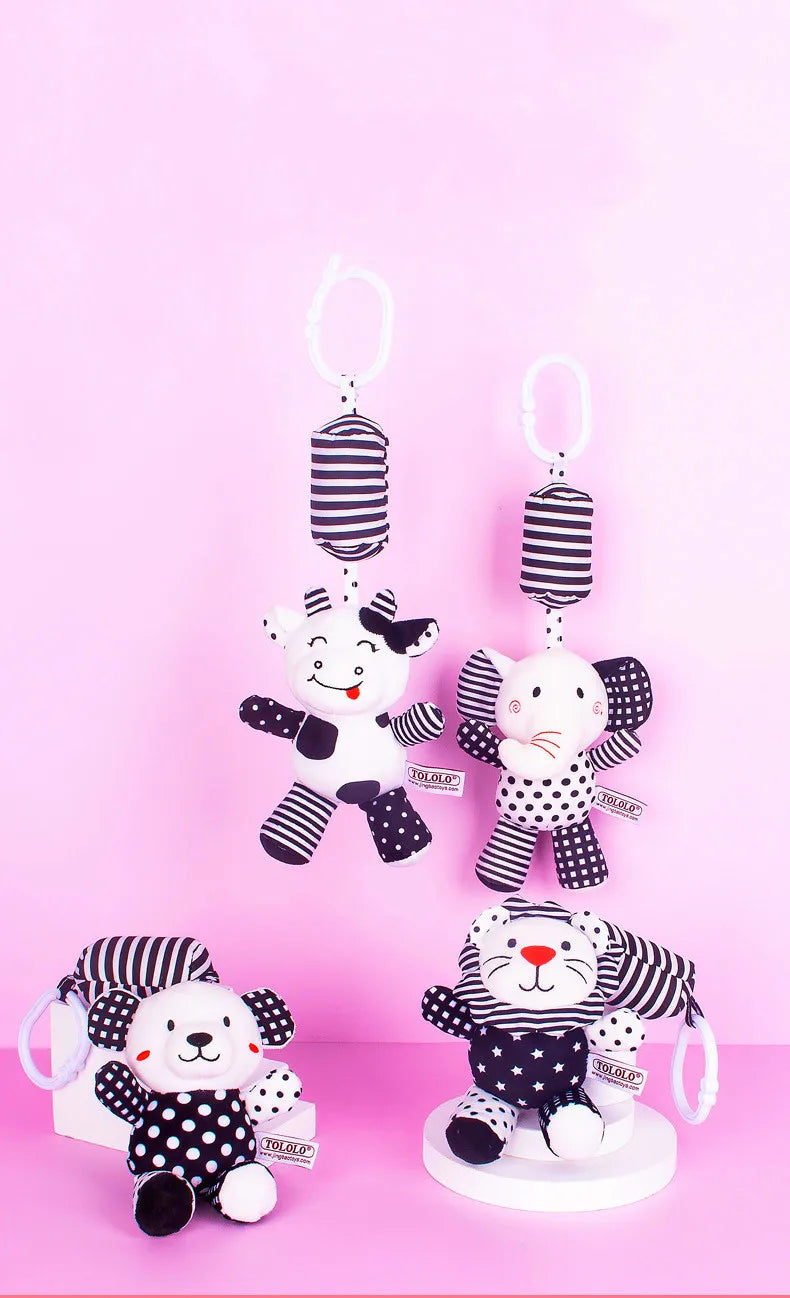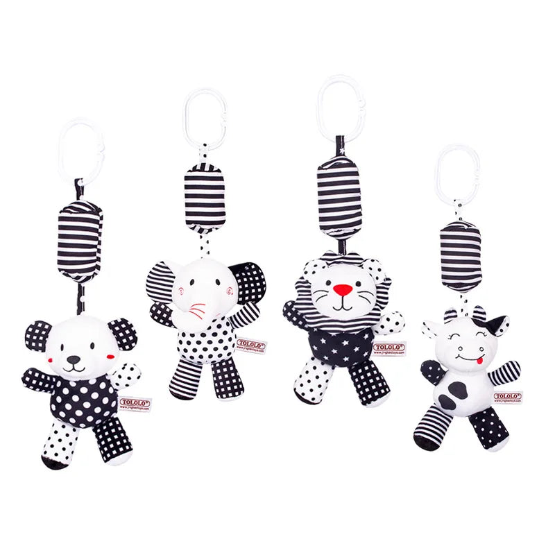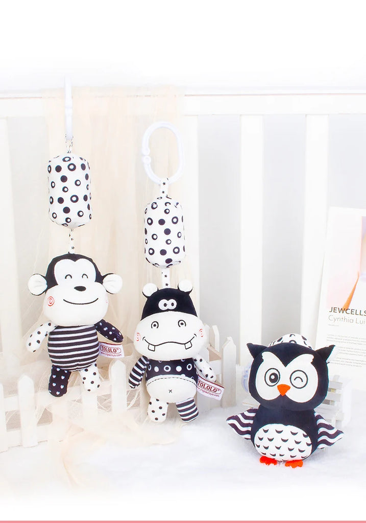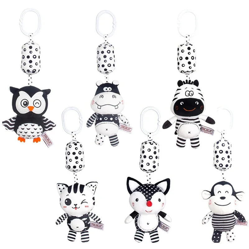 Black & White Baby Rattle & Teether Toy for Crib, Car Seat, Stroller