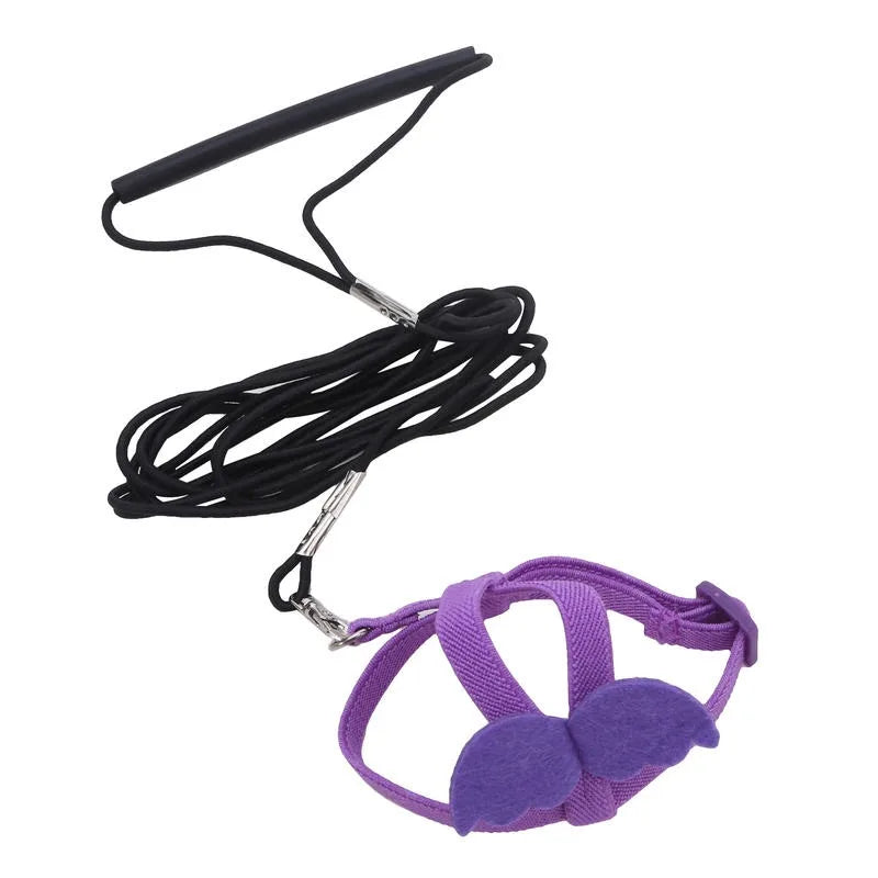 Introduce your bird to a world of adventures with this stylish harness and leash set, designed for optimum comfort and safety. Crafted from durable elastic rope, it ensures flexibility and freedom of movement. Available in vibrant colors such as Yellow, Pink, Blue, and Purple, there's a perfect match for your bird's personality.