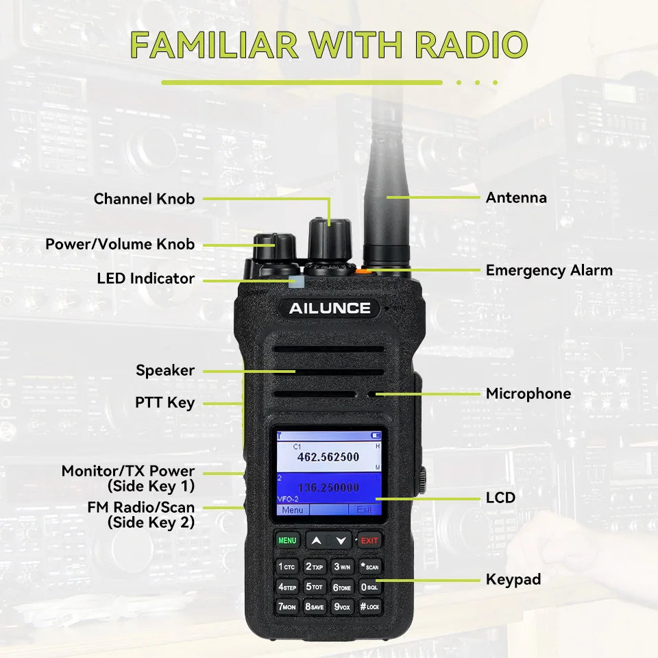 - Frequencies: 136-174 MHz / 400-480 MHz receive only.
