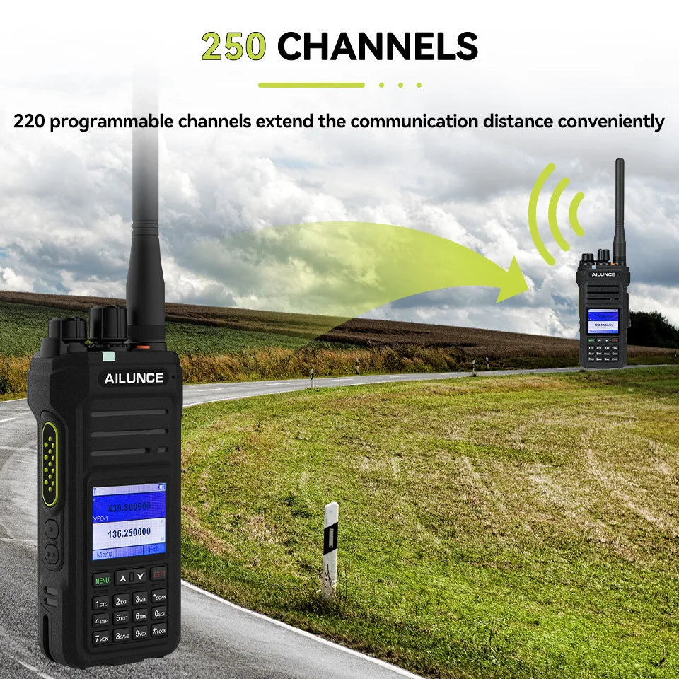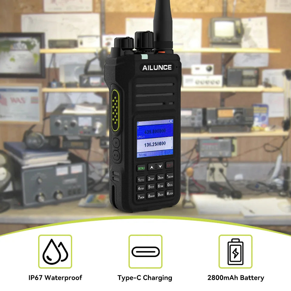 Experience seamless communication with this versatile handheld GMRS radio, perfect for both professional and recreational use. Offering dual-band reception, it allows receiving on UHF and VHF channels. Equipped with IP67 waterproof technology, it can withstand harsh weather conditions and even submerge in water up to 1 meter for 30 minutes. Stay powered throughout your adventure with its 2800mAh rechargeable battery and convenient USB-C charging.
