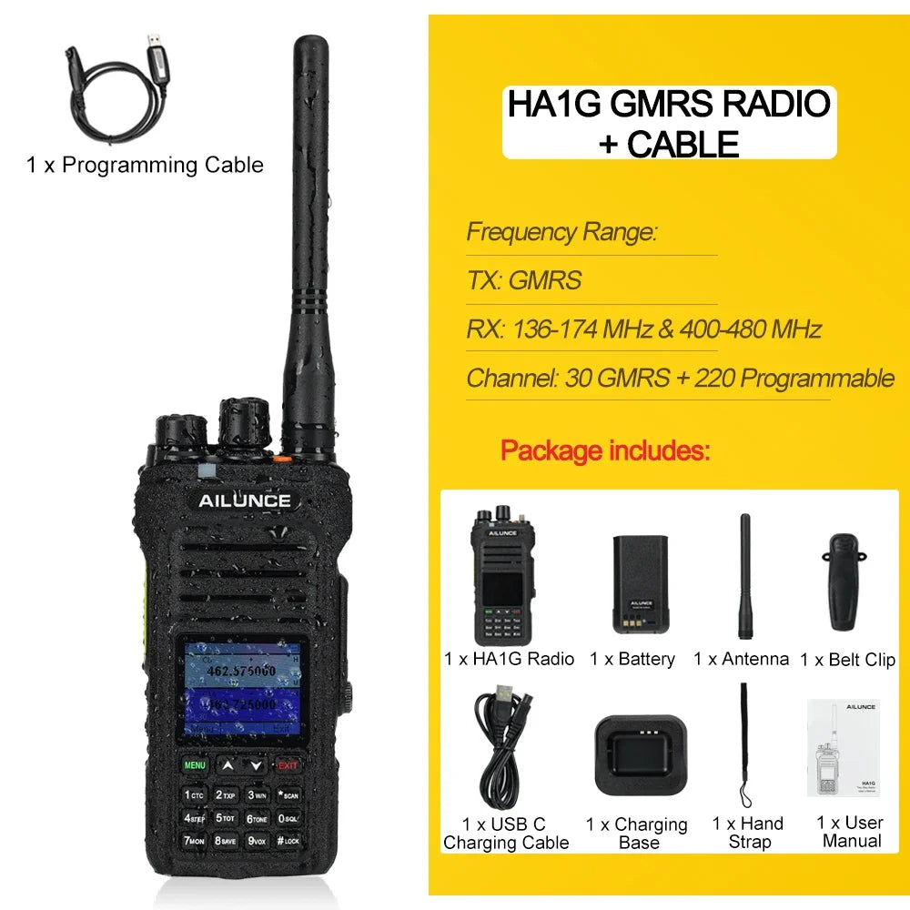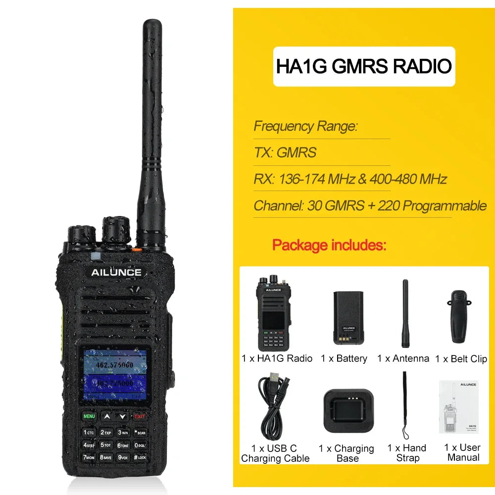 GMRS Walkie Talkie IP67 Waterproof Two-Way Radio with USB-C, 5W Portable Transceiver HT