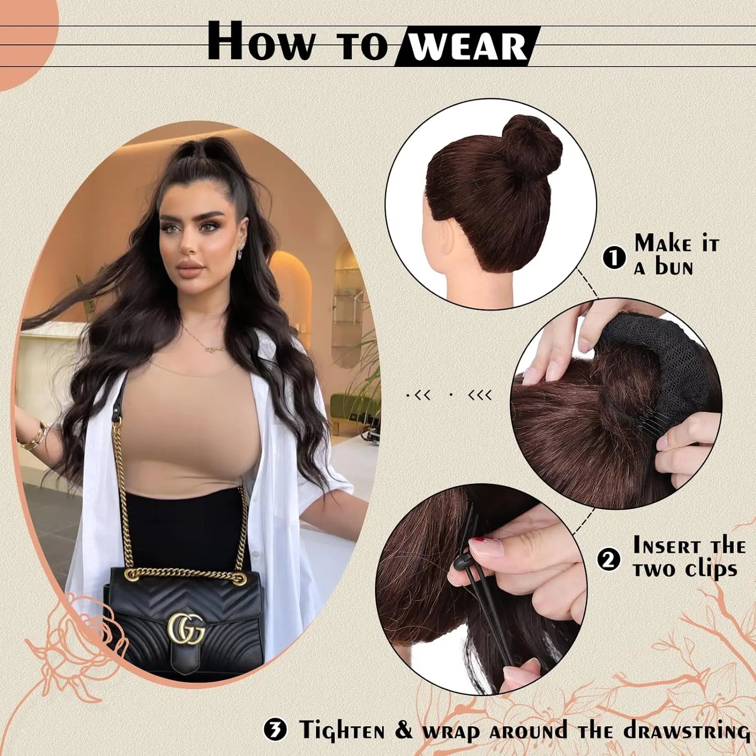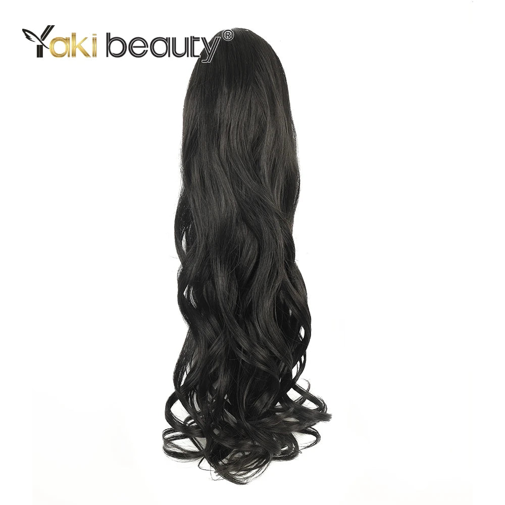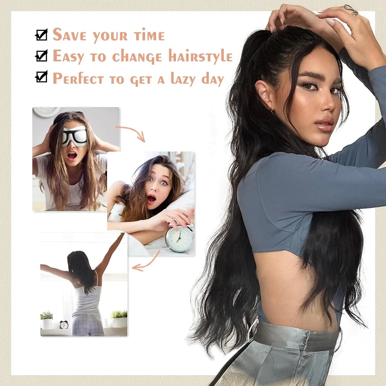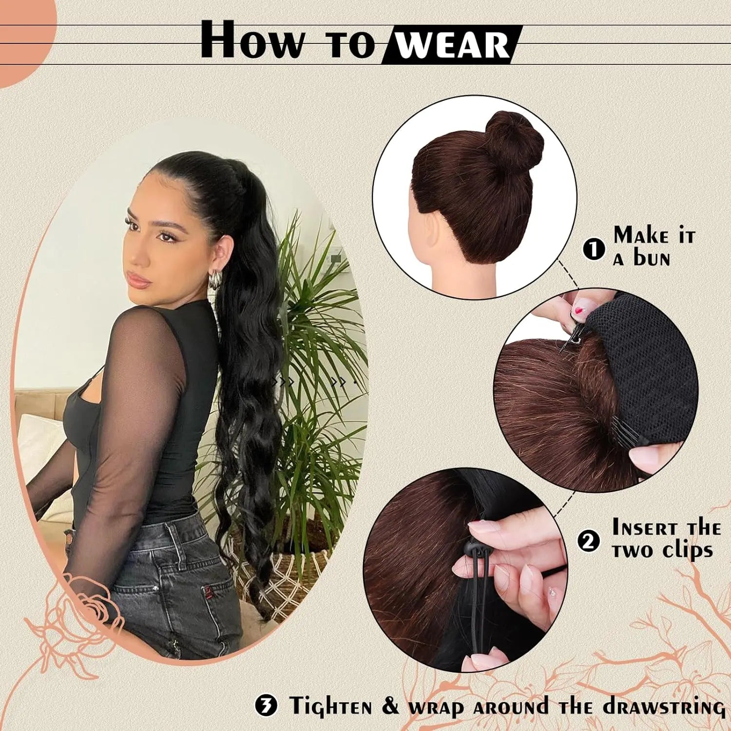 28" Synthetic Body Wave Drawstring Ponytail Extensions Natural Wavy Hair Clip-In for Black Women