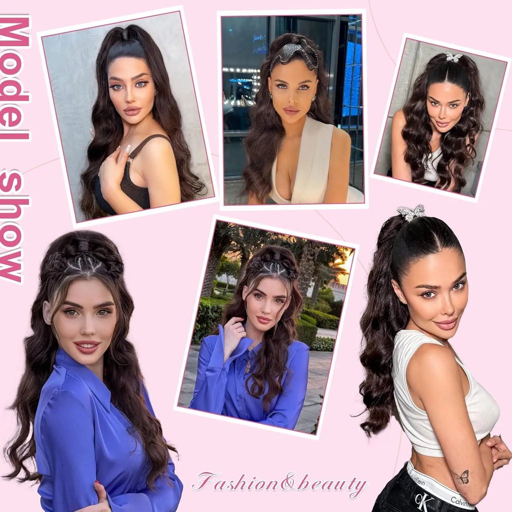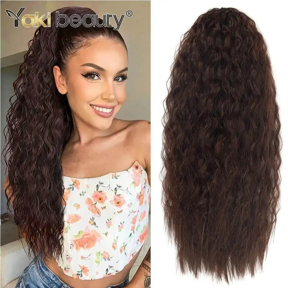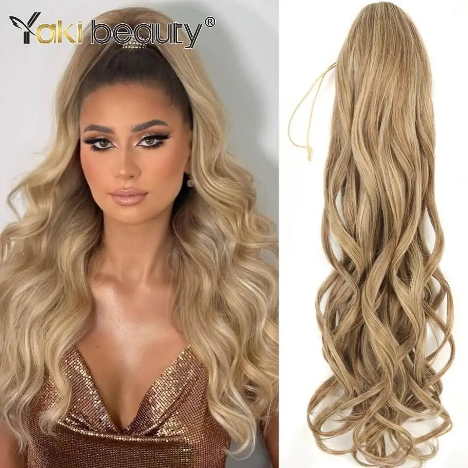 Transform your style with this 28-inch Synthetic Body Wave Drawstring Ponytail. Perfect for black women seeking a long, natural-looking curly hair extension, this versatile piece adds length and volume effortlessly. Crafted from high-temperature fiber, it offers a beautiful wavy texture that mimics natural hair. Easy to apply with a secure drawstring and clip-in mechanism, this ponytail gives you an instant, glamorous look without needing a professional stylist.