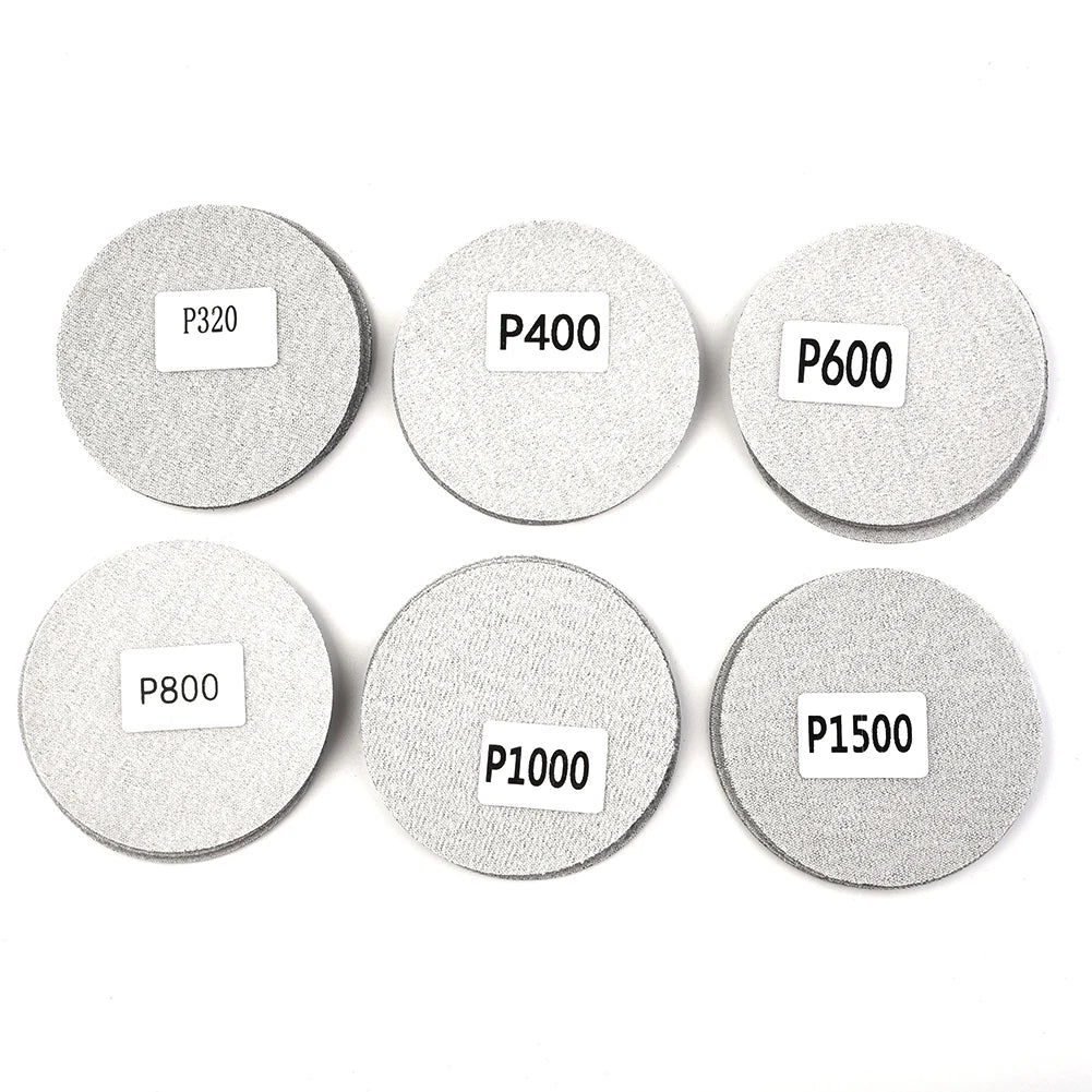 - Includes 30 sanding discs (5 each of 320, 400, 600, 800, 1000, and 1500 grit)