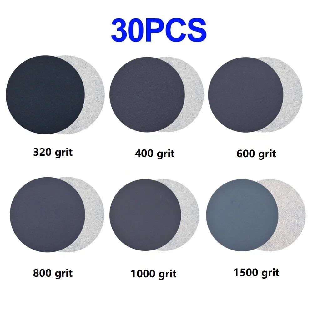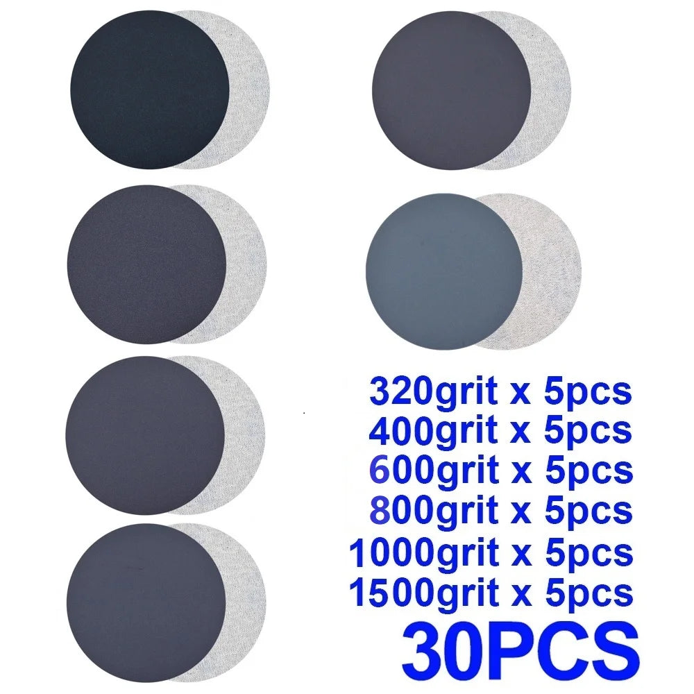 30 Pcs 3" Silicon Carbide Sanding Discs Set, Wet/Dry 320-1500 Grit for Polishing