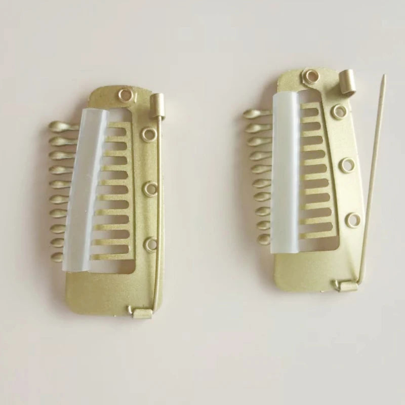 Enhance your hair styling with these versatile T-shaped clips, perfect for wigs, hair wefts, machine wefted, and weaving extensions. Crafted from high-quality stainless steel, these clips ensure durability and strength without the use of any high-concern chemicals. Available in a variety of colors—black, brown, gold, and silver—you can choose the perfect match for your style. Each clip measures 3.6 cm in length, offering a secure hold for your hair needs. Available in sets of 5 or 10 pieces, these clips are a must-have accessory for any hair enthusiast.