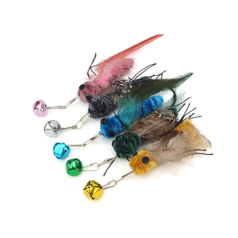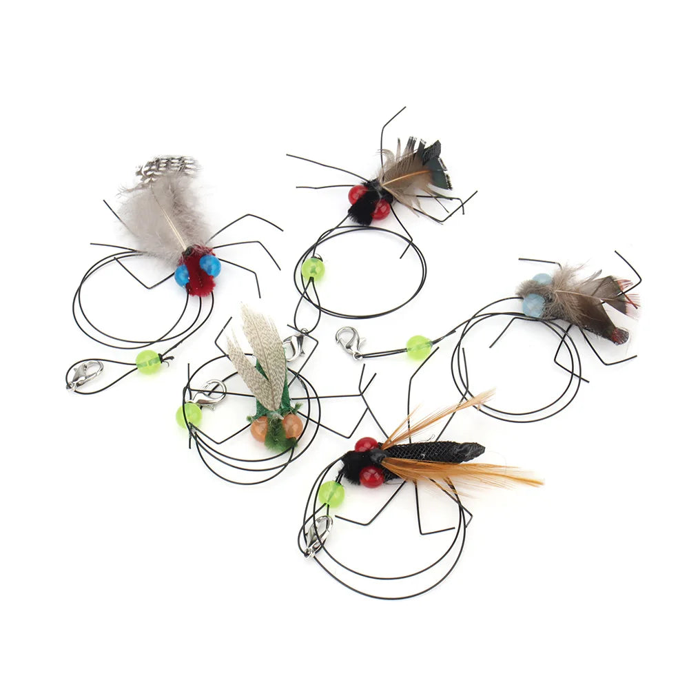 Cat Wand Toy Set: 5 Feather & Bug Attachments for Fun Interactive Play