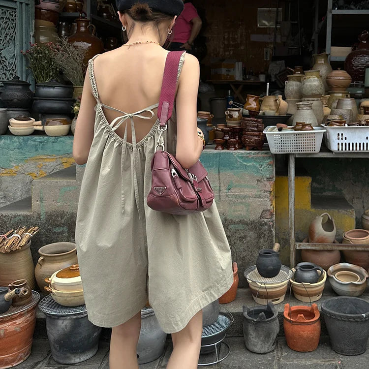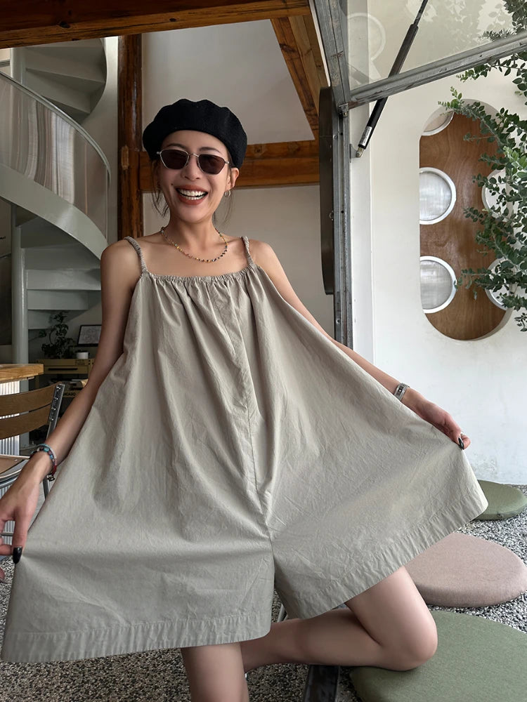 Baggy Women's Backless Rompers, Wide Leg, Breathable, Casual Summer Strap Overalls, Harajuku Street Style