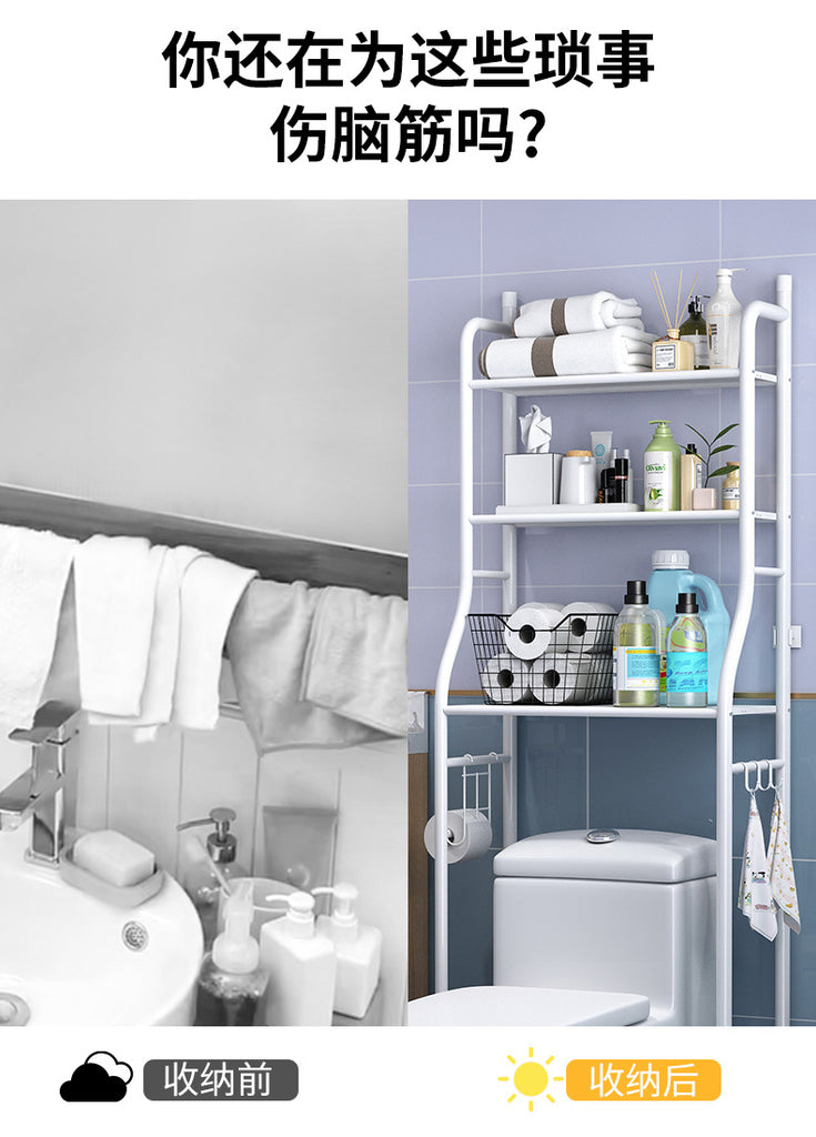 Bathroom Toilet Storage Rack: Punch-Free Washroom Organizer for Toiletries and Washing Machine Basin