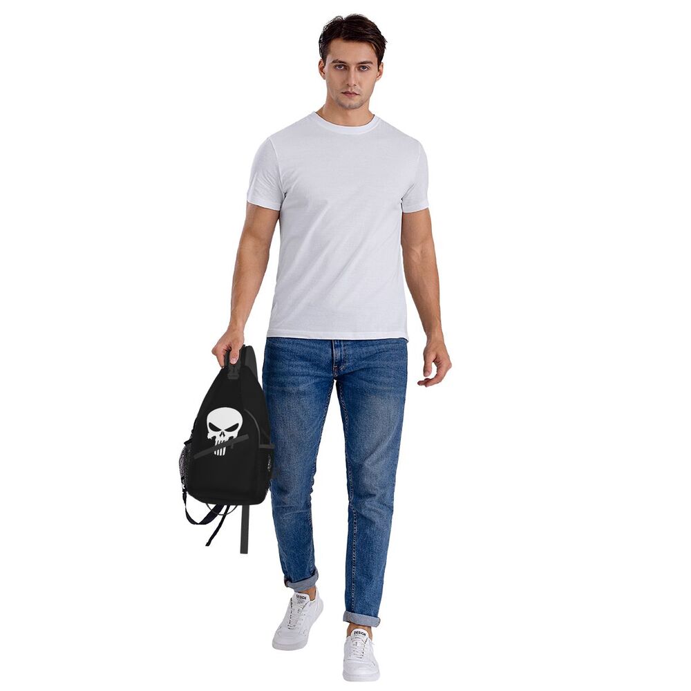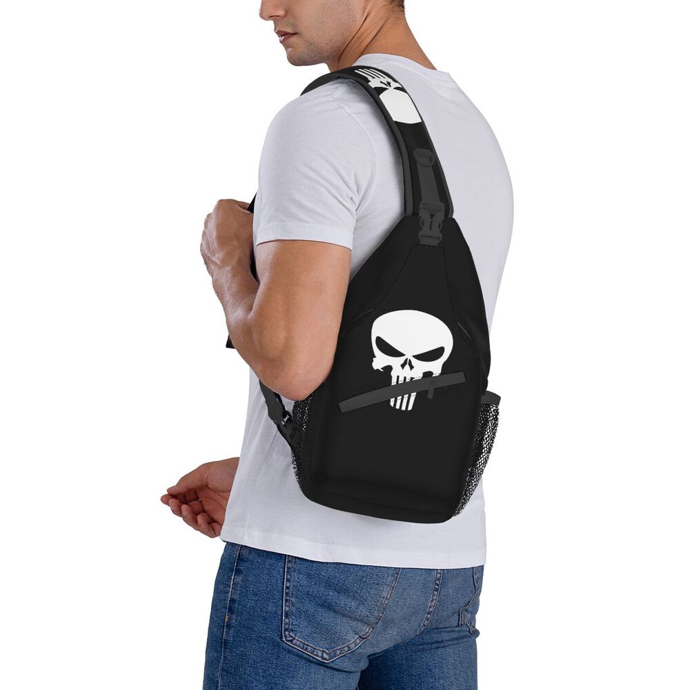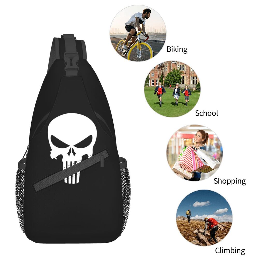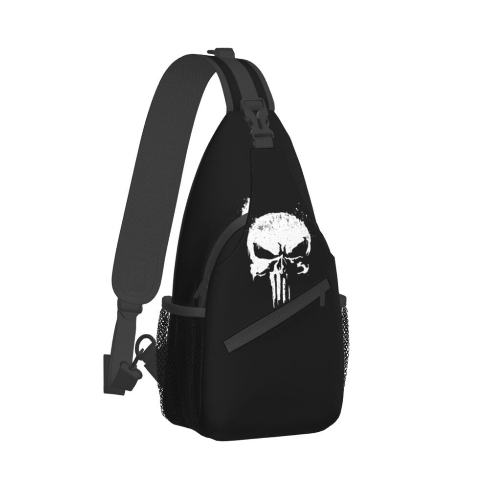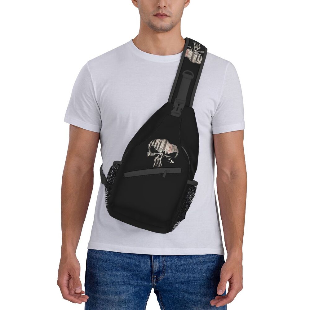 Casual Skull Crossbody Sling Backpack for Men – Shoulder Chest Bag for Camping & Biking