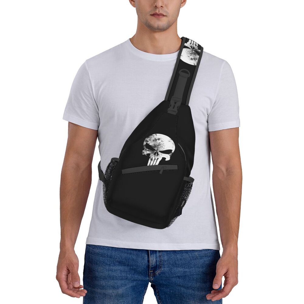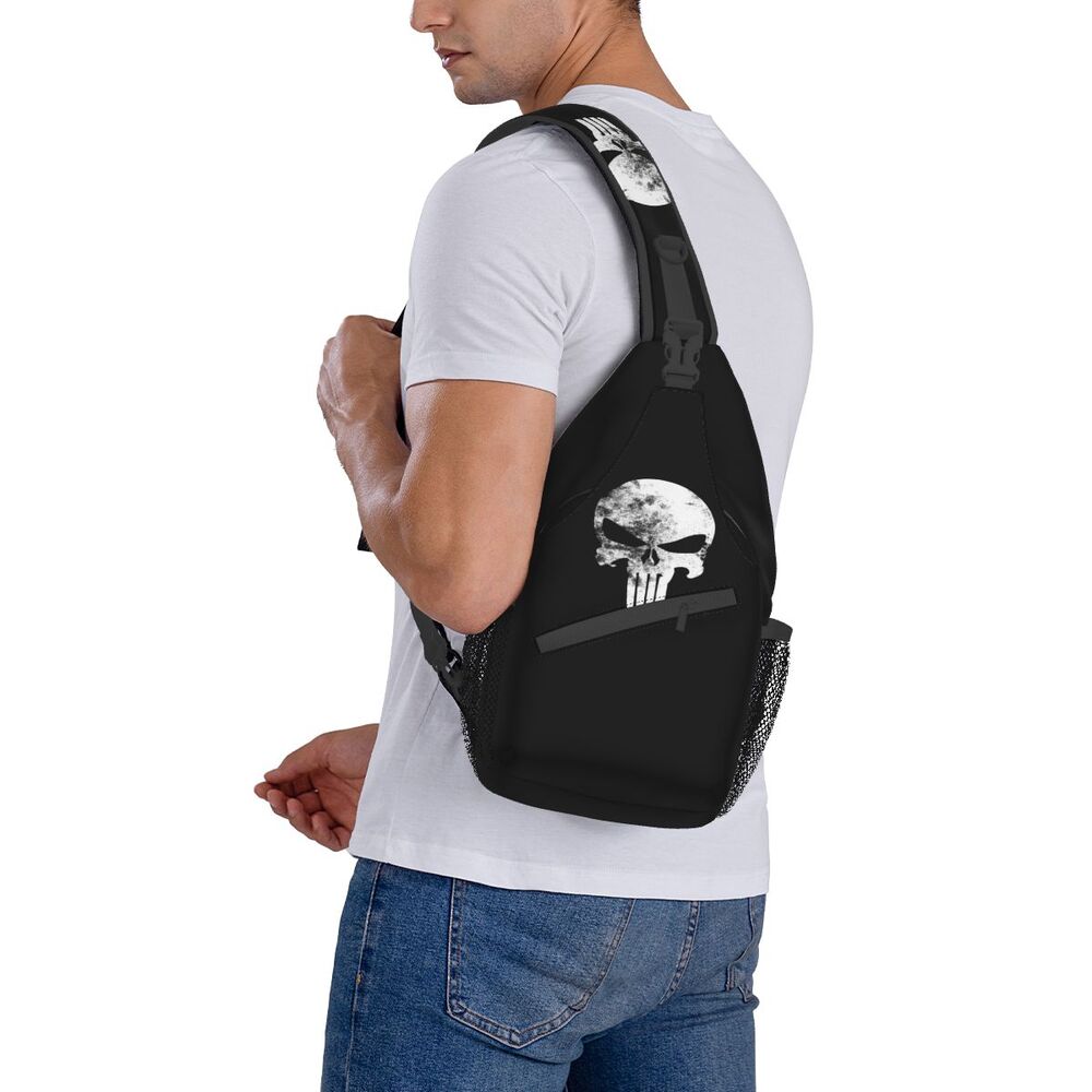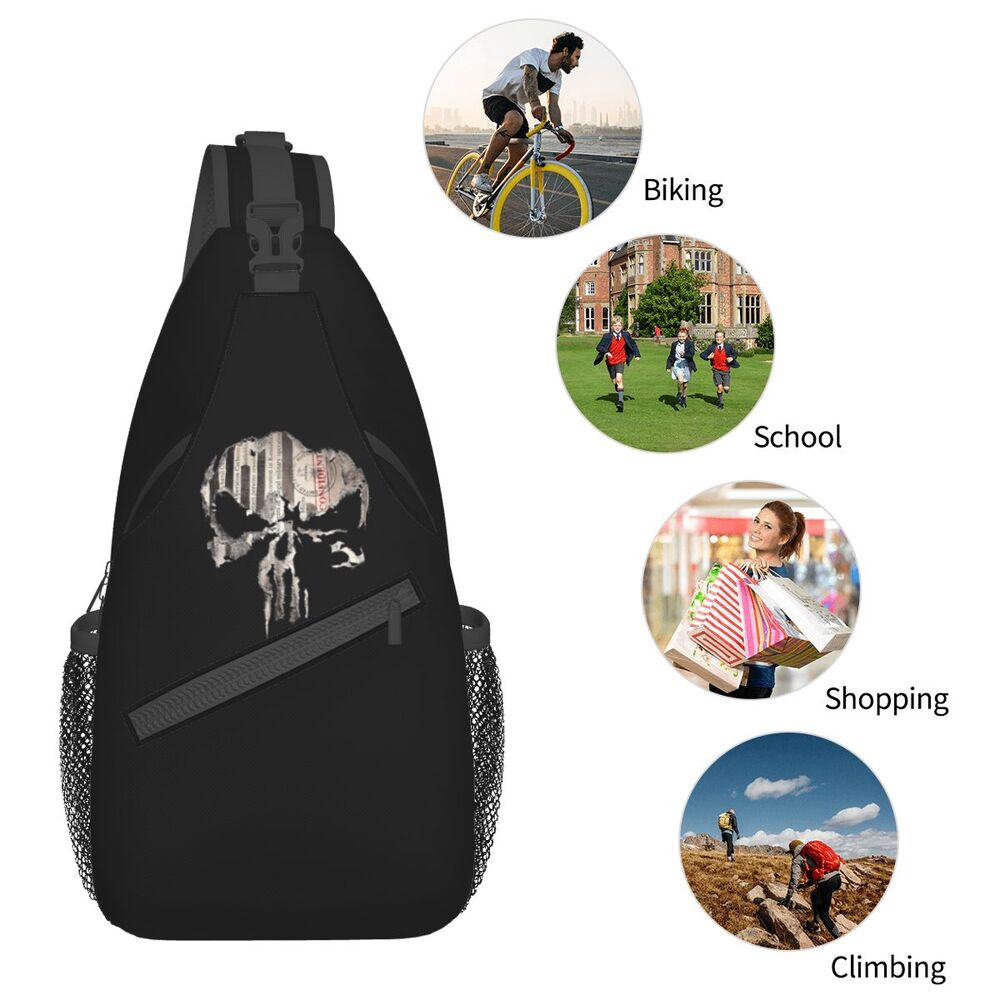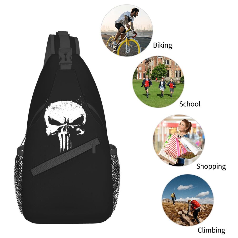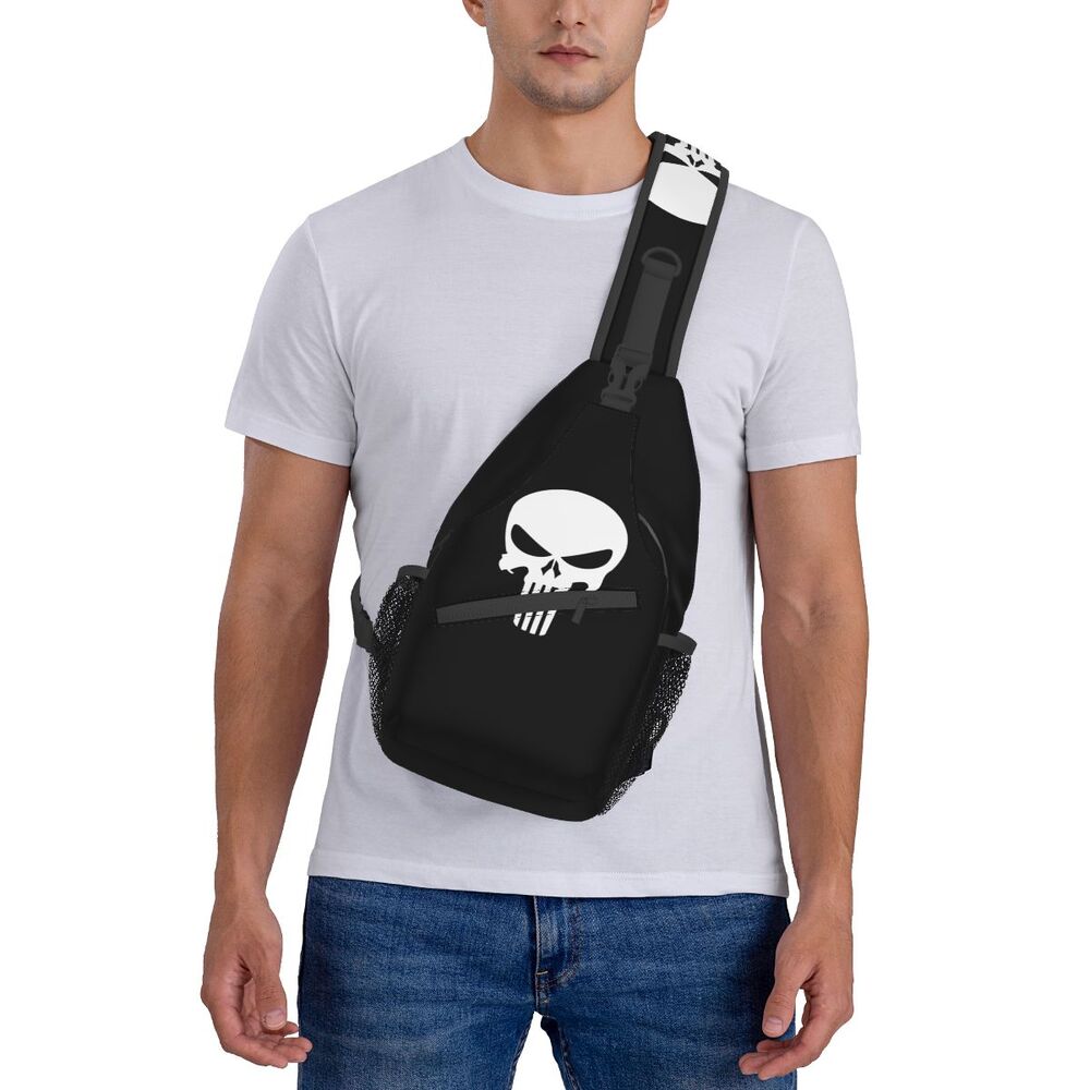 Casual Skull Crossbody Sling Backpack for Men – Shoulder Chest Bag for Camping & Biking