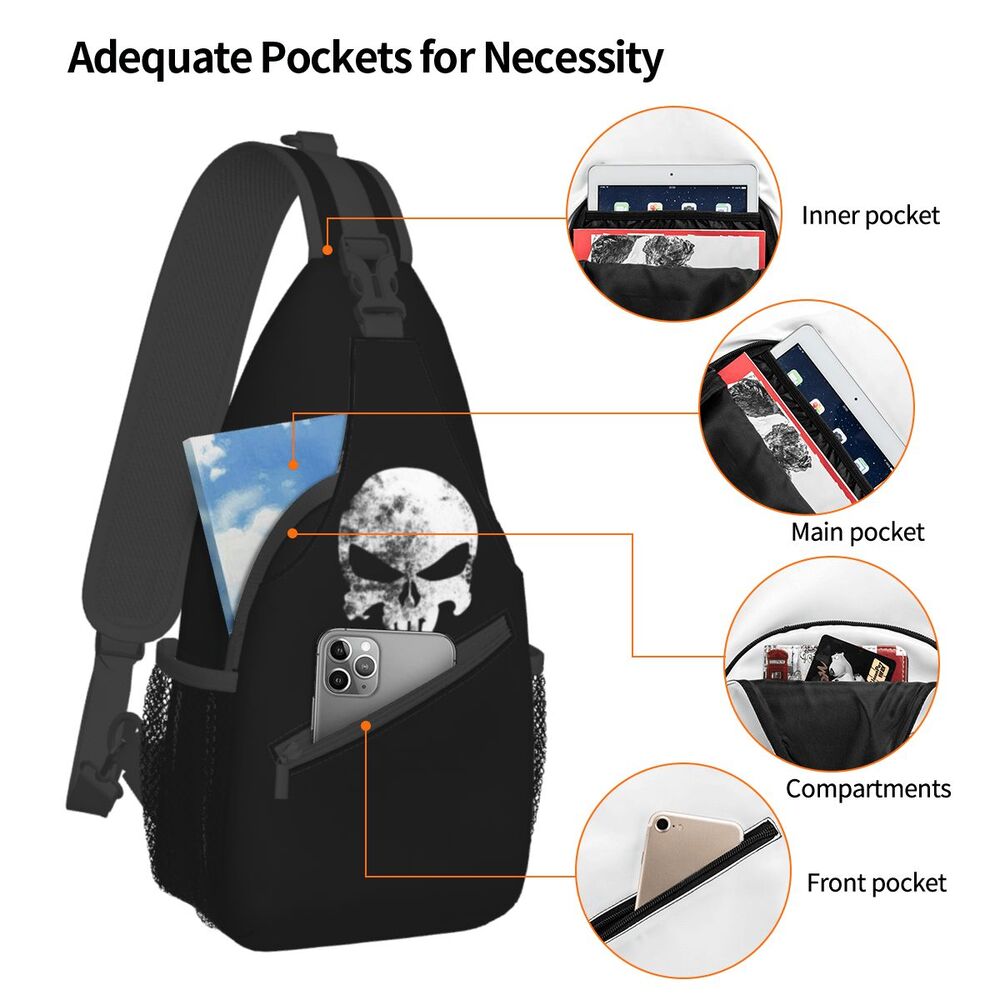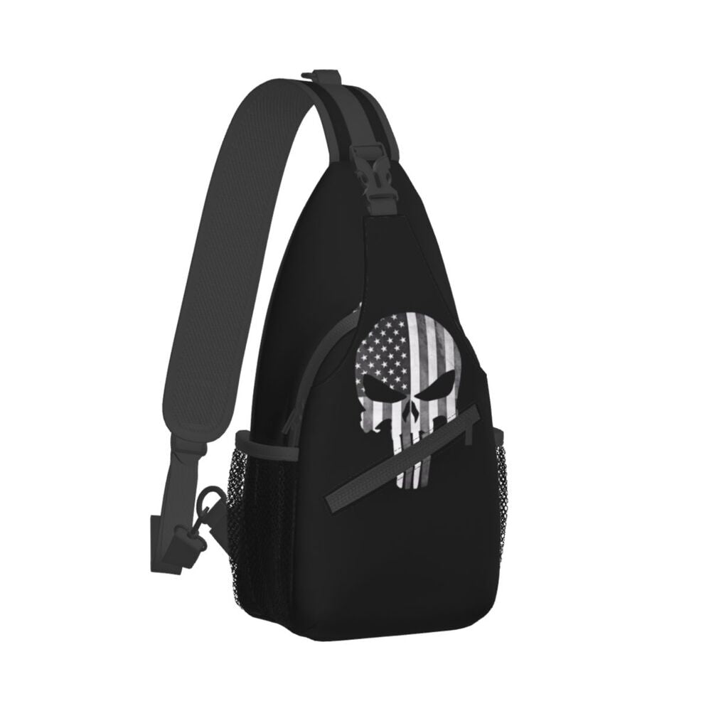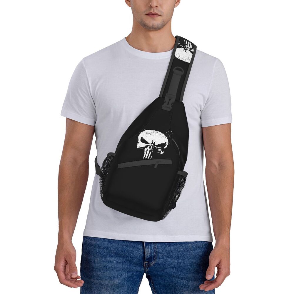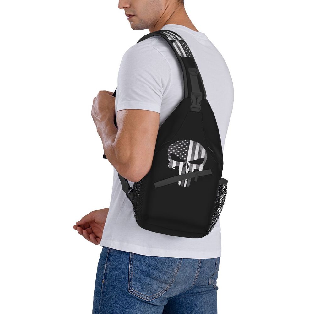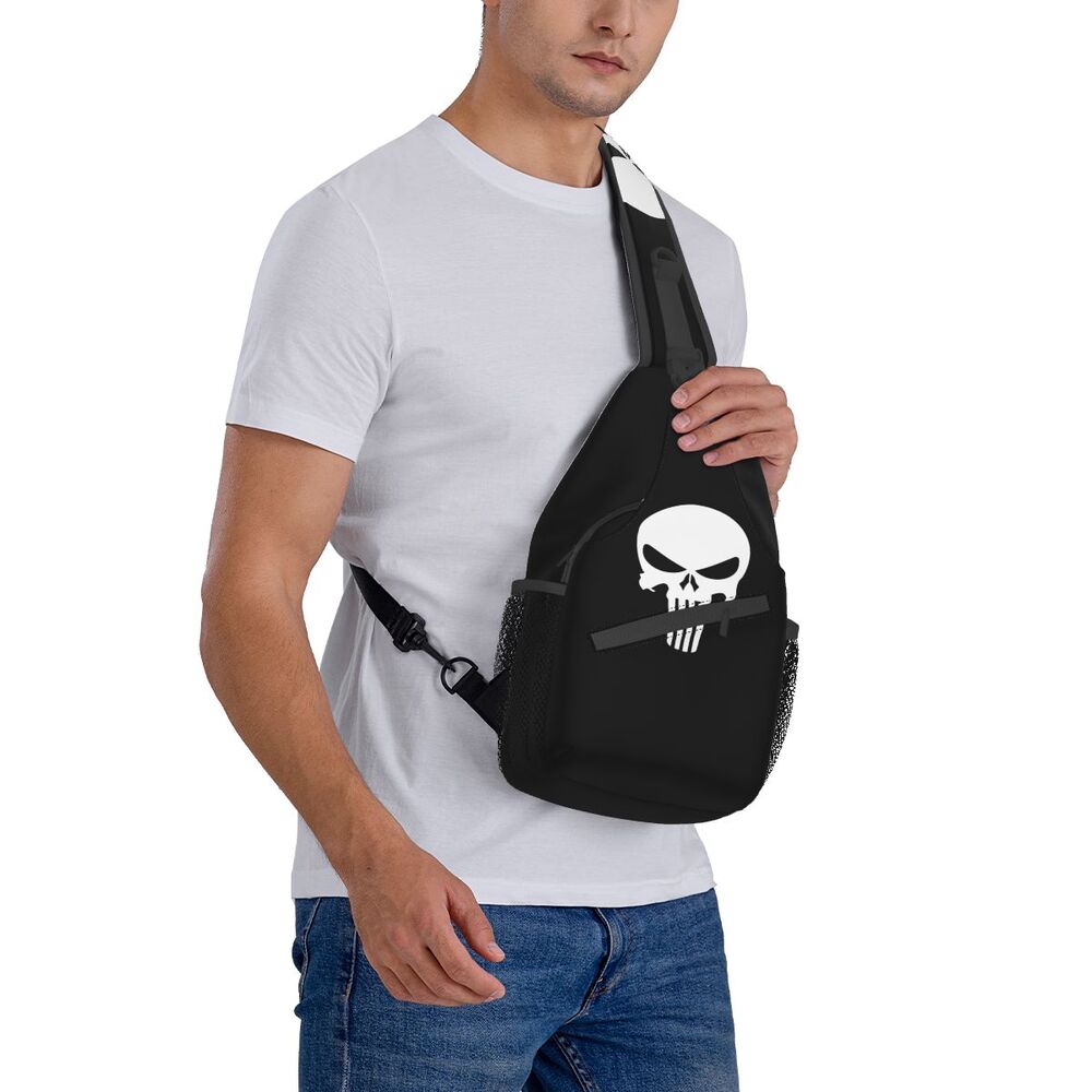Casual Skull Crossbody Sling Backpack for Men – Shoulder Chest Bag for Camping & Biking