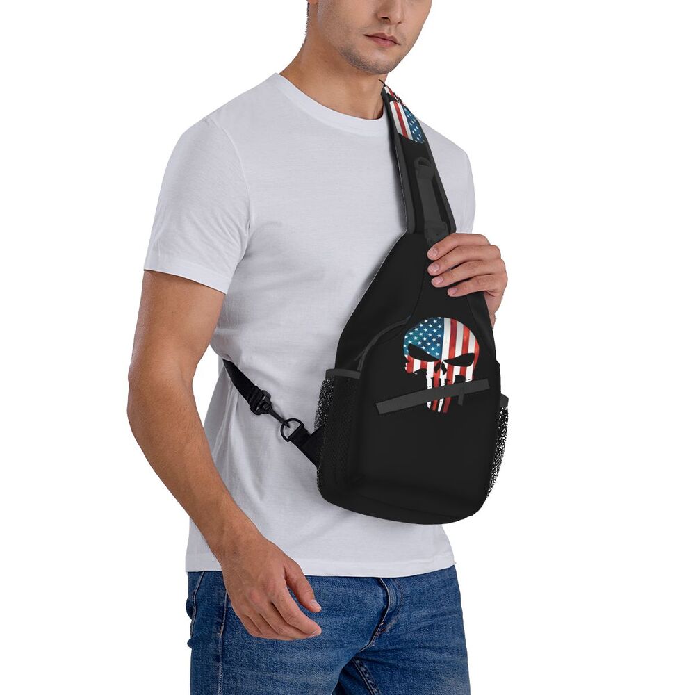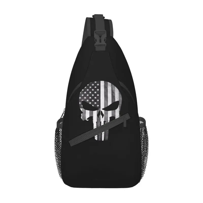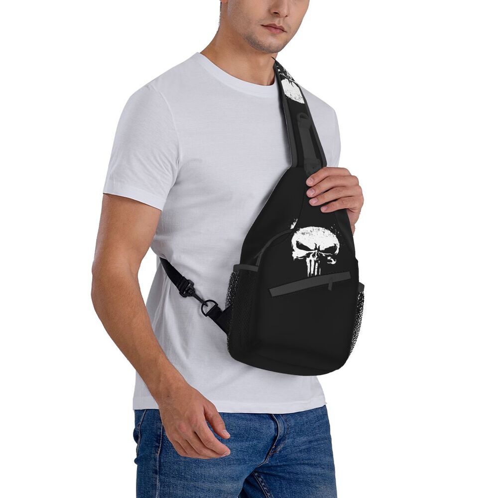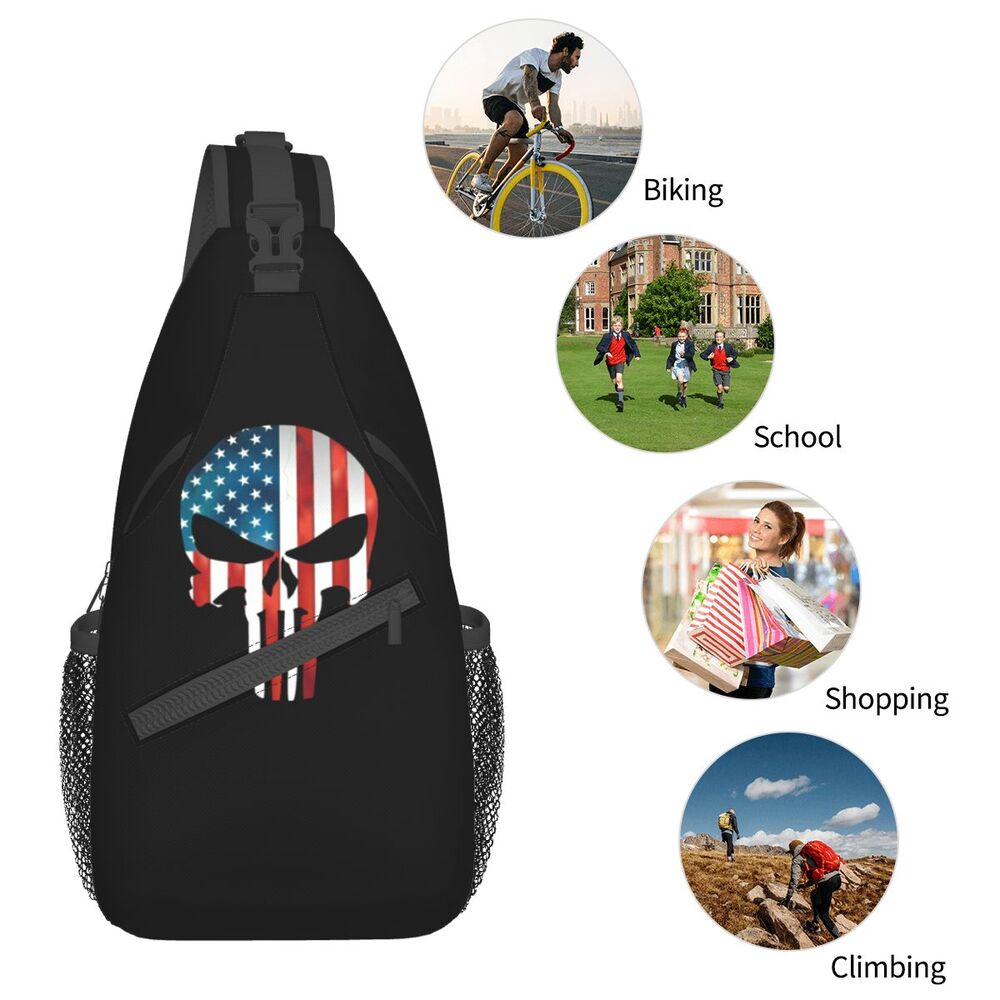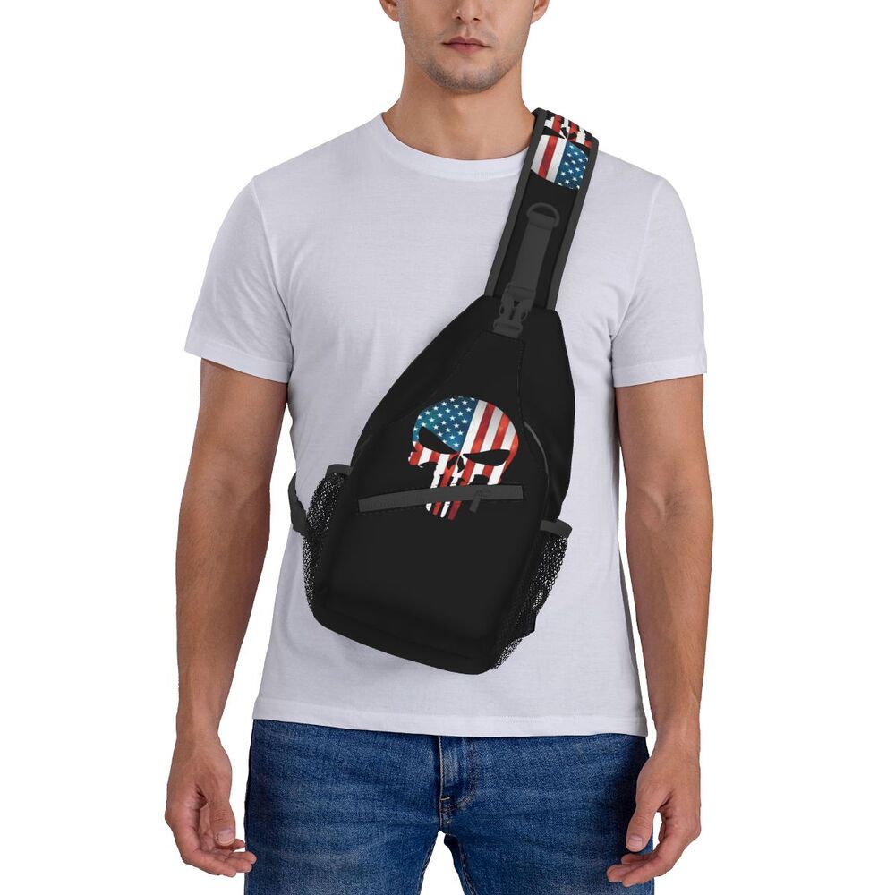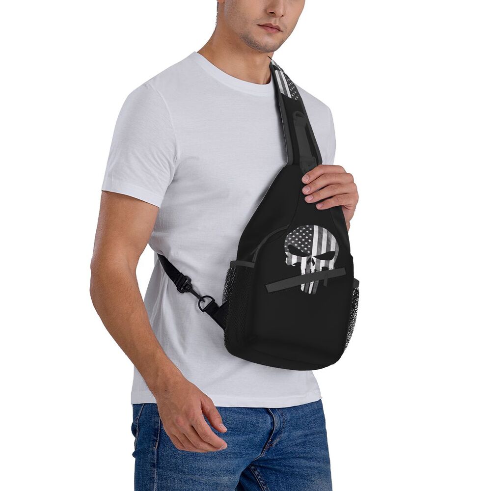 Casual Skull Crossbody Sling Backpack for Men – Shoulder Chest Bag for Camping & Biking