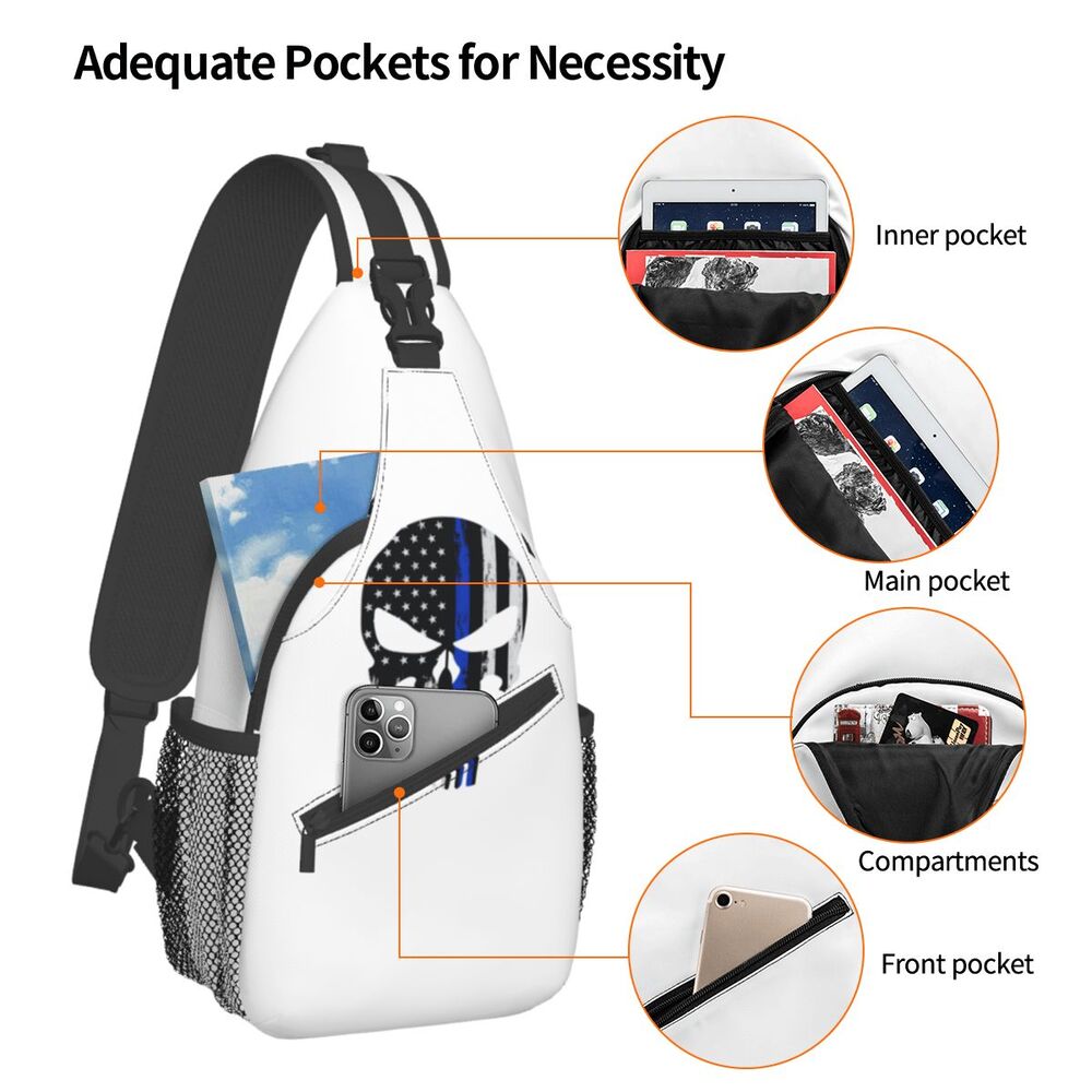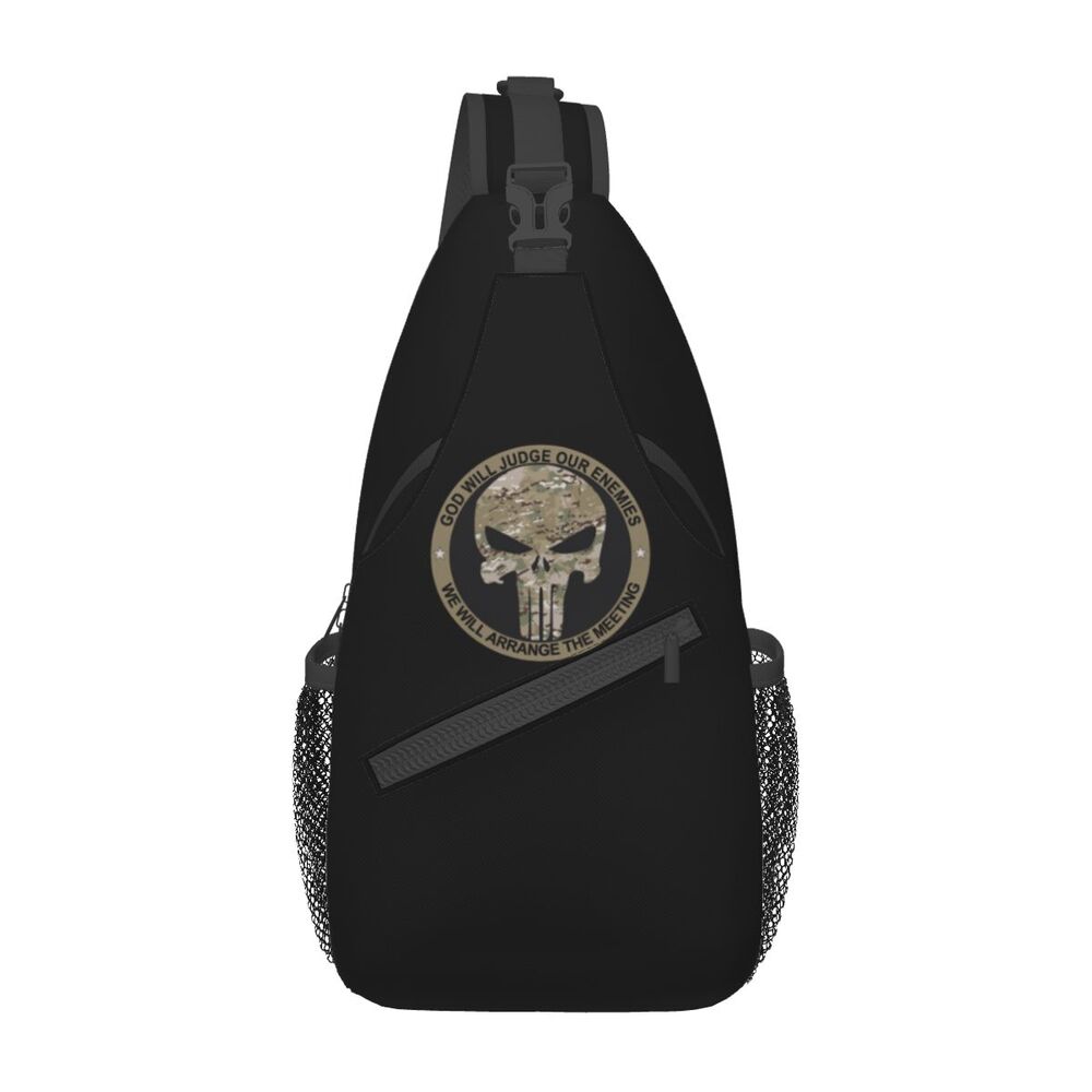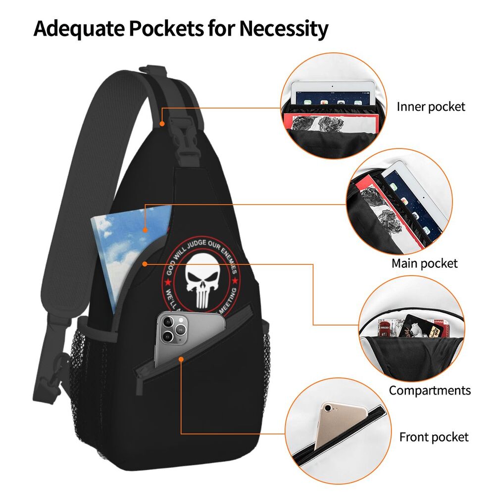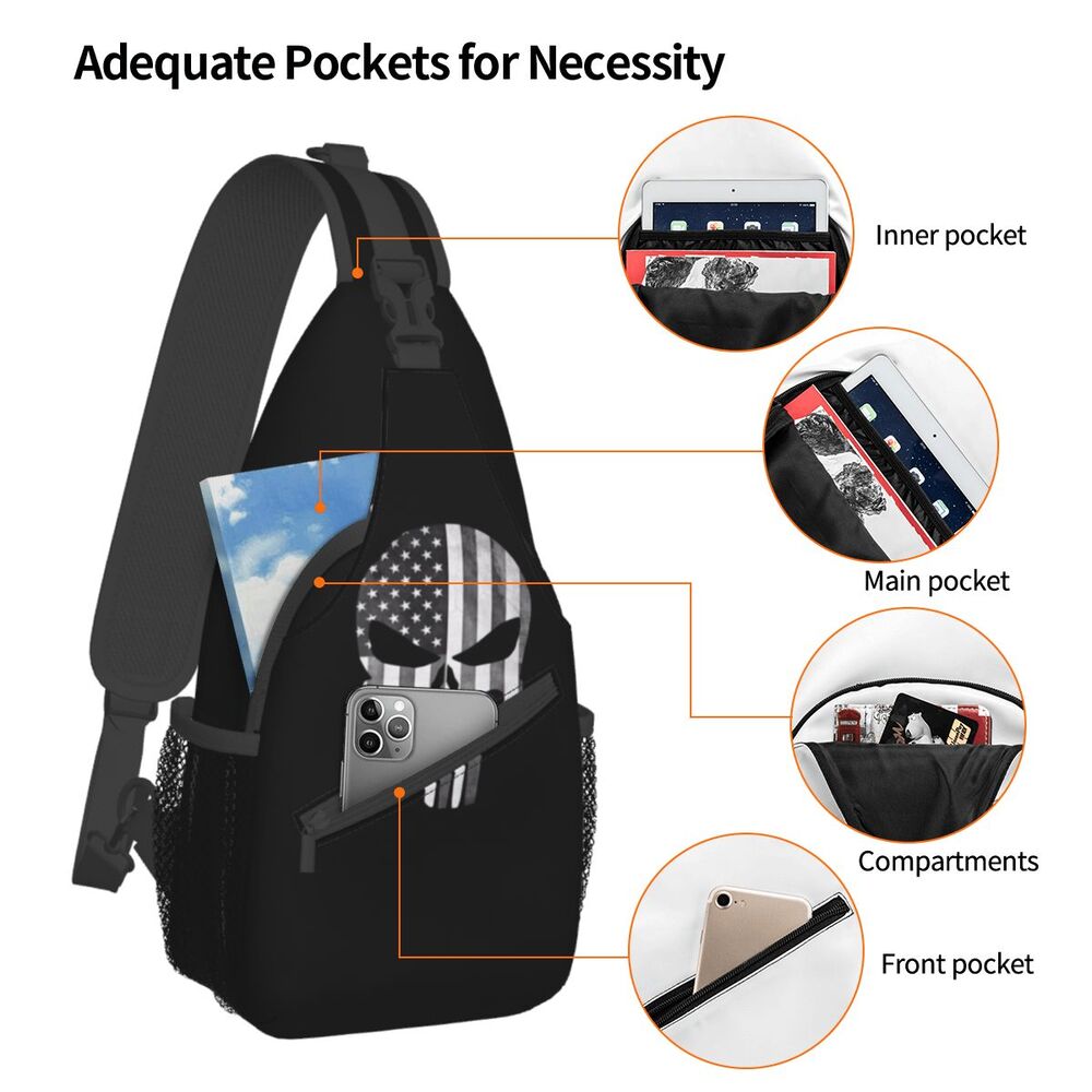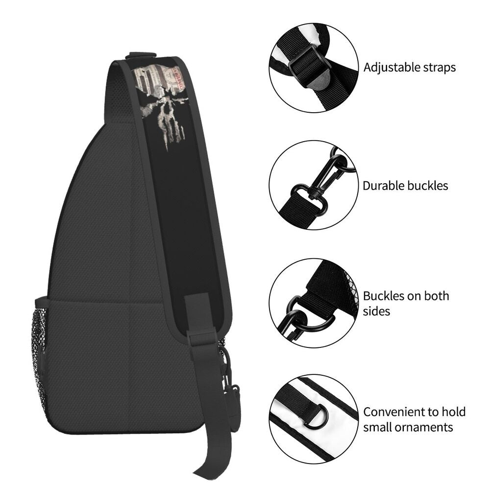 Casual Skull Crossbody Sling Backpack for Men – Shoulder Chest Bag for Camping & Biking