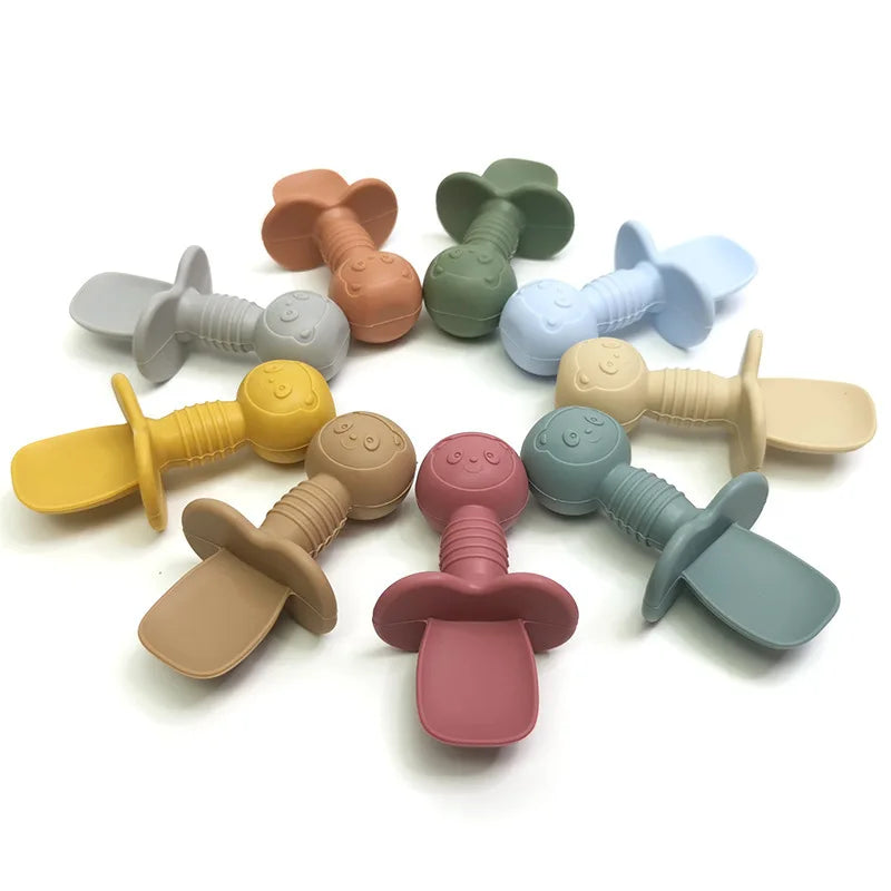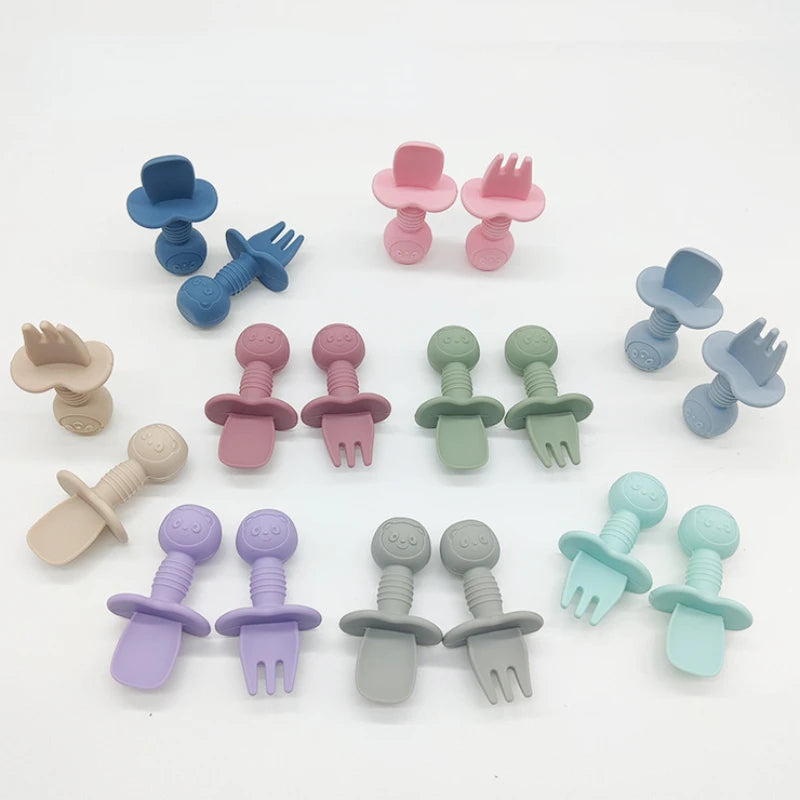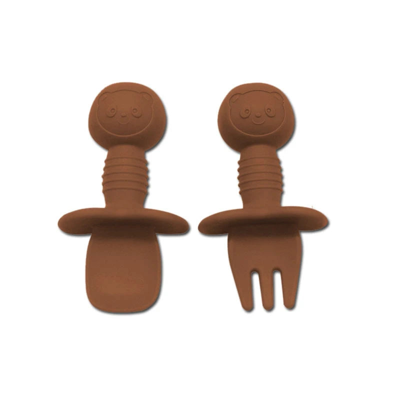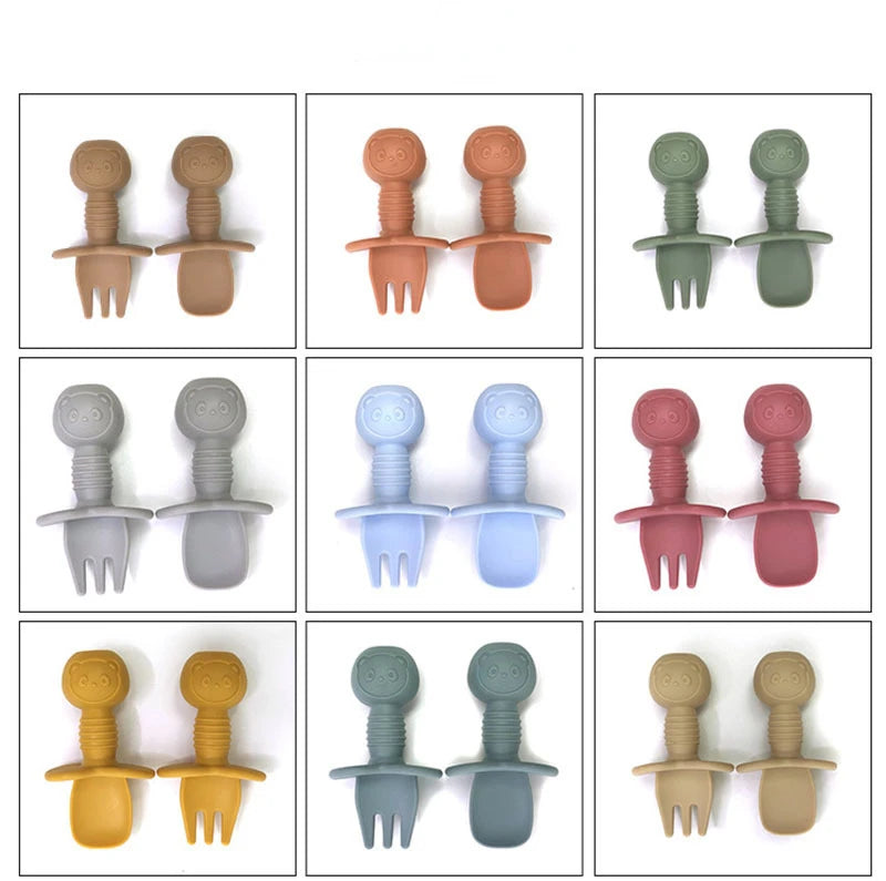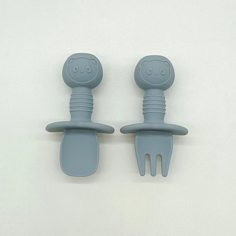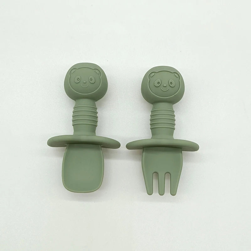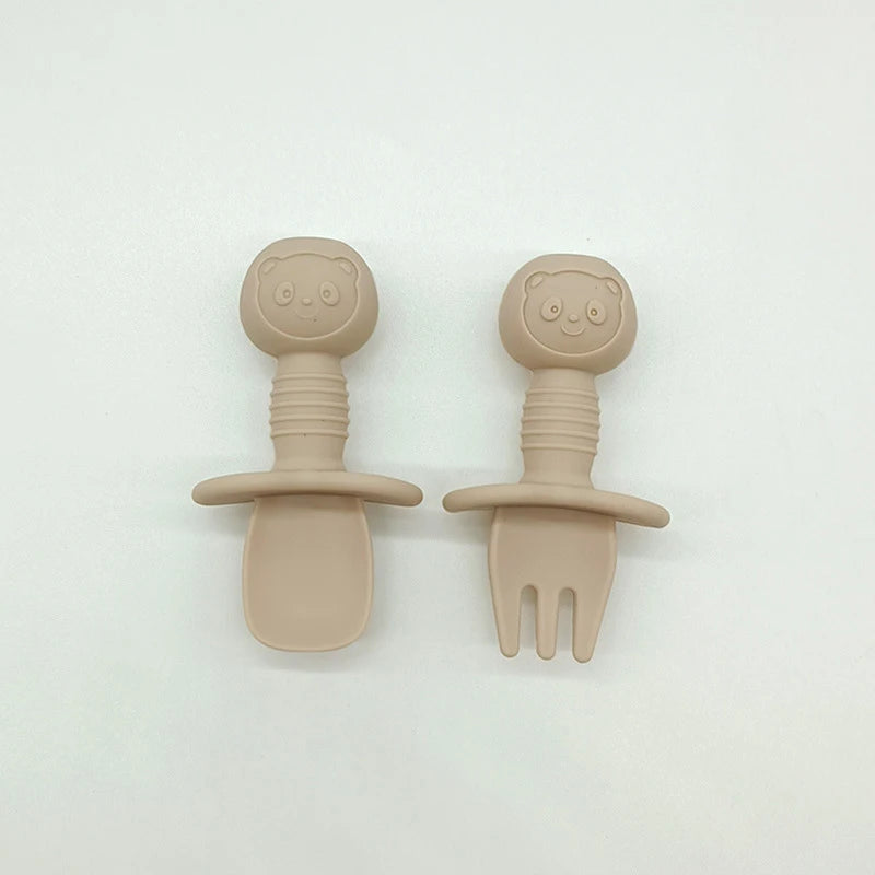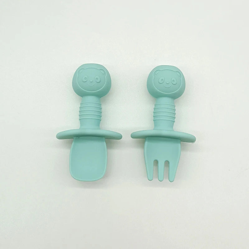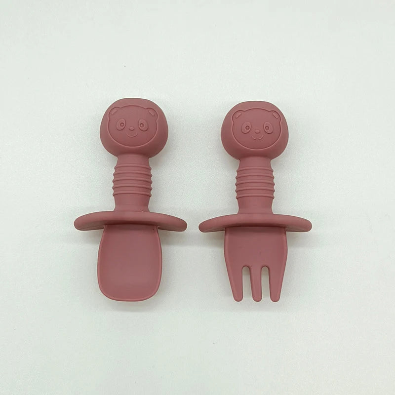 Children’s Bear Fork & Spoon Set, Silicone Baby Feeding Utensils, Training & Complementary Food Tableware