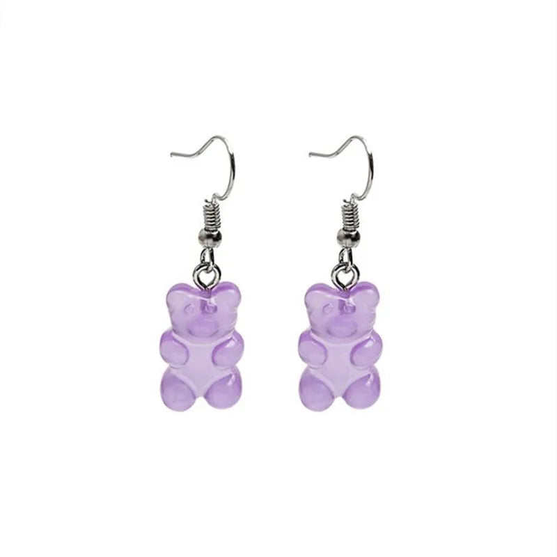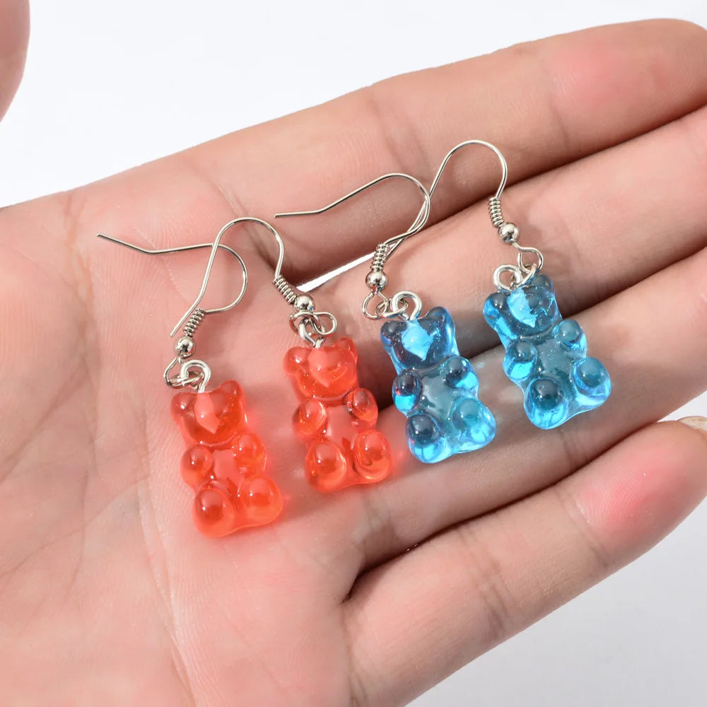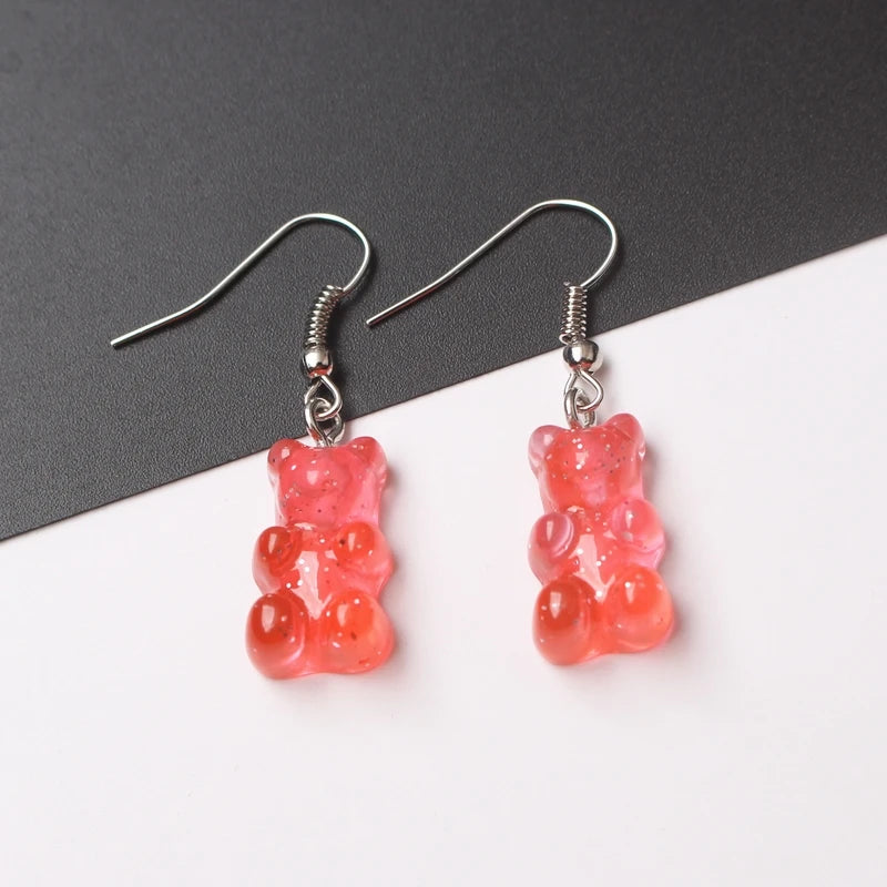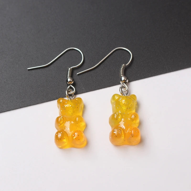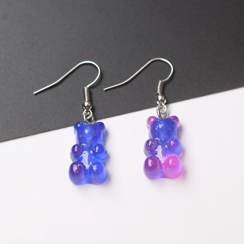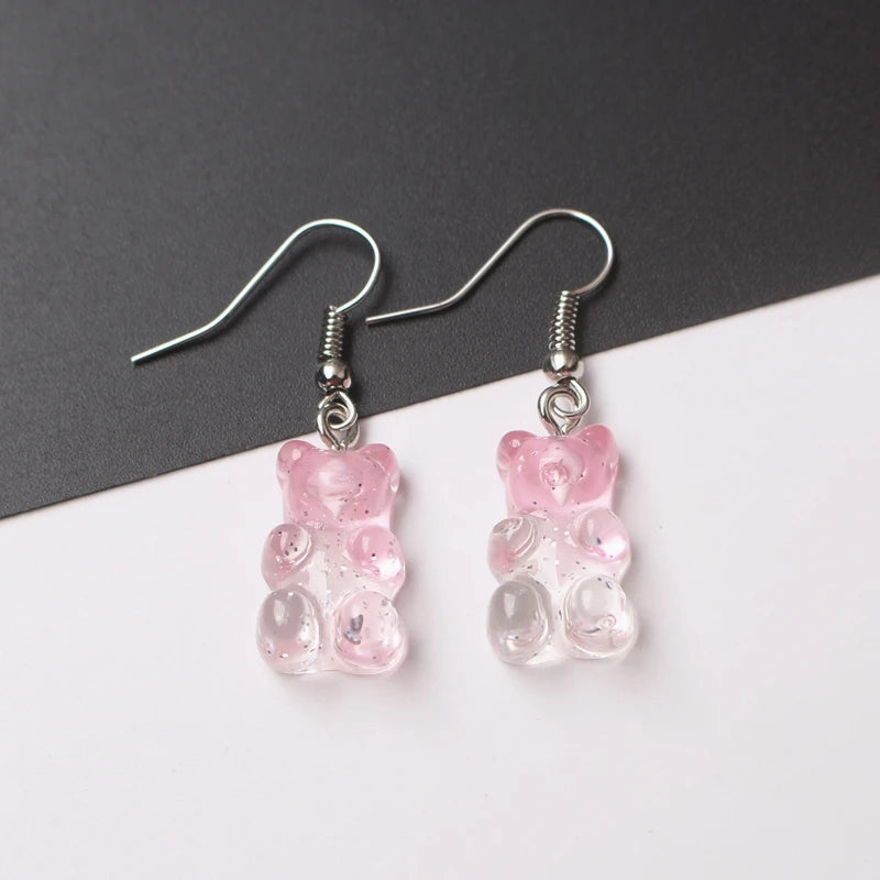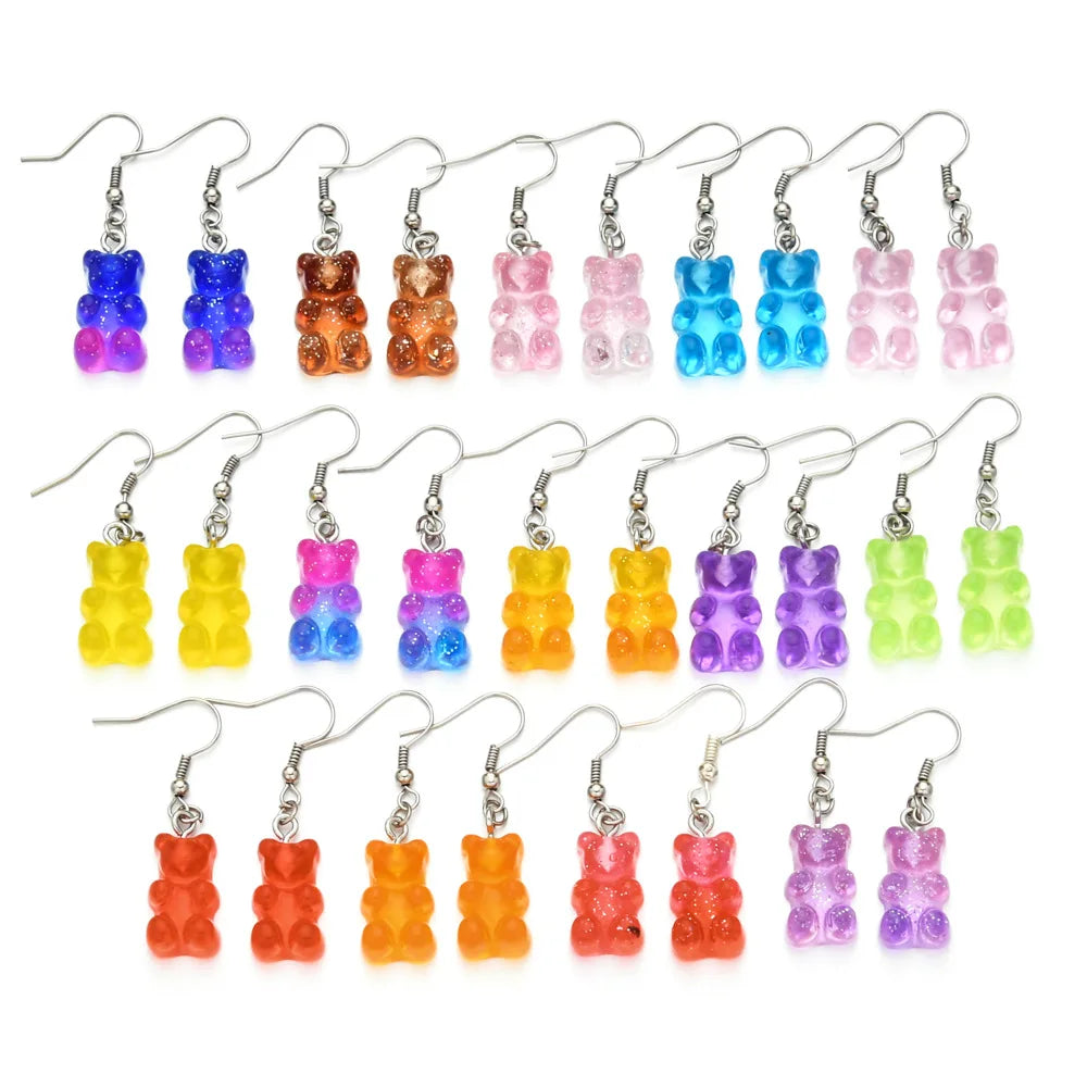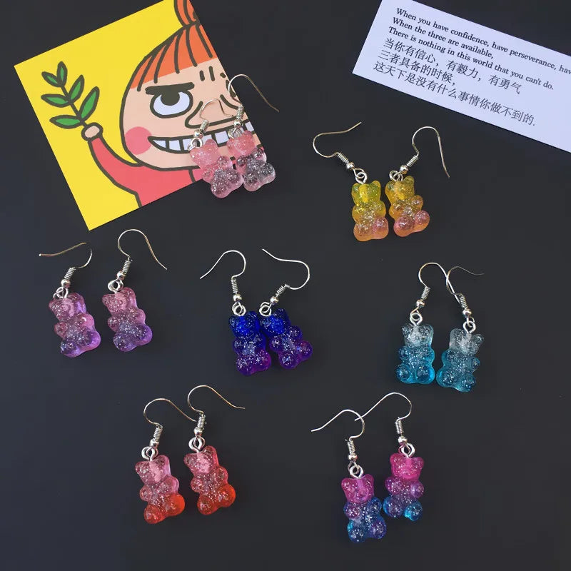 Colorful Gradient Glitter Gummy Bear Earrings for Kids - Fun Cartoon Animal Dangles Jewelry