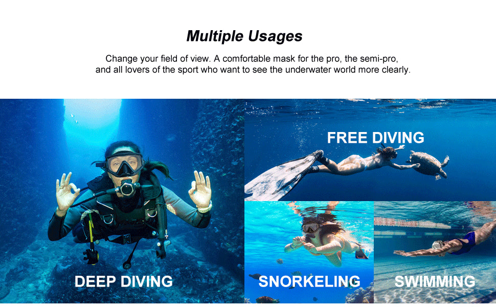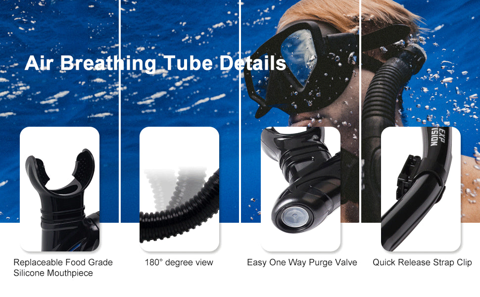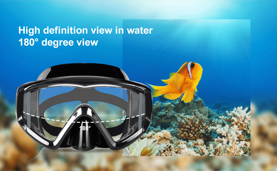 - 180° Panoramic View: Experience the underwater world with a 3-window snorkel mask that offers an expansive view of marine life.