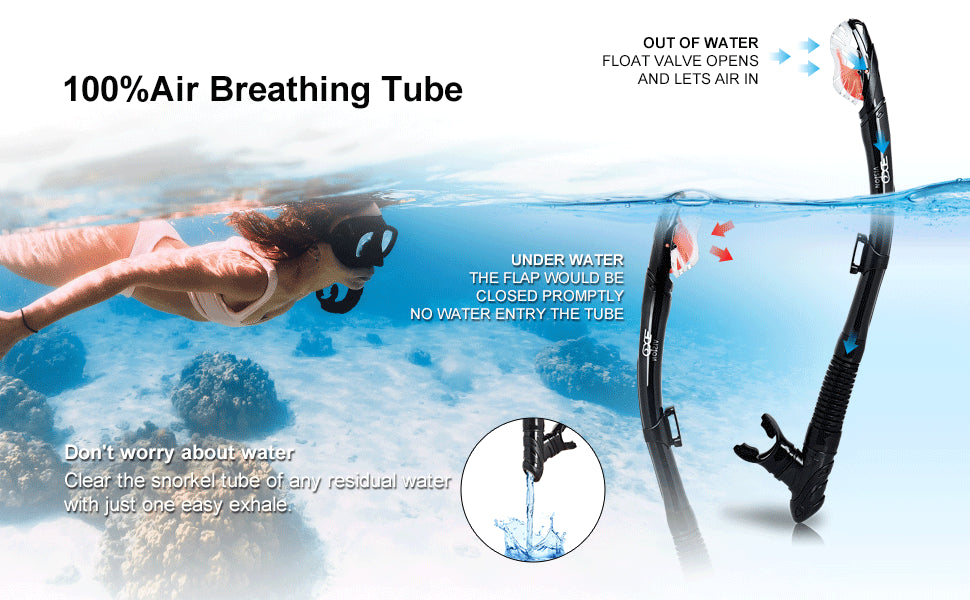 - Dry Snorkel Technology: Features a unique anti-splash end with an automatic closing valve for easy breathing and water blockage.