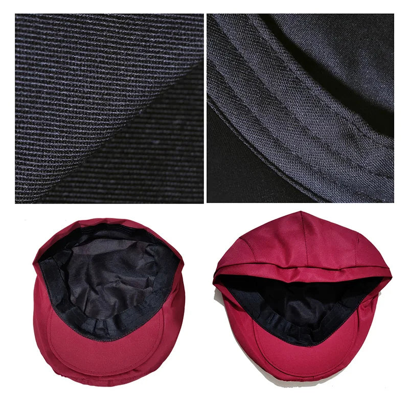 Crafted from high-quality polyester twill, the fabric is breathable, wear-resistant, and washable, ensuring durability and comfort year-round. The cap is available in multiple colors and patterns, including black, red, brown, stripe, lattice, and chili, allowing you to choose the style that best suits your workplace.