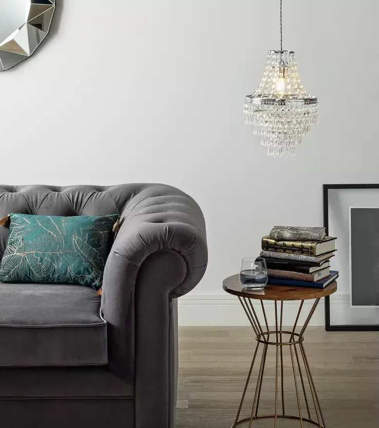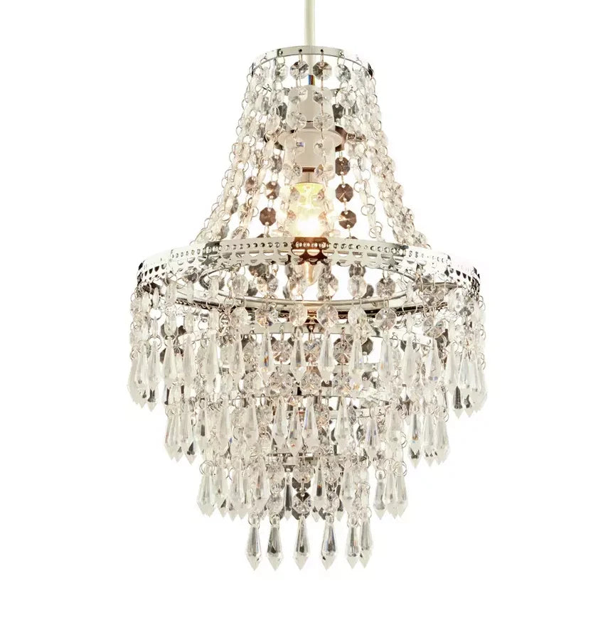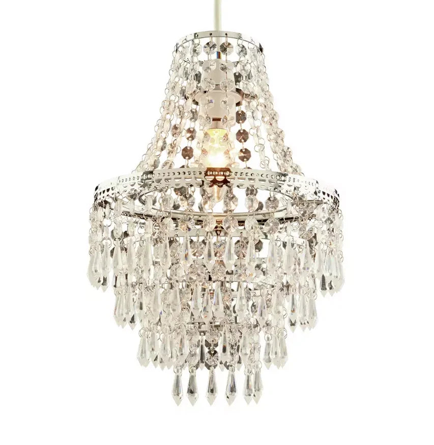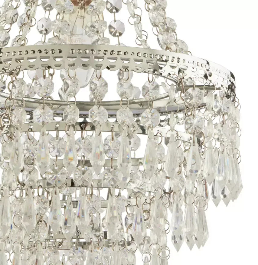 Chrome & Clear Beaded Lamp Shade 5 Tier Easy Fit Pendant 31.5cm H Small Chandelier
