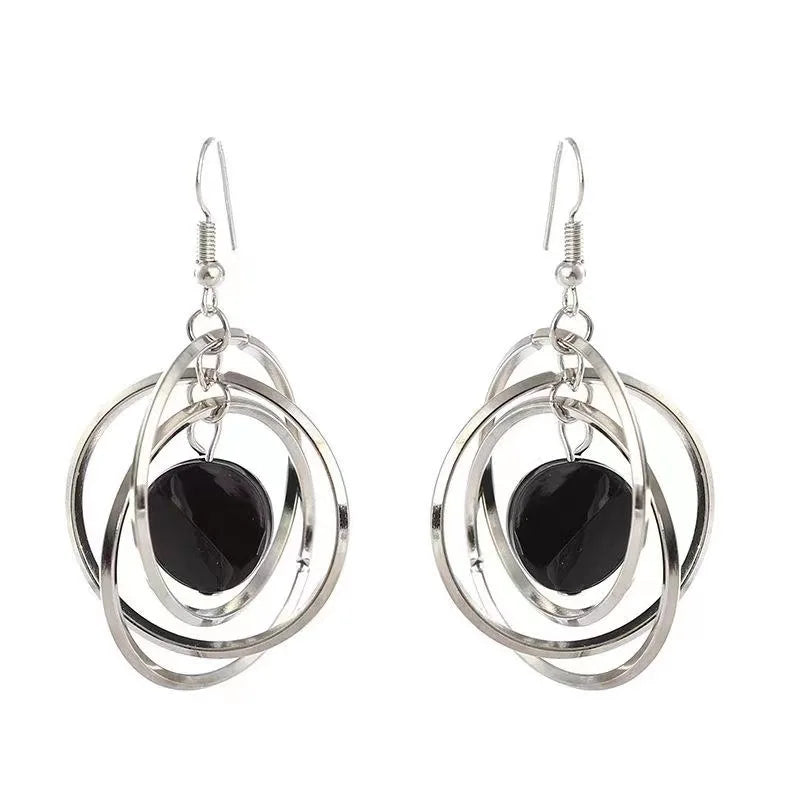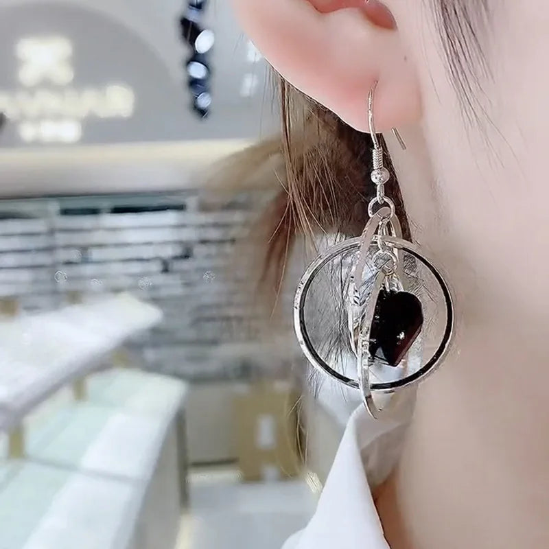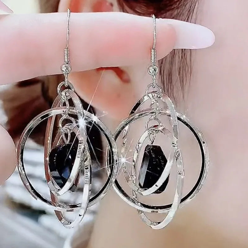 Circle Black Crystal Dangle Earrings for Women - Fashion Party Jewelry, Gift Accessories
