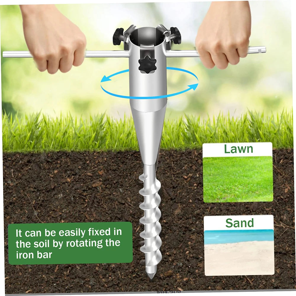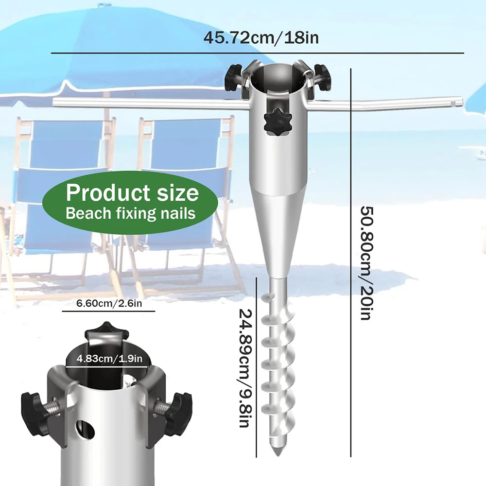 Enhance your outdoor experience with our versatile beach umbrella anchor, designed for secure and reliable use in any setting. Crafted from high-quality iron, this windproof sand anchor offers dependable support for both standard and oversized umbrellas. Its adjustable inner diameter ensures a snug fit for most poles, while the spiral design allows for effortless installation—simply screw the pole into the anchor and secure it into the sand with ease.