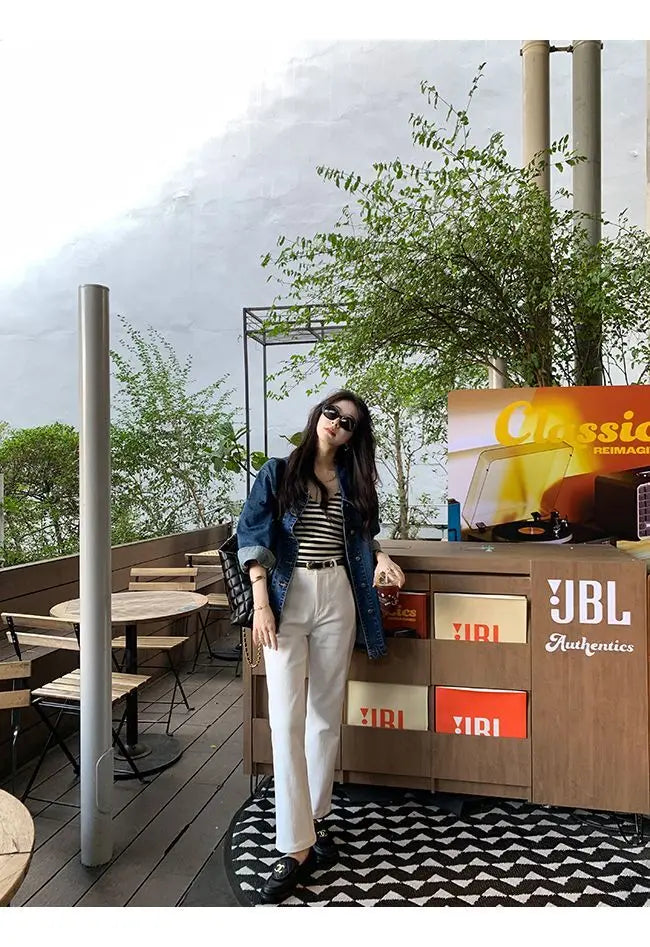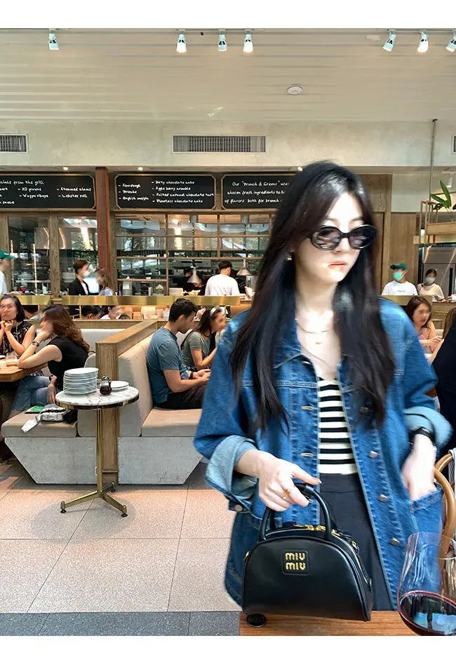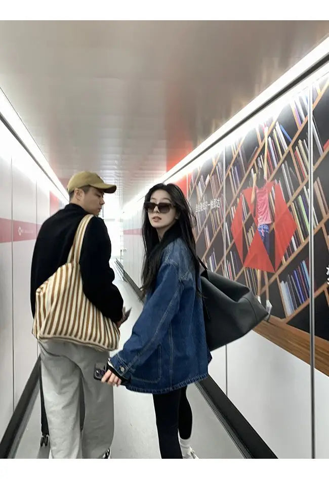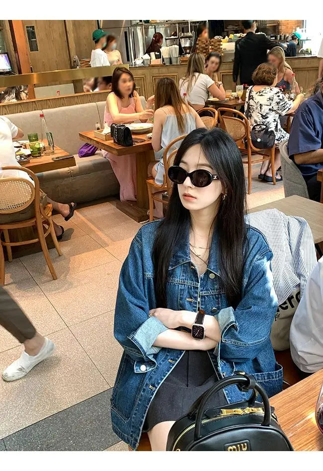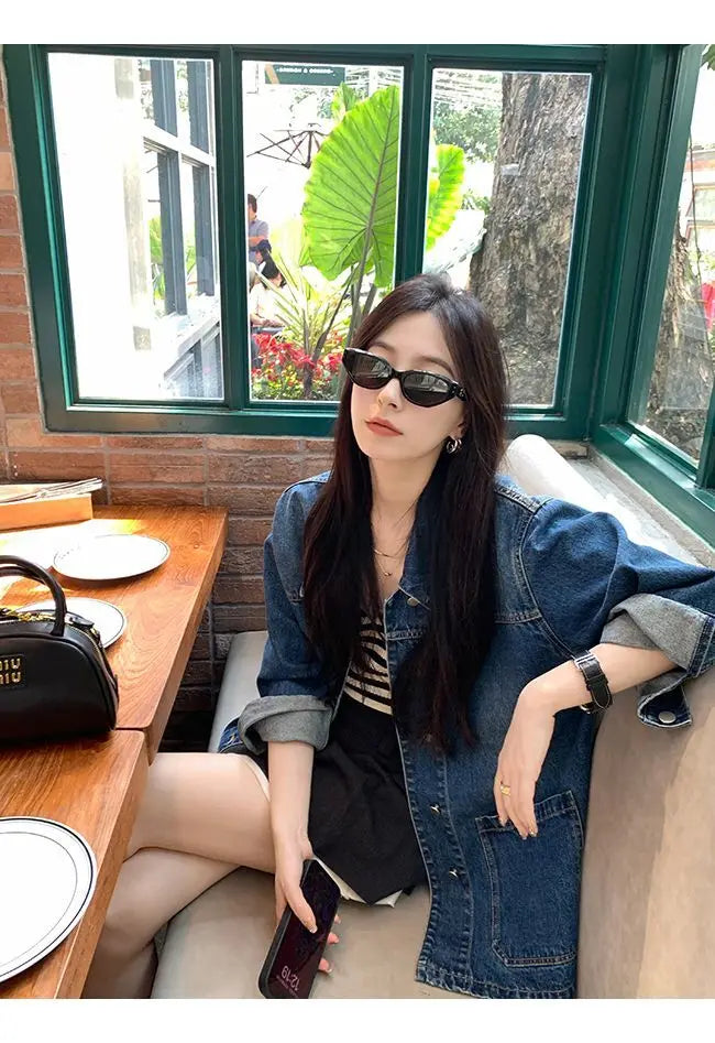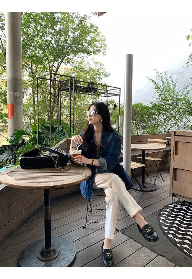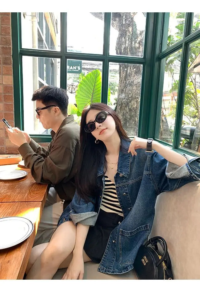 Casual Loose Denim Jacket with Pockets, Retro Turn-Down Collar, Long Sleeve, Chic All-Match Coat