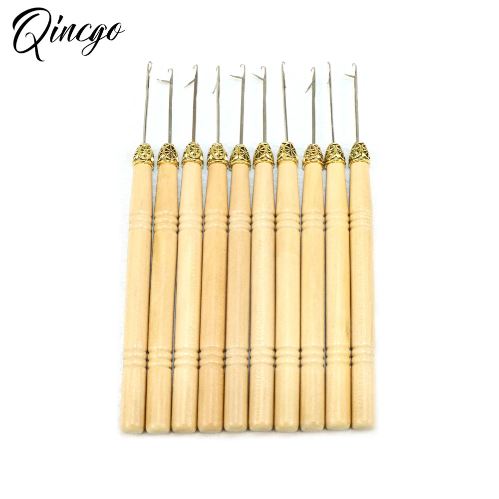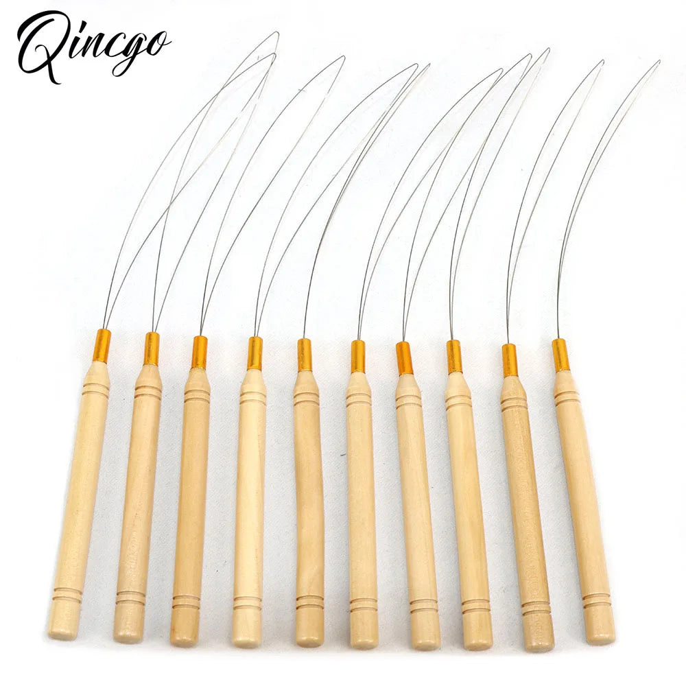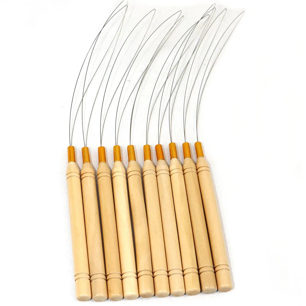 Hair Extension Threader & Pulling Hook Tool Kit - 10 Pieces for Beads & Feathers, Black Loop
