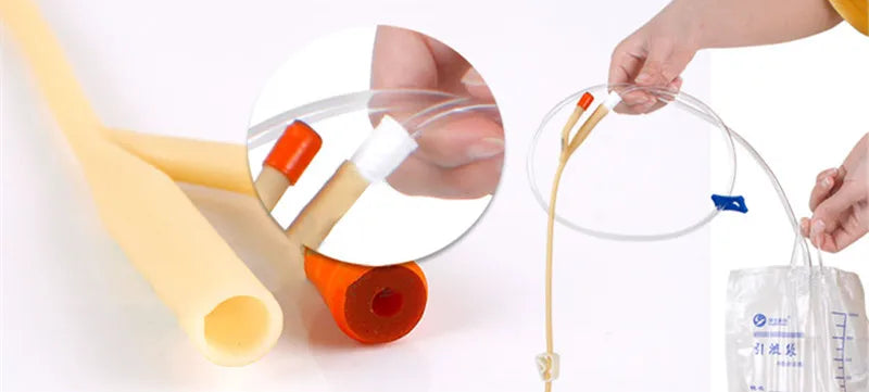 Introducing our 12 Pcs Double Way Latex Disposable Medical Urethral Catheters, expertly designed for effective urinary drainage. This set includes 12 sterile catheters, each featuring a soft valve for easy insertion and a reliable flow control. Crafted from high-quality medical grade latex, these catheters reduce the risk of allergies and ensure comfort during use. Ideal for use in urology, internal medicine, surgery, obstetrics, and gynecology, they are perfect for patients with mobility challenges or those who are bed-ridden.