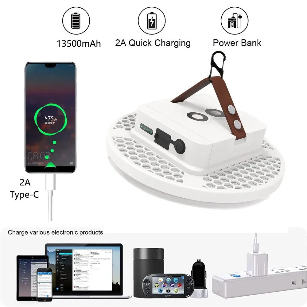 13500mAh Rechargeable LED Camping Lantern, Magnetic Portable Flashlight, Remote Control Tent Light, Carry Case Included