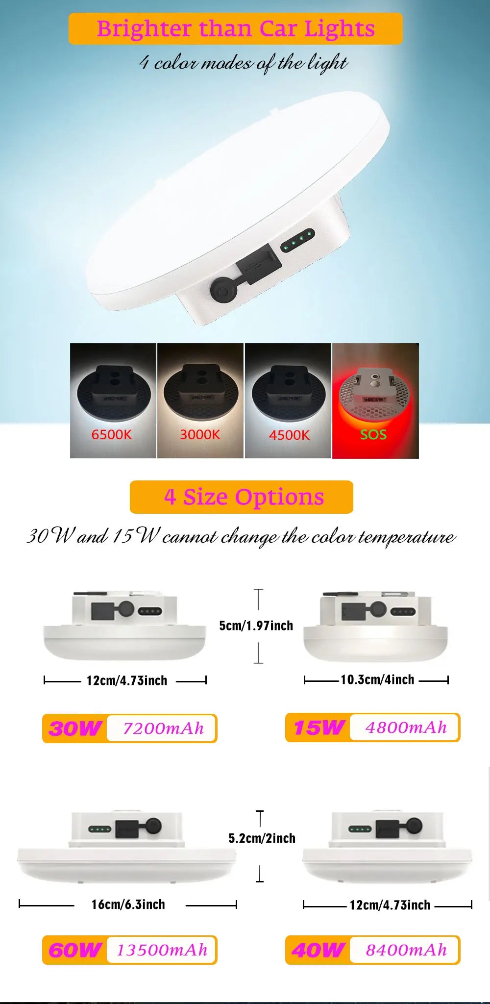 - Four Light Modes: White, neutral, warm, and SOS.
