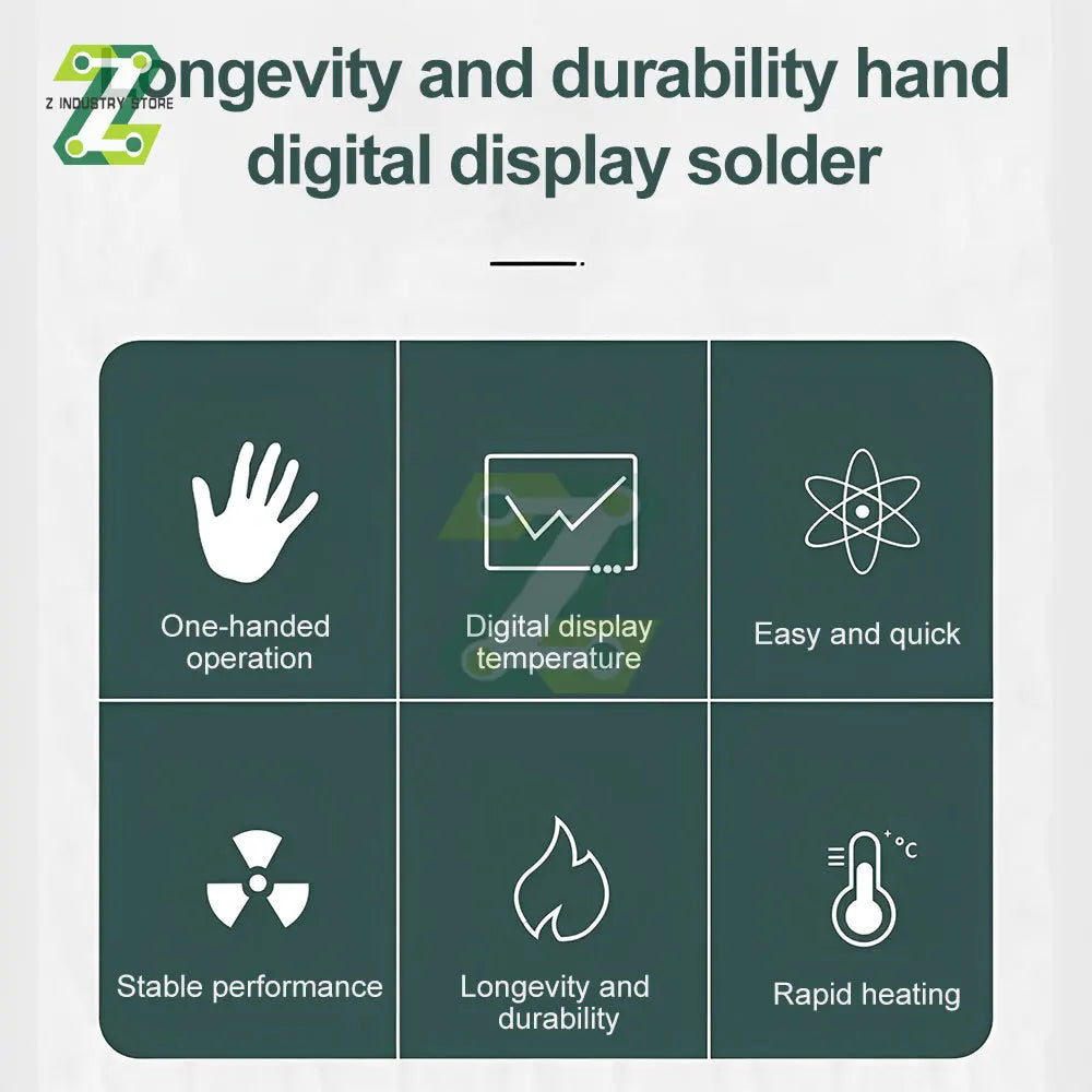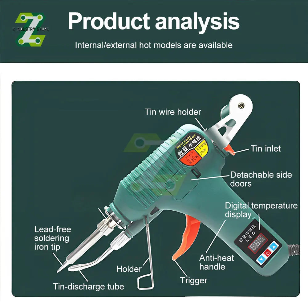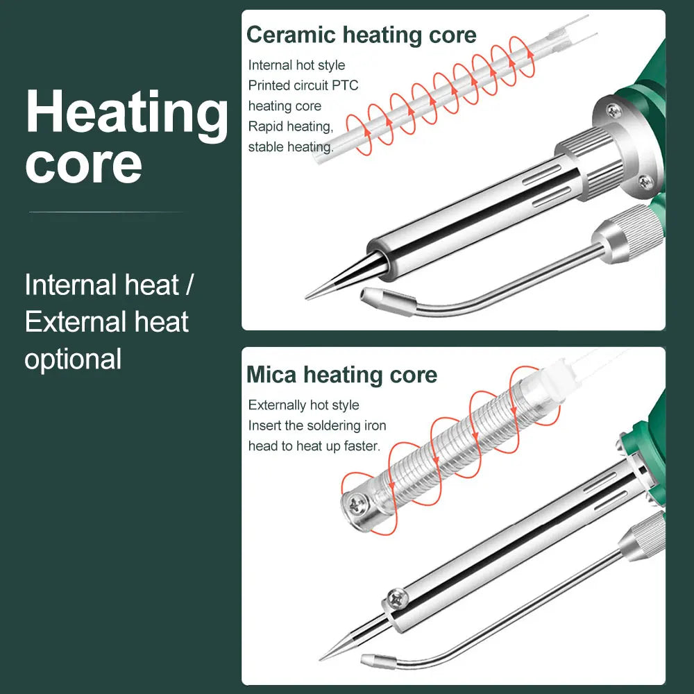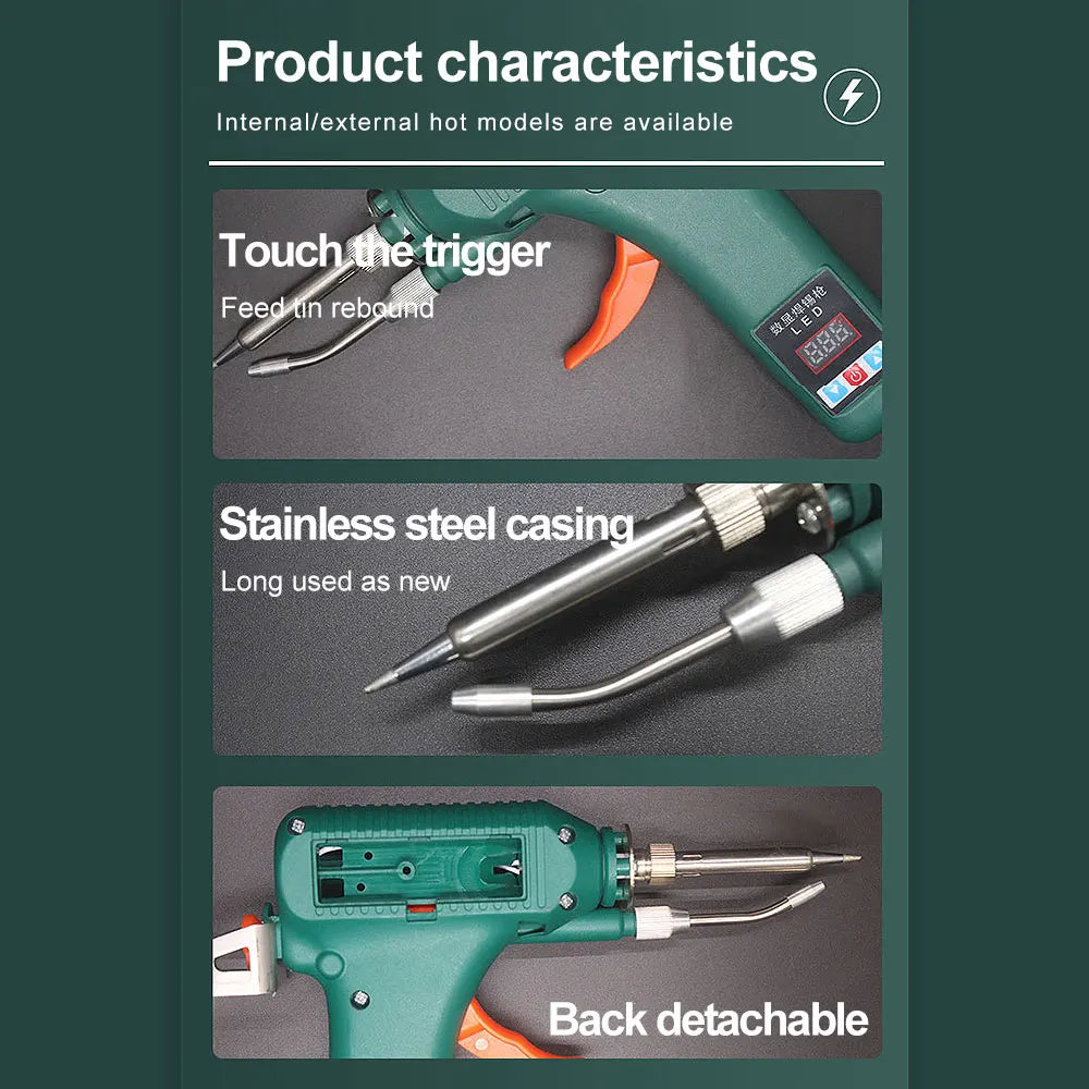 The innovative single-handed operation design includes an automatic tin feed and a solder holder, minimizing the risk of burns and freeing your hands for more efficient work. The natural mica heating core guarantees quick heating and a durable experience, with easy disassembly and replacement.