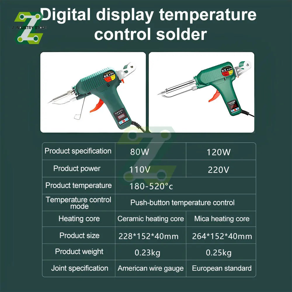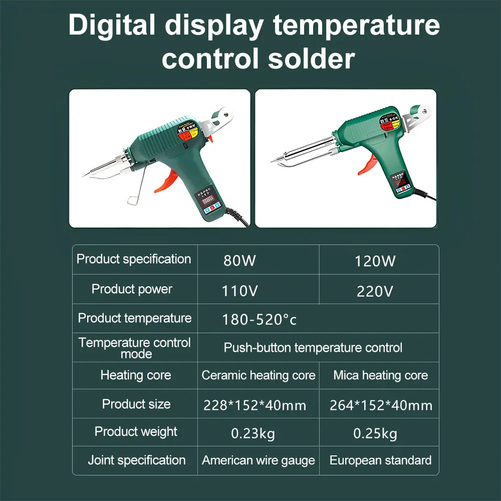 Elevate your soldering experience with this advanced 80/120W Digital Display Soldering Iron Gun. Designed for precision and efficiency, it features a unique digital display that clearly shows temperatures from 180°C to 520°C, allowing for safe and convenient use.