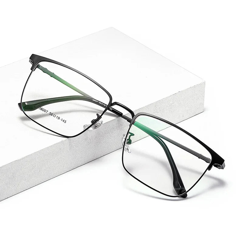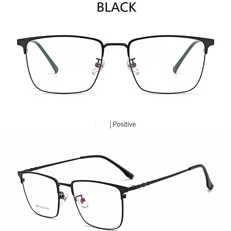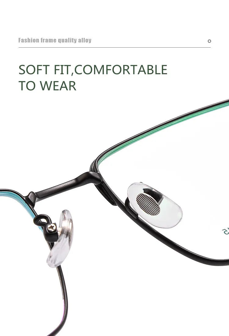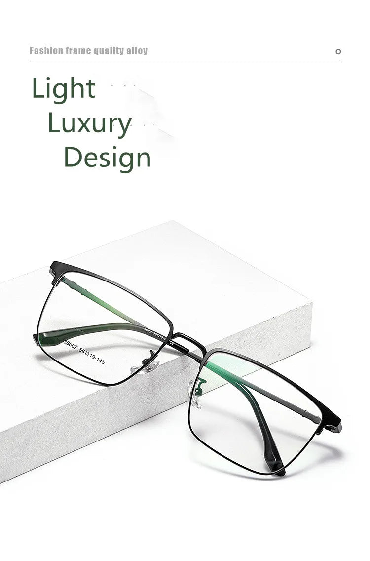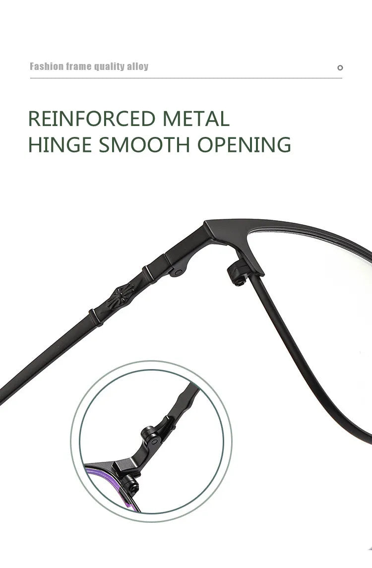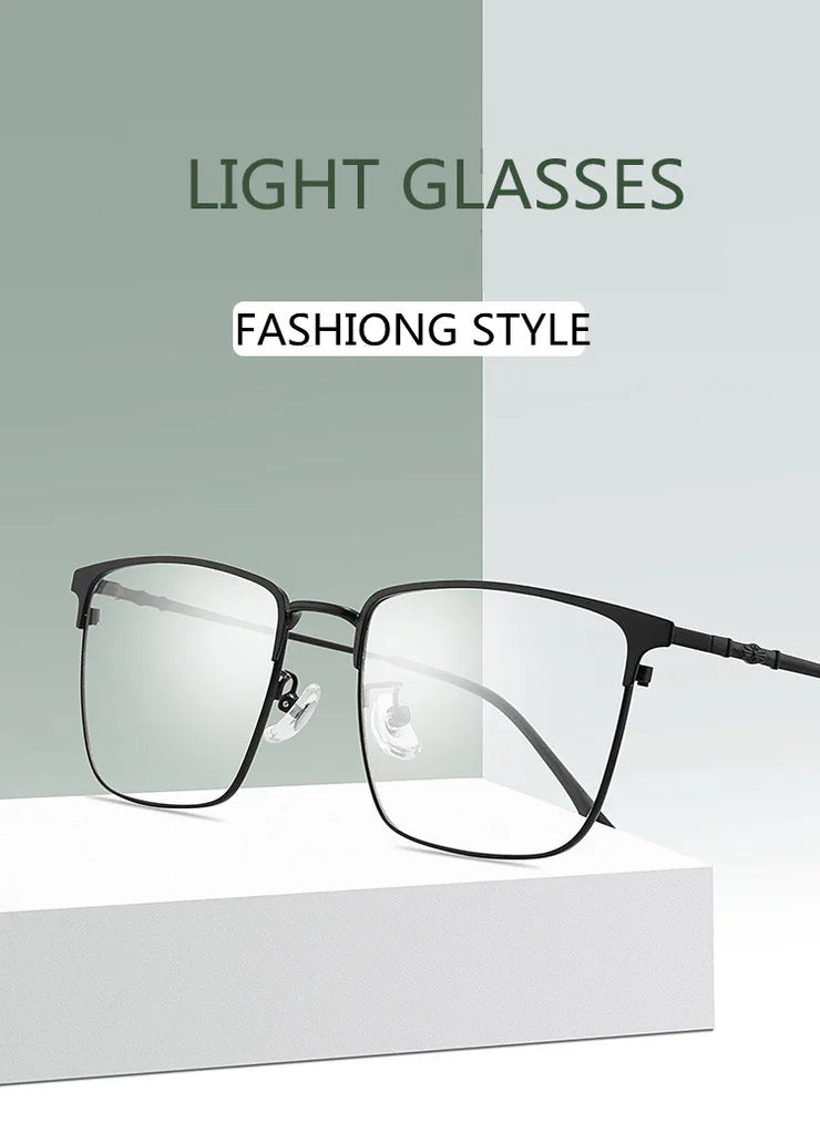 Introducing sleek and stylish eyewear designed to meet your digital needs. These full-rim glasses feature a durable alloy frame, available in chic color options: Gold Black, Silver Black, and Black. Equipped with cutting-edge blue light blocking technology, they help reduce eye strain during prolonged screen time. Suitable for both men and women, these glasses boast a modern rectangle shape and lightweight design, weighing only 9 grams for your comfort. The lenses are crafted from quality TAC material for clarity and resilience.