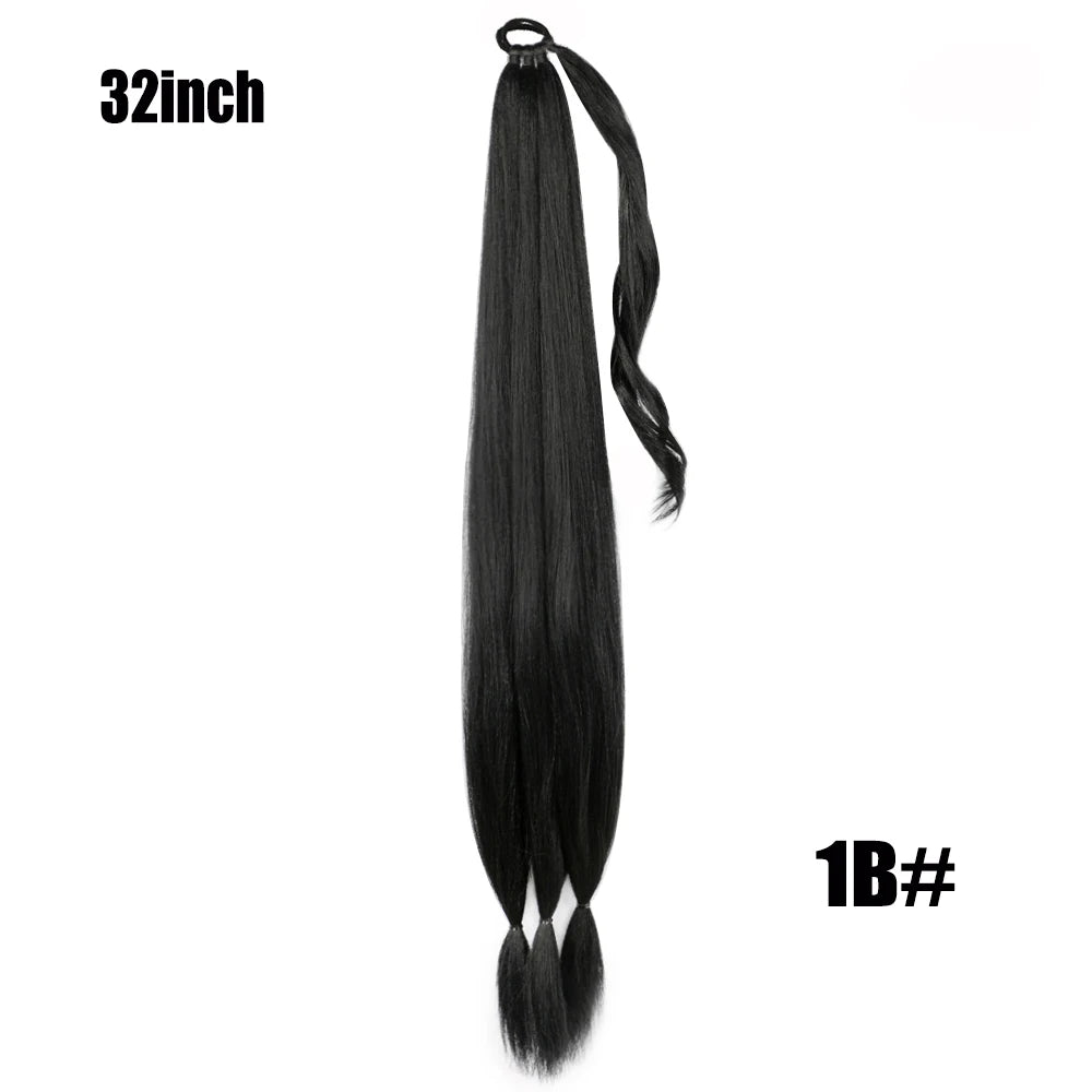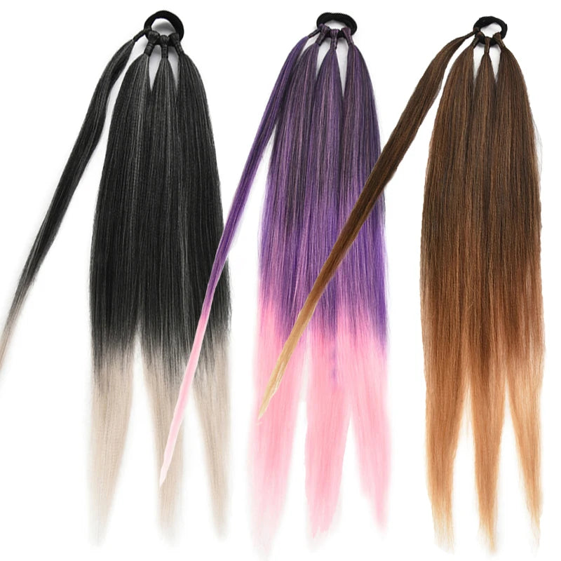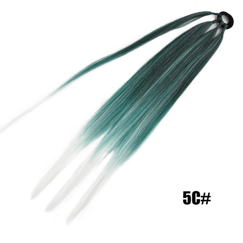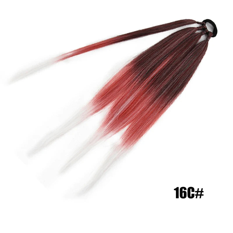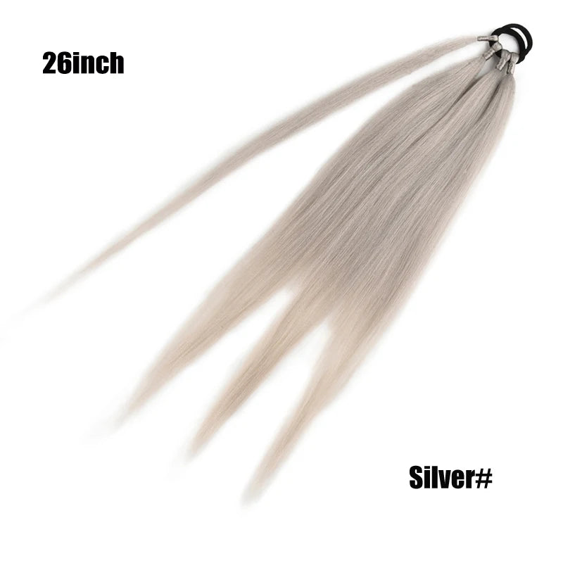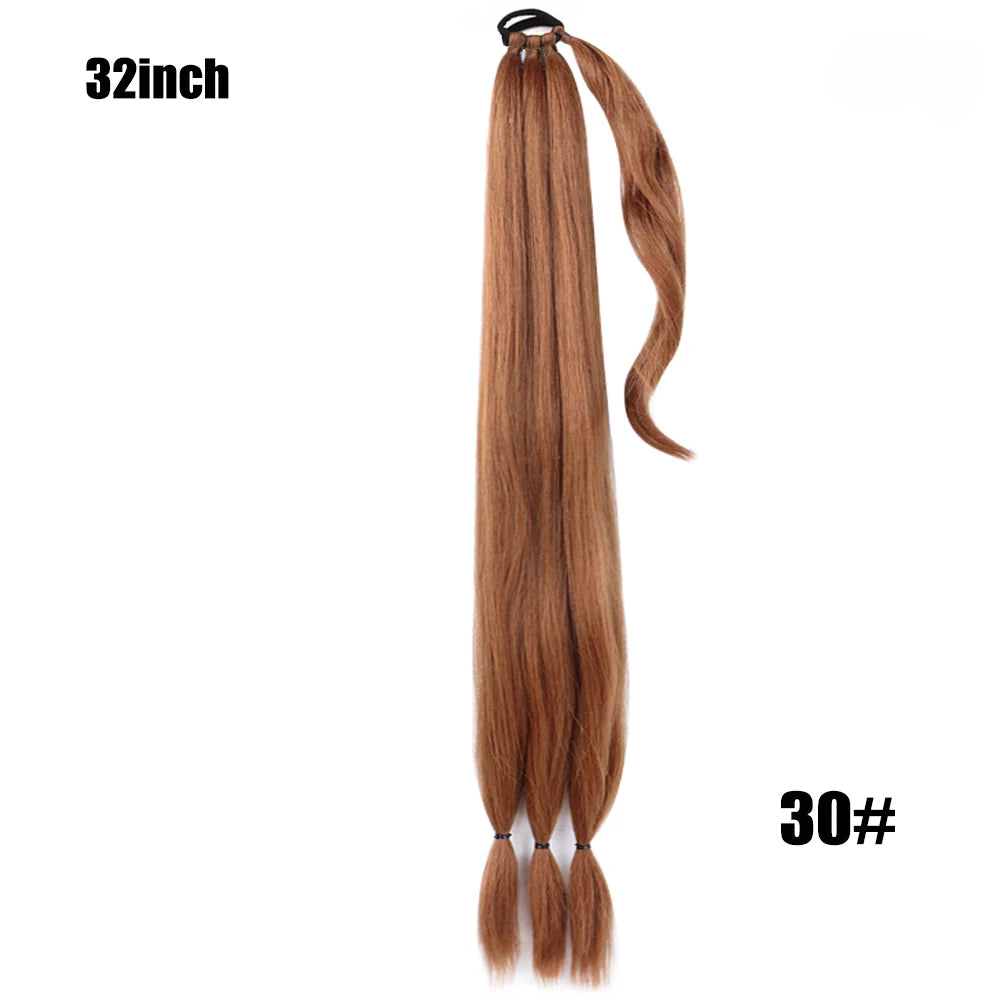 Boxing Braids Ombre Ponytail Extension 26" Synthetic Wrap with Hair Ring Black Brown Grey