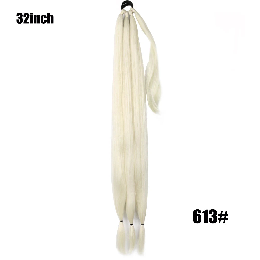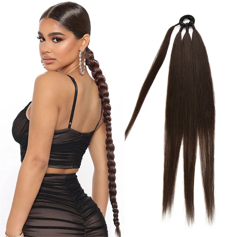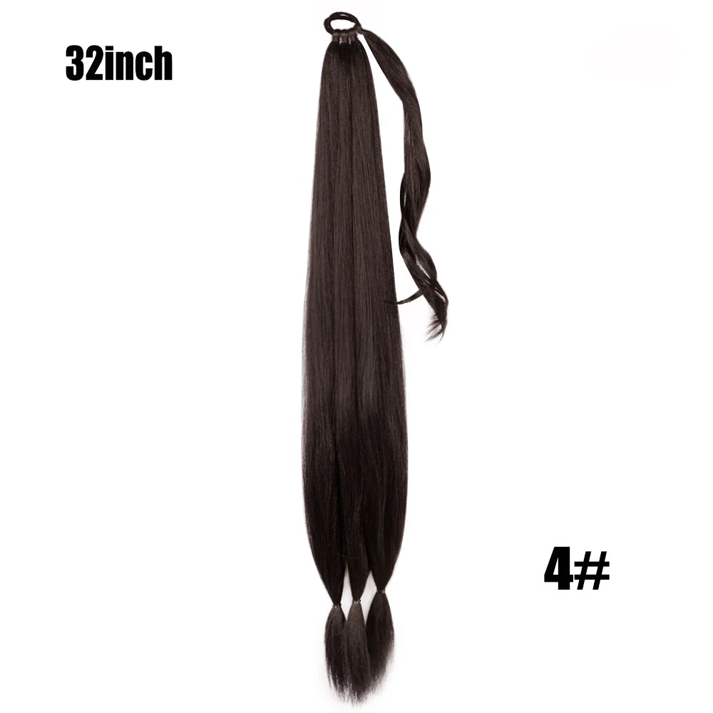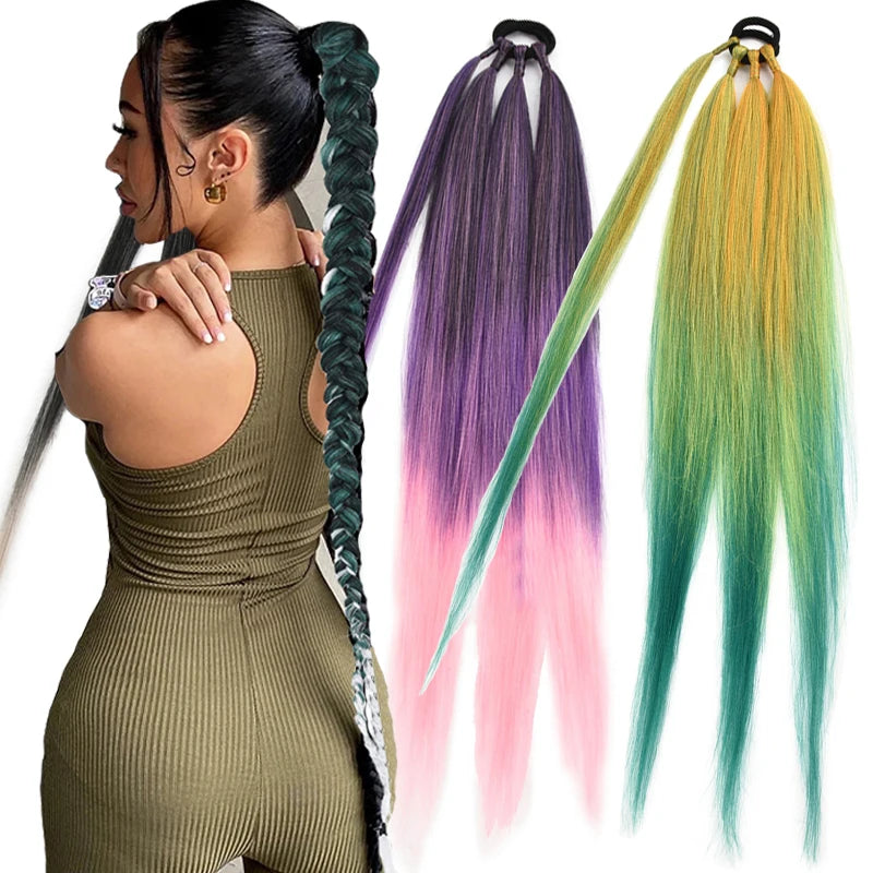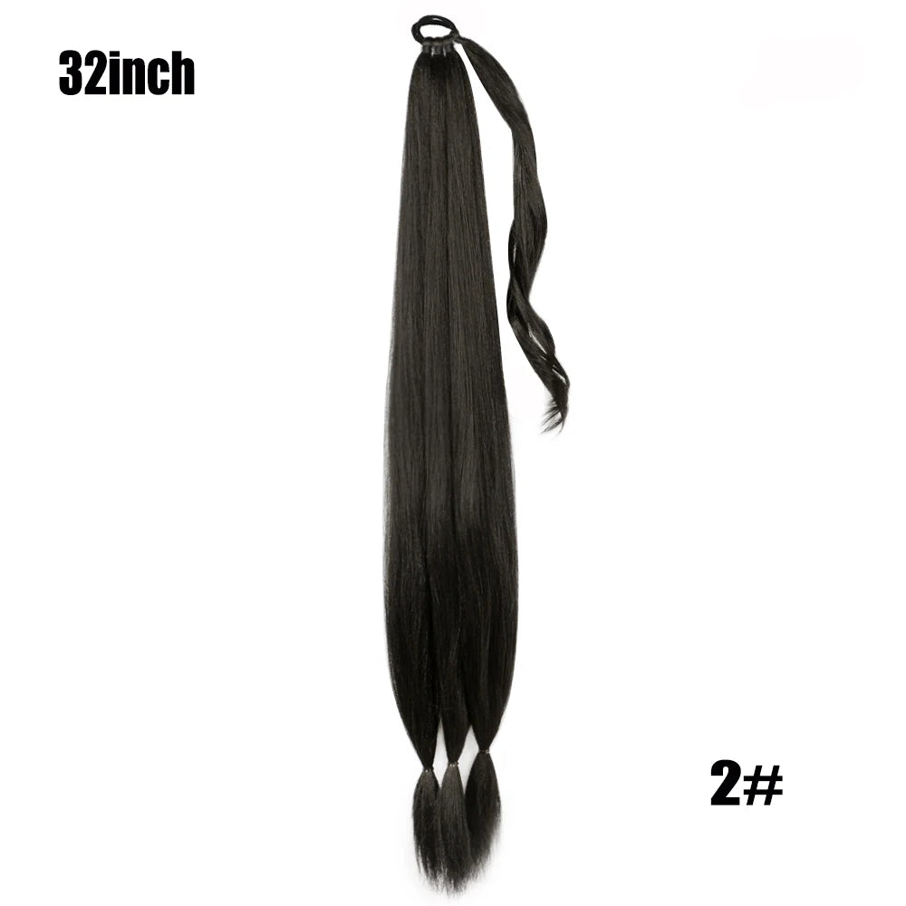 Boxing Braids Ombre Ponytail Extension 26" Synthetic Wrap with Hair Ring Black Brown Grey