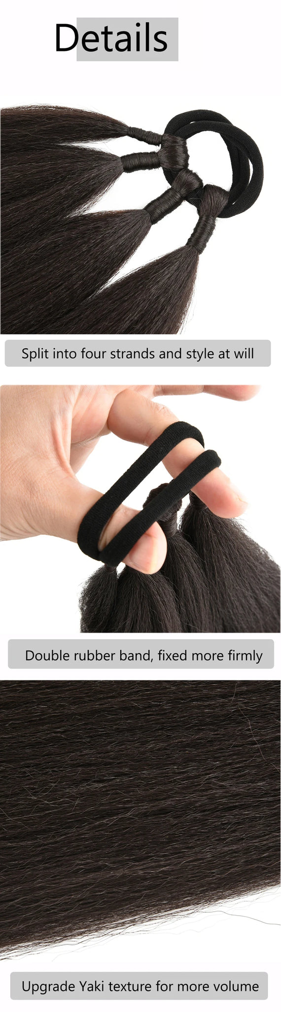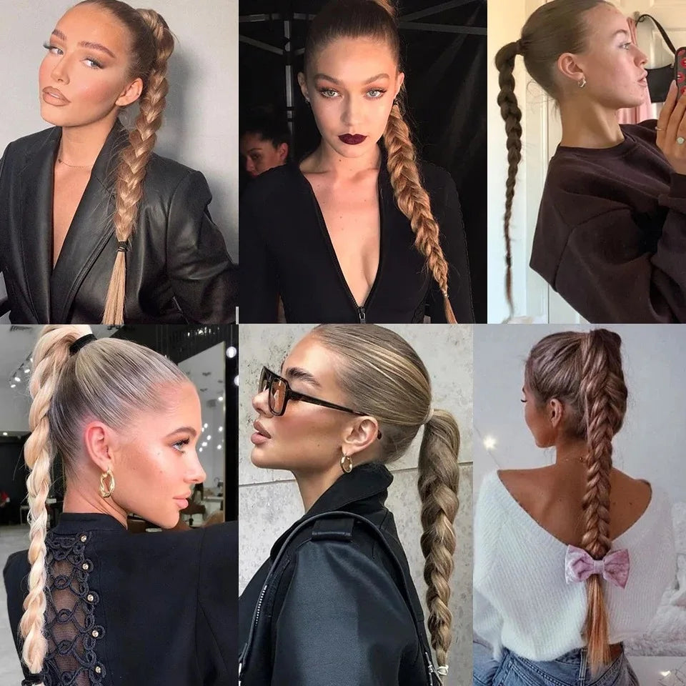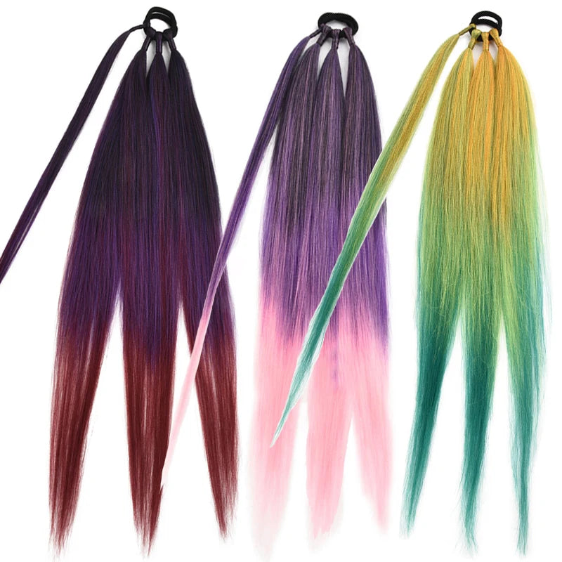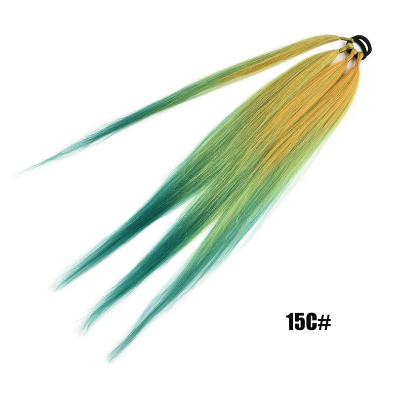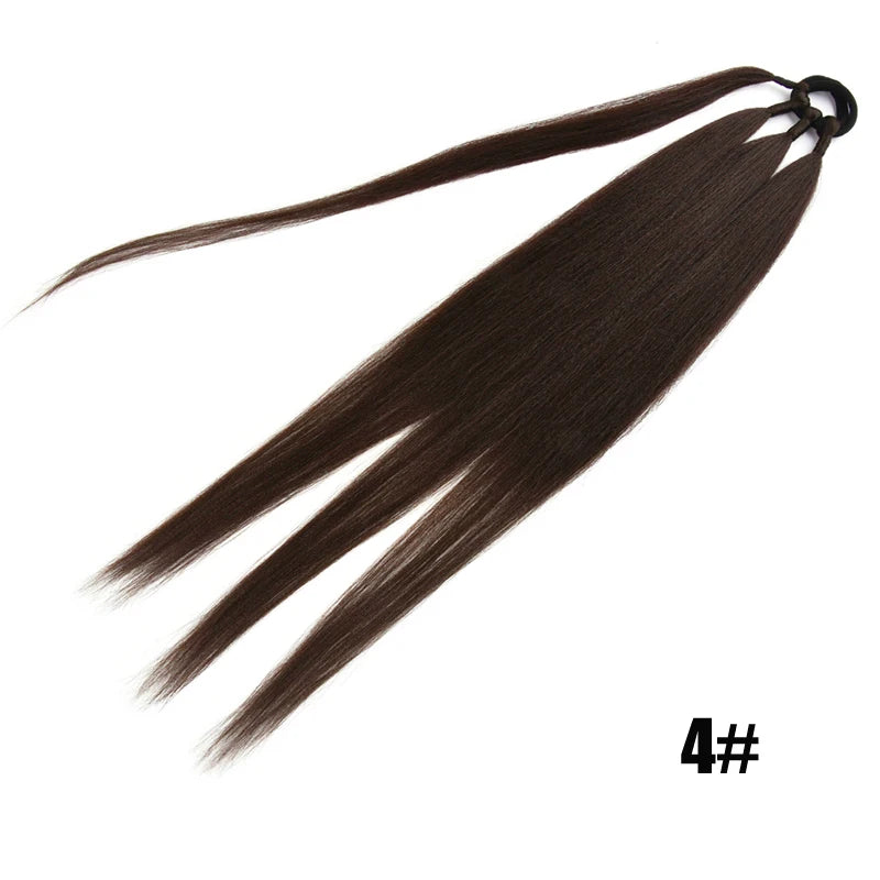 Boxing Braids Ombre Ponytail Extension 26" Synthetic Wrap with Hair Ring Black Brown Grey