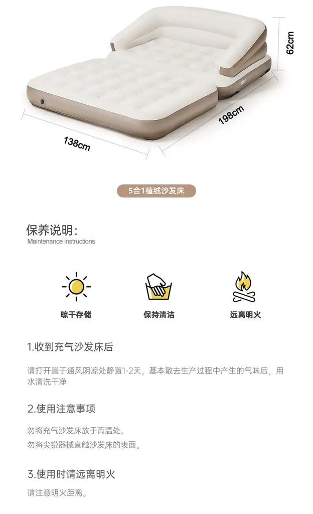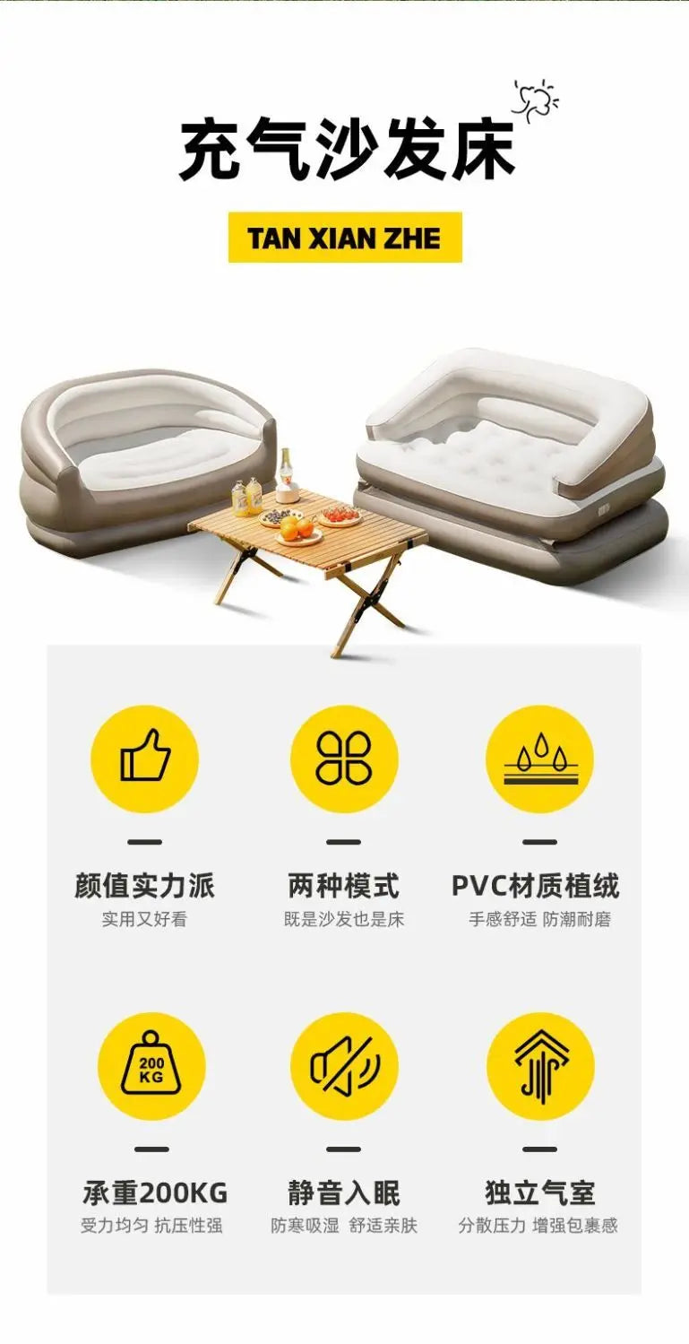 Double Person Inflatable Air Sofa Bed Outdoor Portable Camping Foldable Lazy Couch