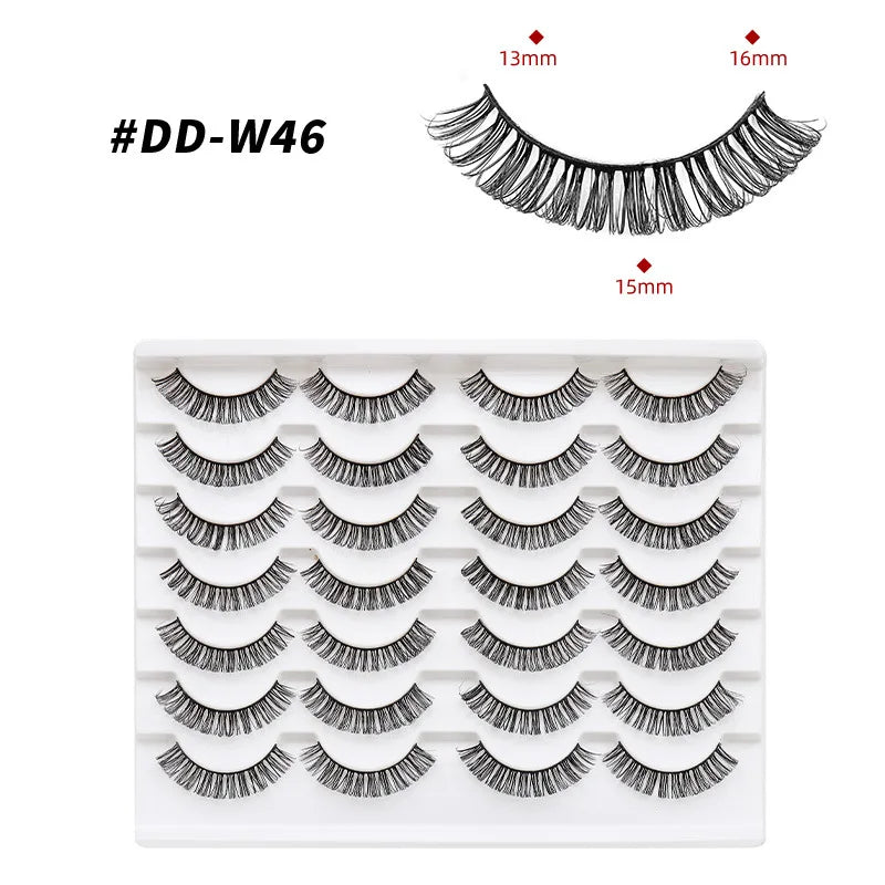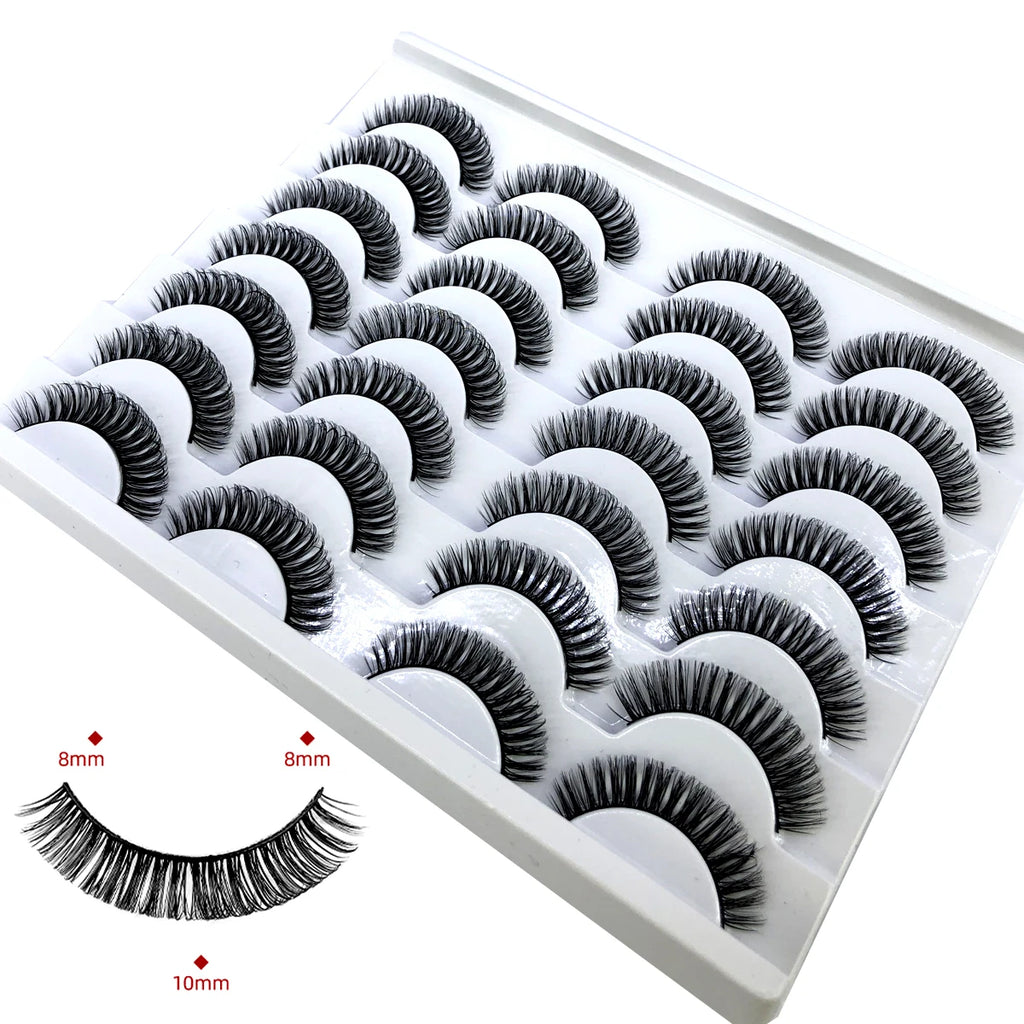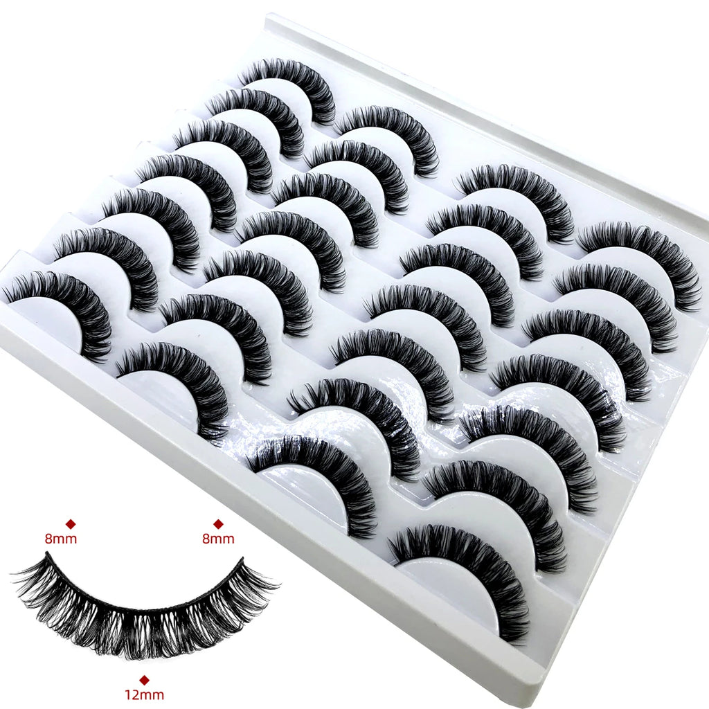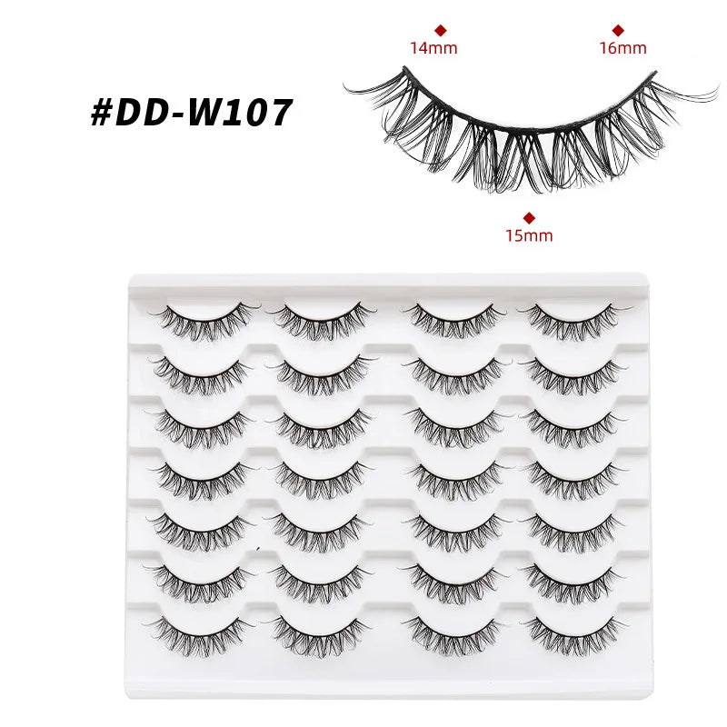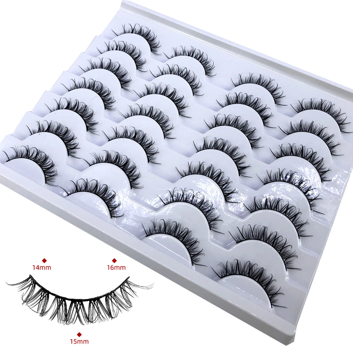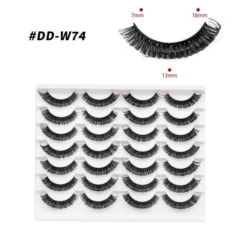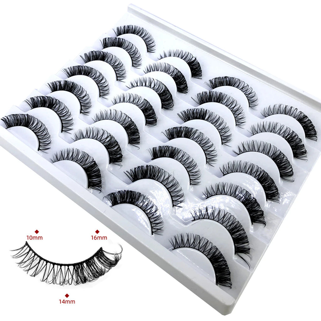 Discover the allure of these exquisite handcrafted false eyelashes, perfect for both everyday elegance and special occasions. Designed with a chic winged style, these lashes are crafted from premium, lightweight materials for all-day comfort. The innovative soft plastic cotton band ensures easy application and a secure fit, enhancing your eyes with timeless elegance. Each set includes 14 pairs, offering captivating lengths from 1 cm to 1.5 cm that beautifully balance volume and sophistication.