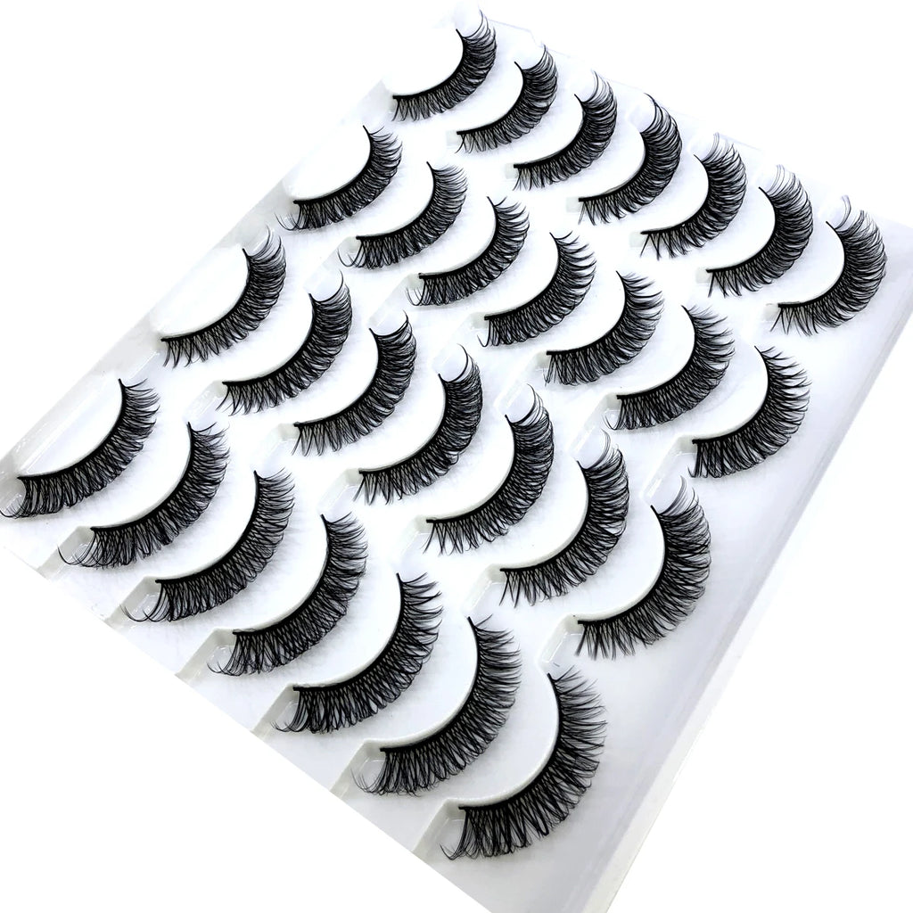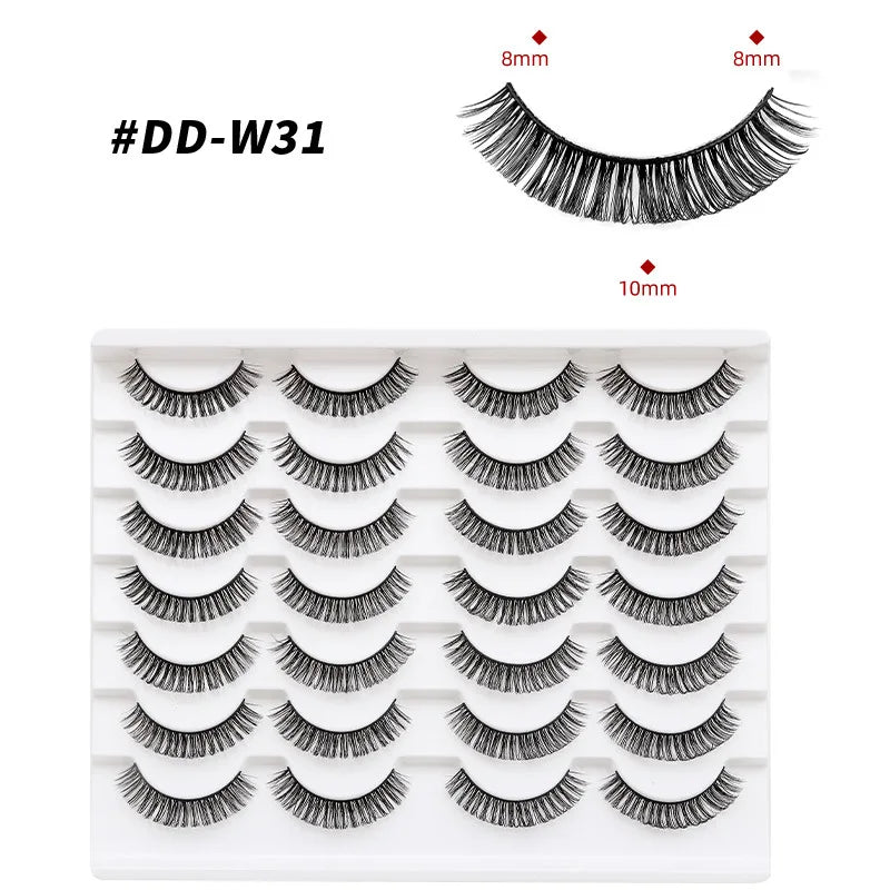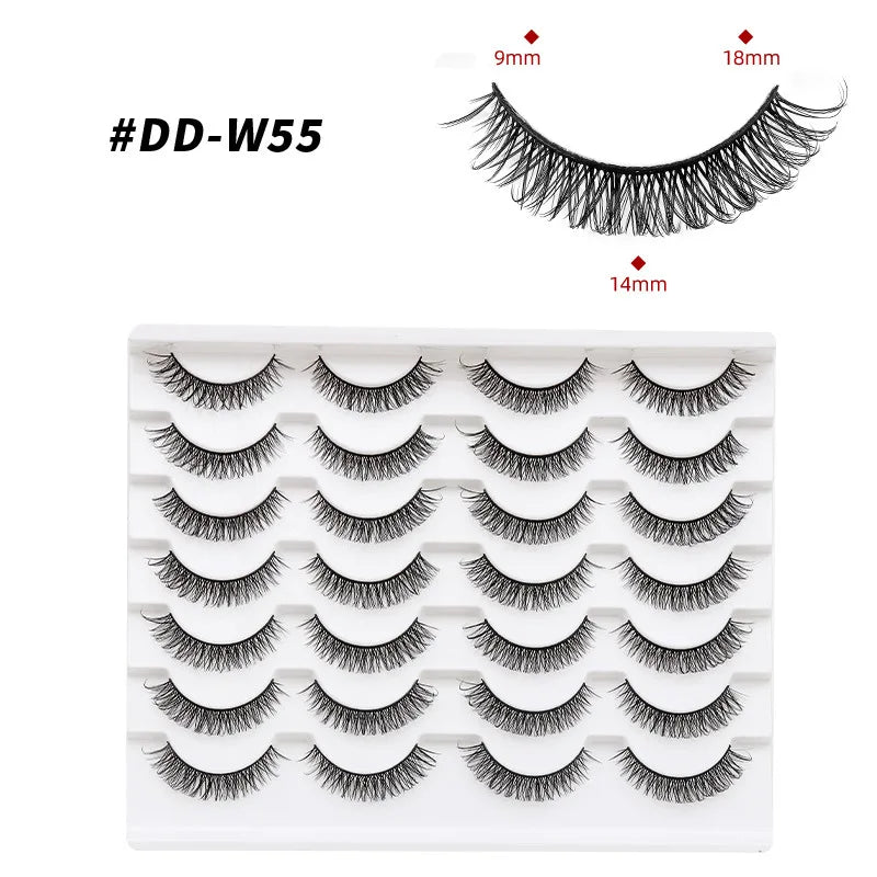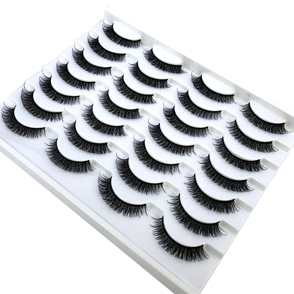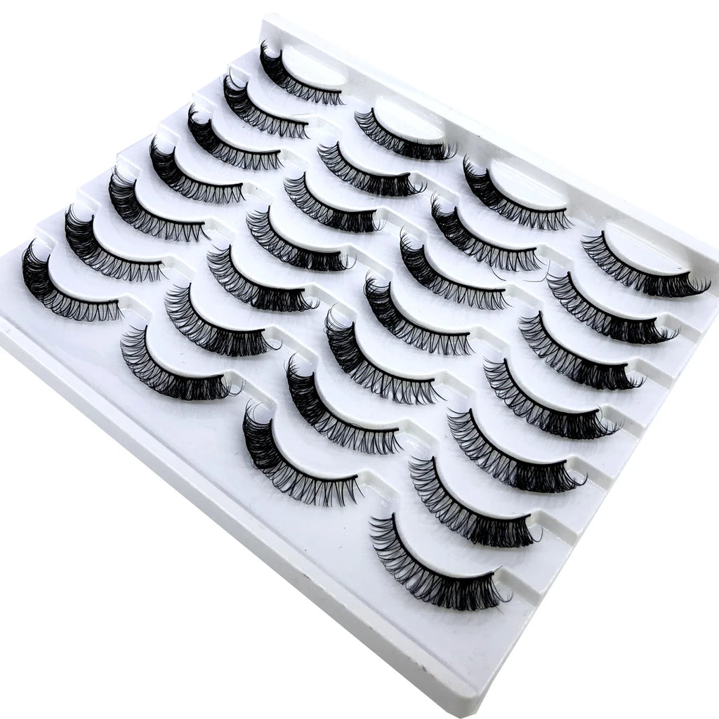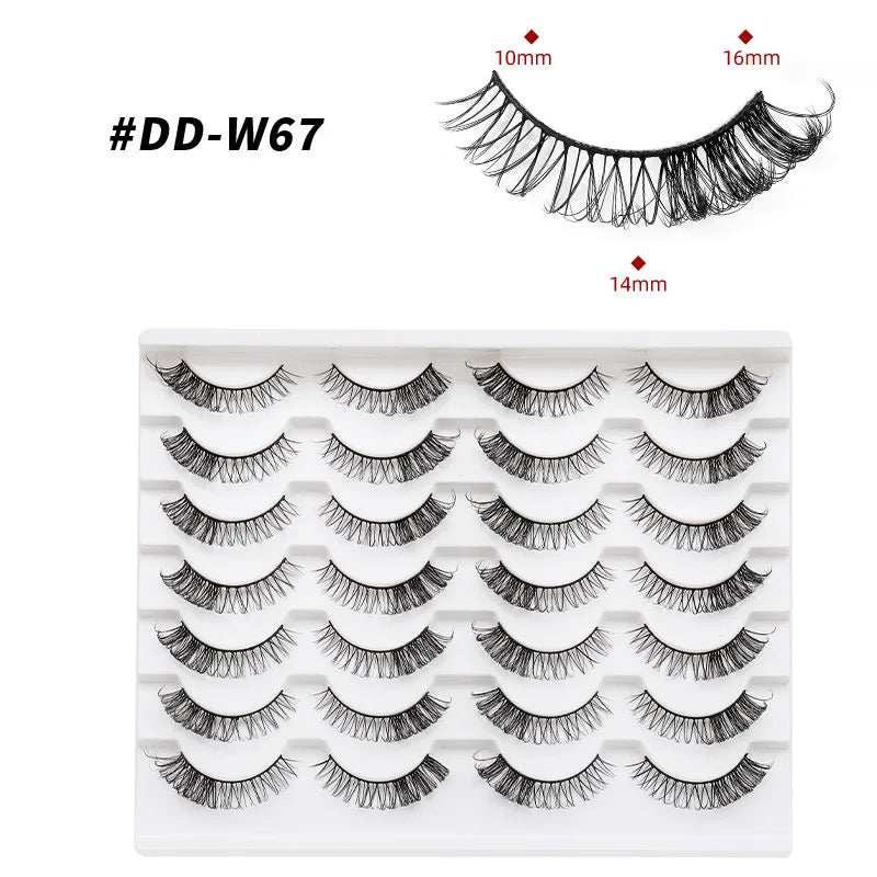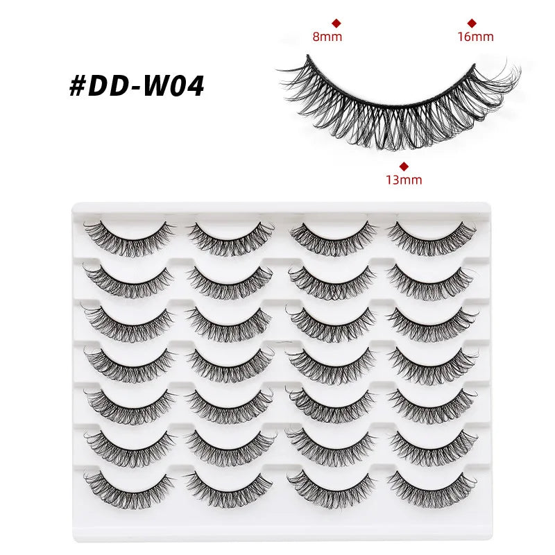 Discover the allure of these exquisite handcrafted false eyelashes, perfect for both everyday elegance and special occasions. Designed with a chic winged style, these lashes are crafted from premium, lightweight materials for all-day comfort. The innovative soft plastic cotton band ensures easy application and a secure fit, enhancing your eyes with timeless elegance. Each set includes 14 pairs, offering captivating lengths from 1 cm to 1.5 cm that beautifully balance volume and sophistication.